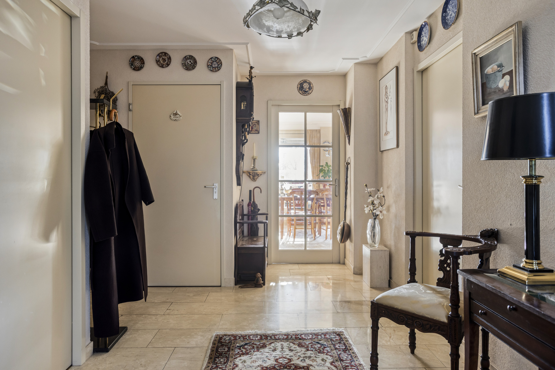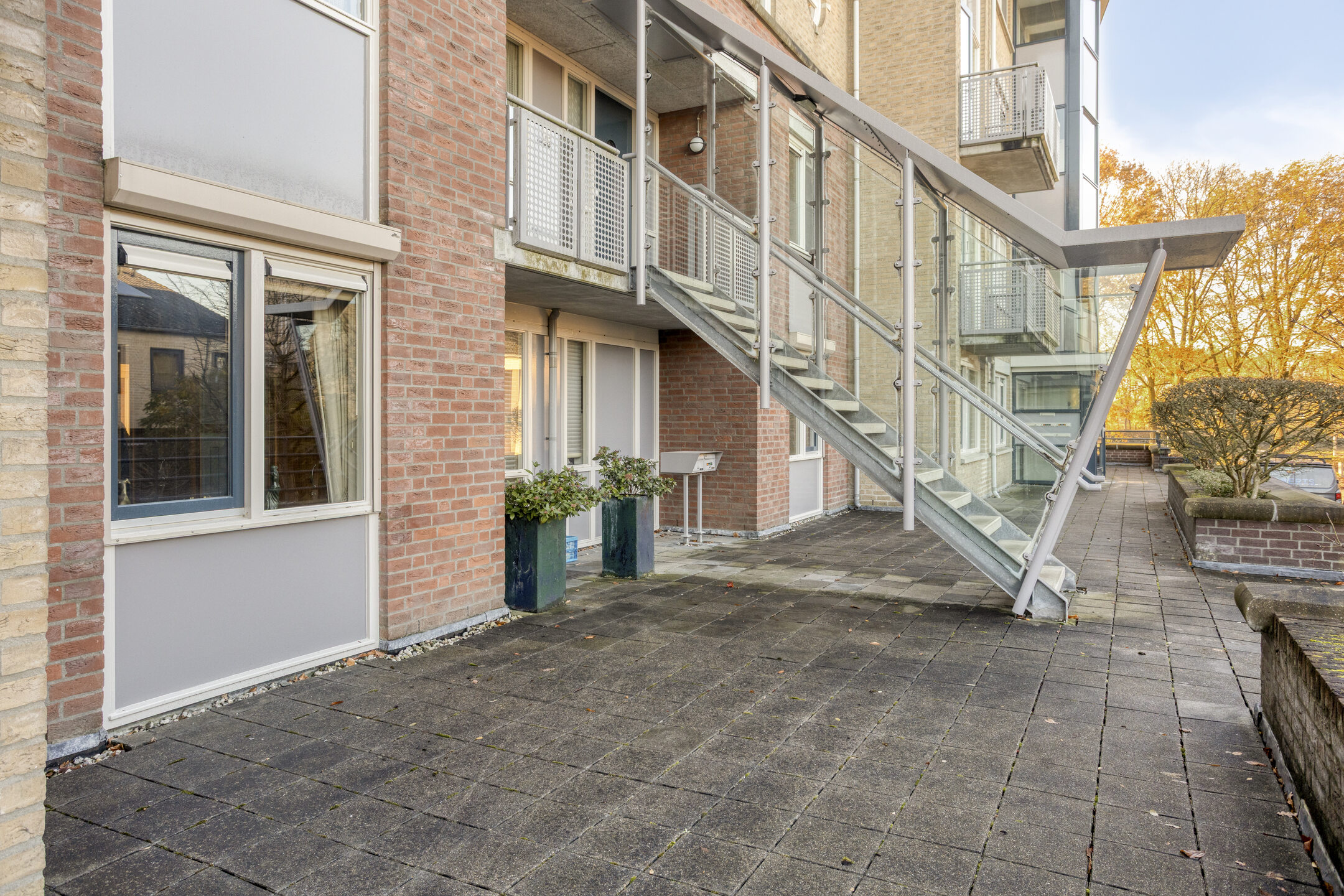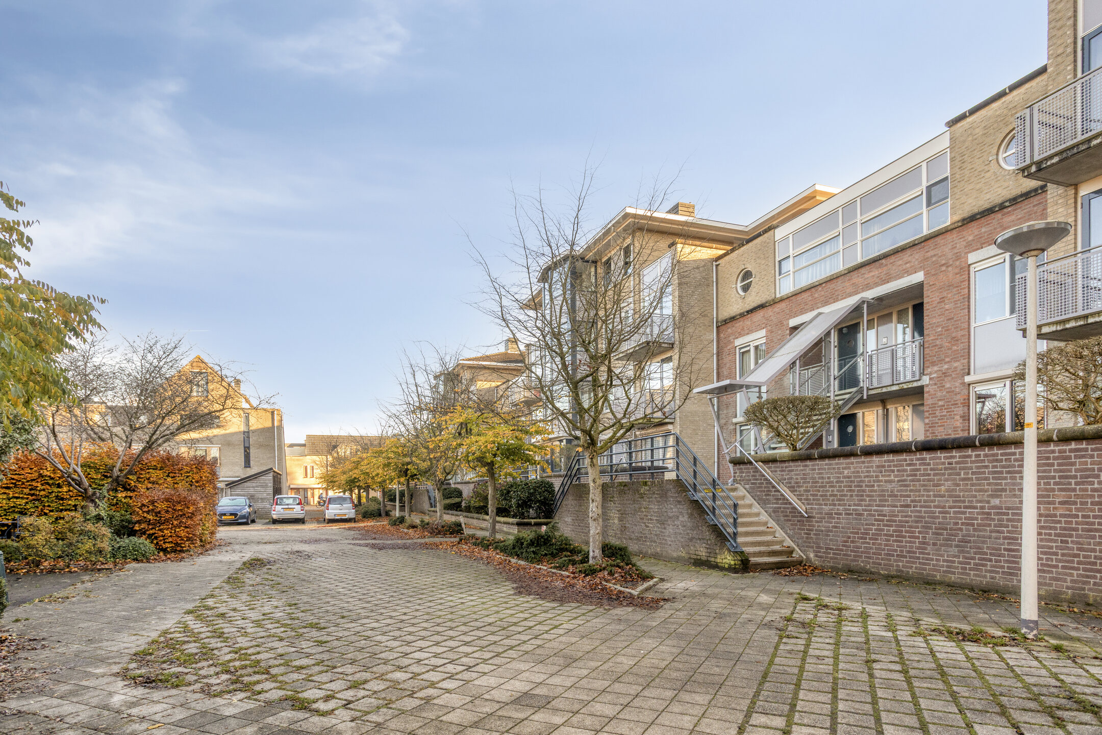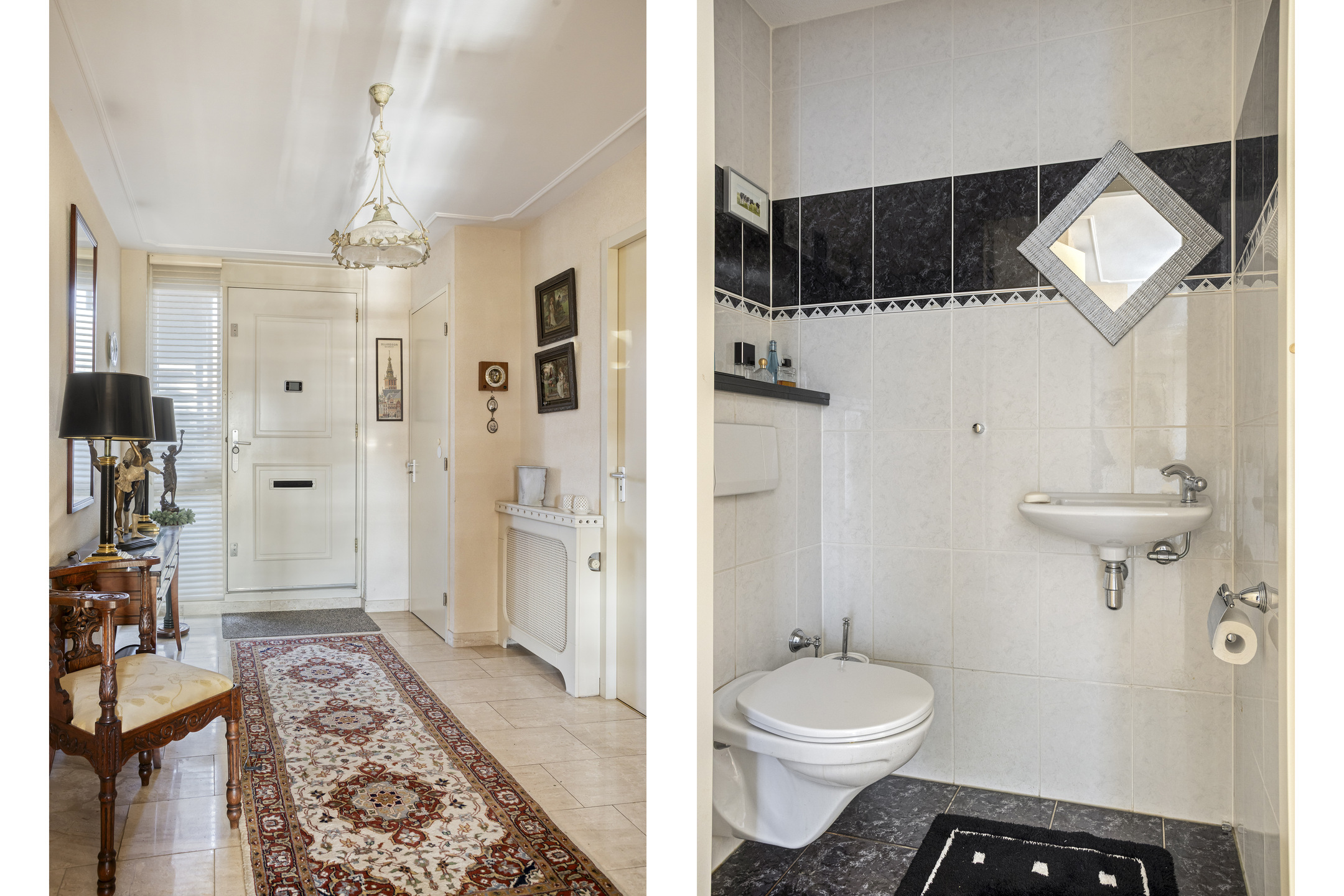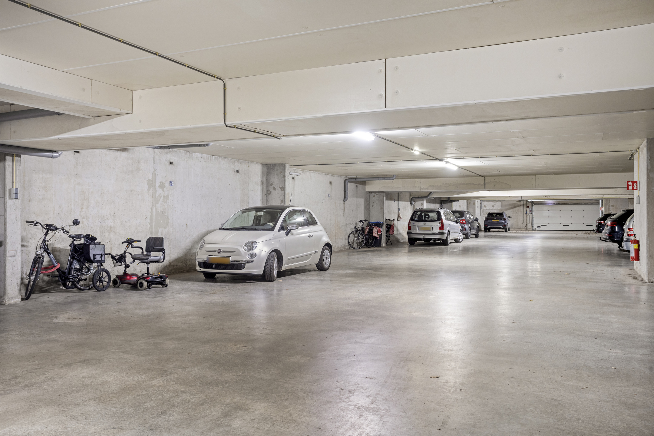 Vanaf de straat bereikt u via een klein trapje of de comfortabele hellingbaan de eerste verdieping met uw eigen voordeur. Dit maakt het appartement uitstekend toegankelijk. Via hetzelfde bordes kunt u ook de algemene ingang naar de lift gebruiken, die u rechtstreeks brengt naar de berging en uw eigen parkeerkelder.