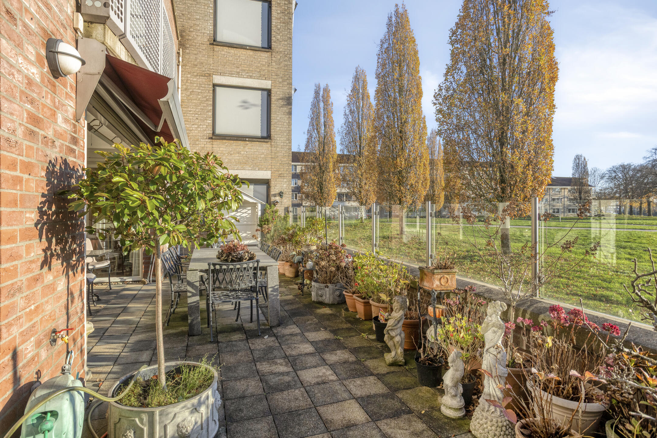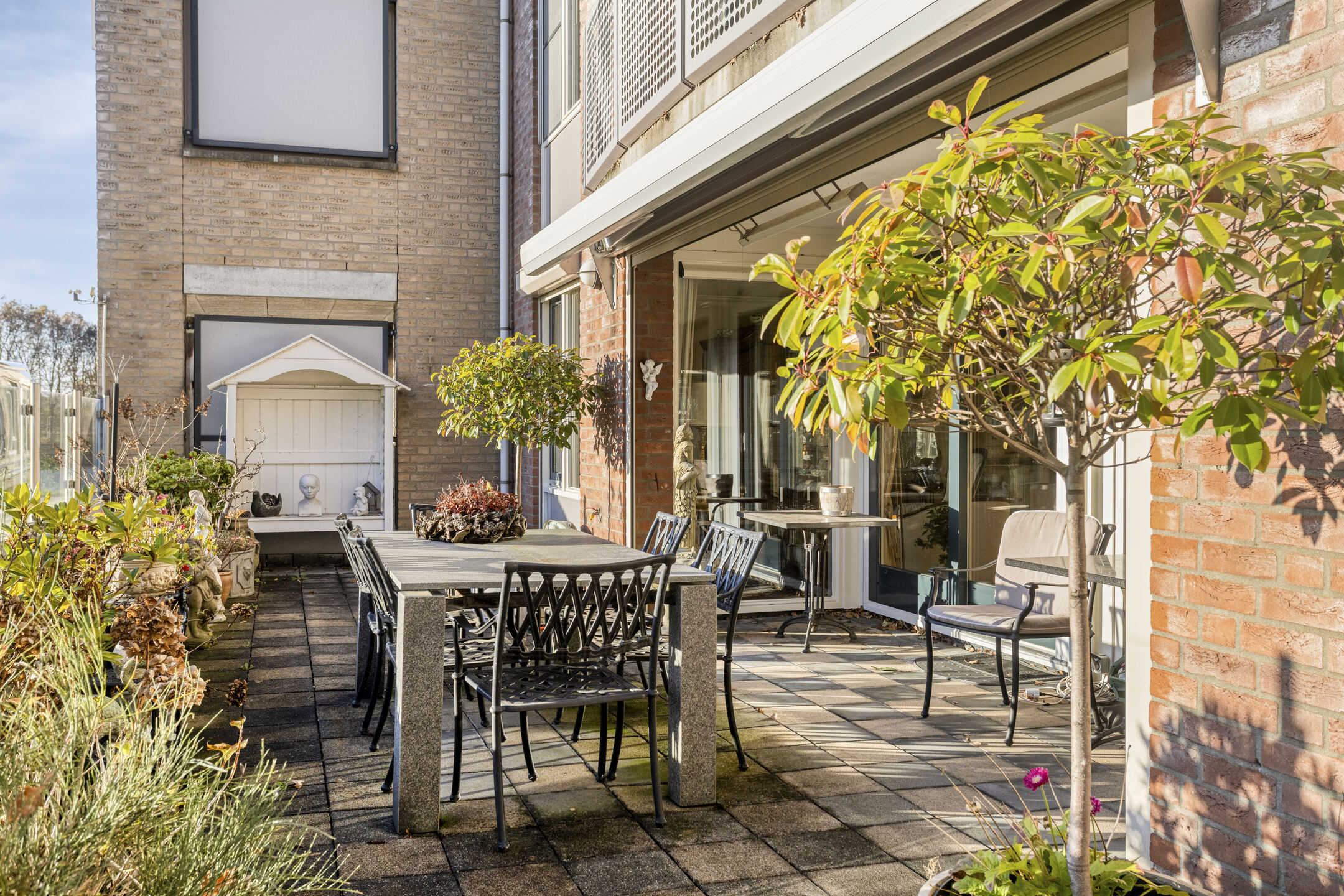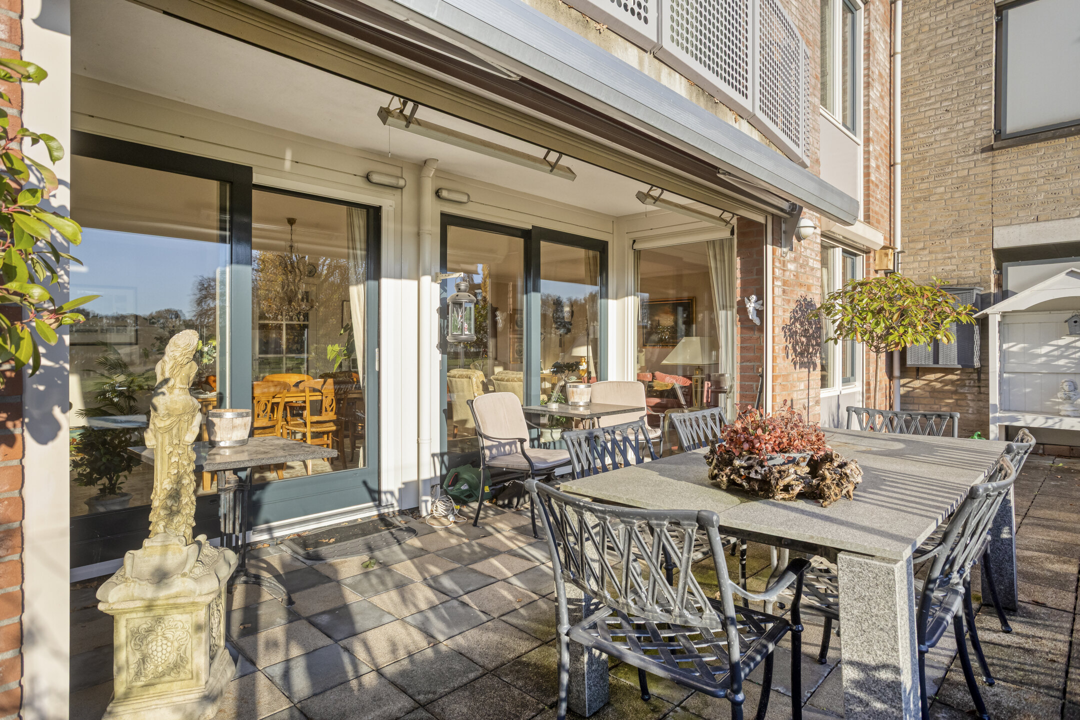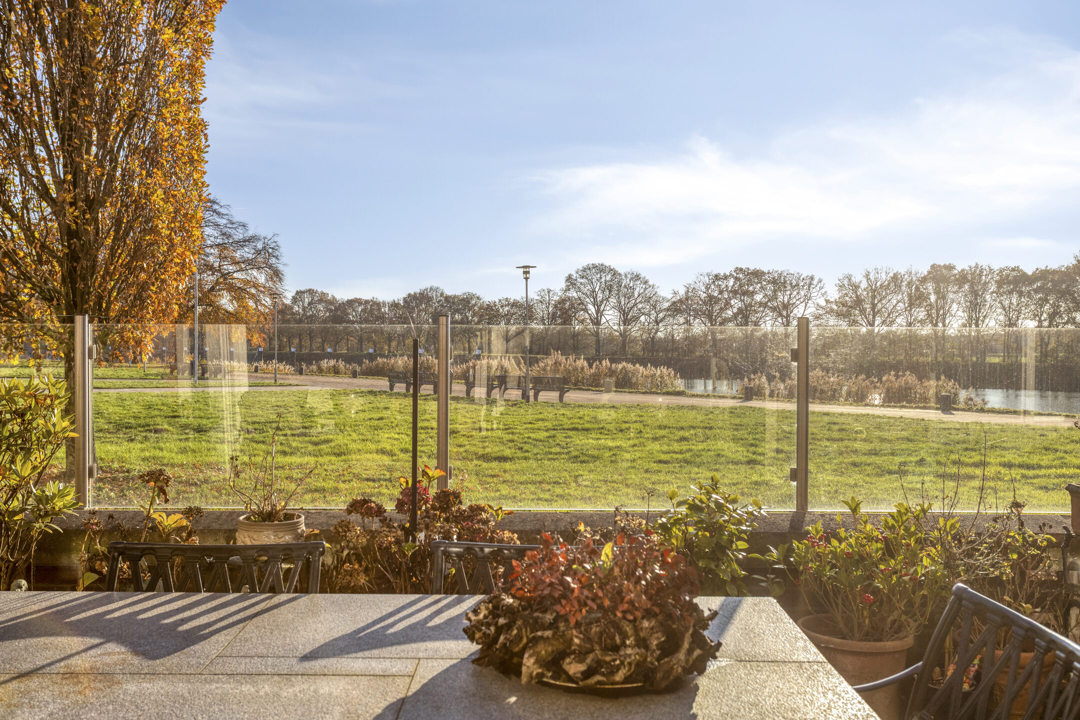 Het zonnige terras, gelegen op het zuidwesten, is een waar verlengstuk van de woonkamer. Hier geniet u elke dag van een prachtig uitzicht over het voorgelegen plantsoen en het Maas-Waalkanaal, waar regelmatig schepen voorbij varen. Door de verhoogde balustrade met glazen schermen zit u heerlijk beschut en geniet u van privacy en veiligheid — een ideale plek om te ontspannen, te lezen of te genieten van een kop koffie in de zon.