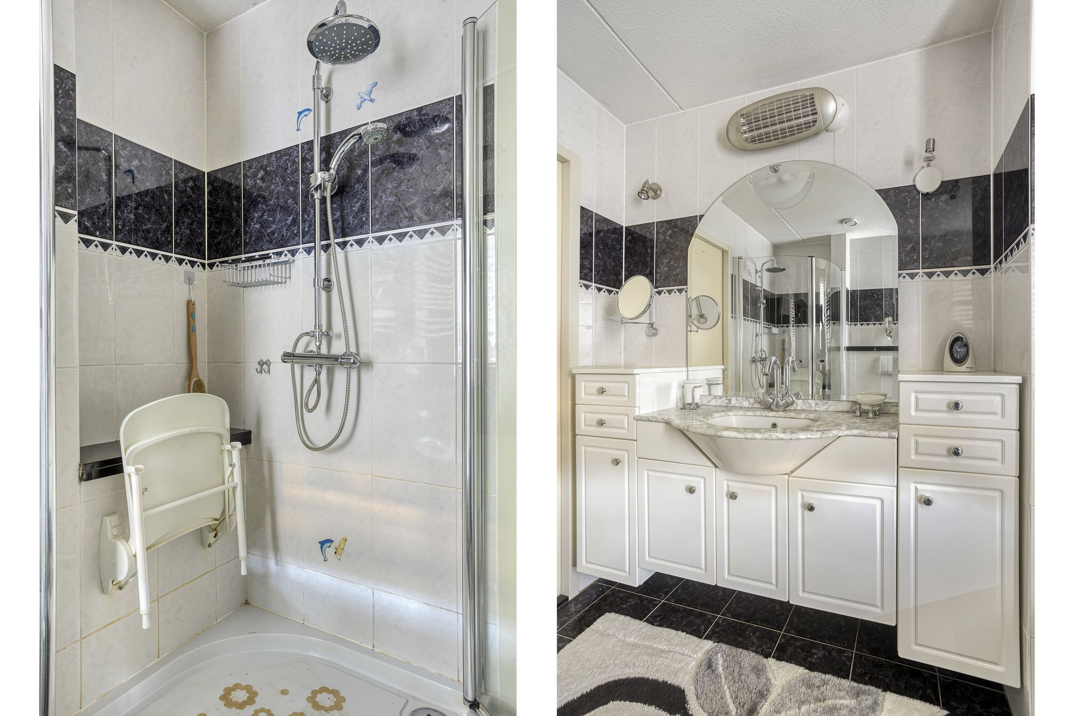 Vanuit de hal bereikt u aan de ene zijde een heerlijke slaap-/werkkamer en een tweede badkamer met douche, vaste wastafel en wasmachine-aansluiting.