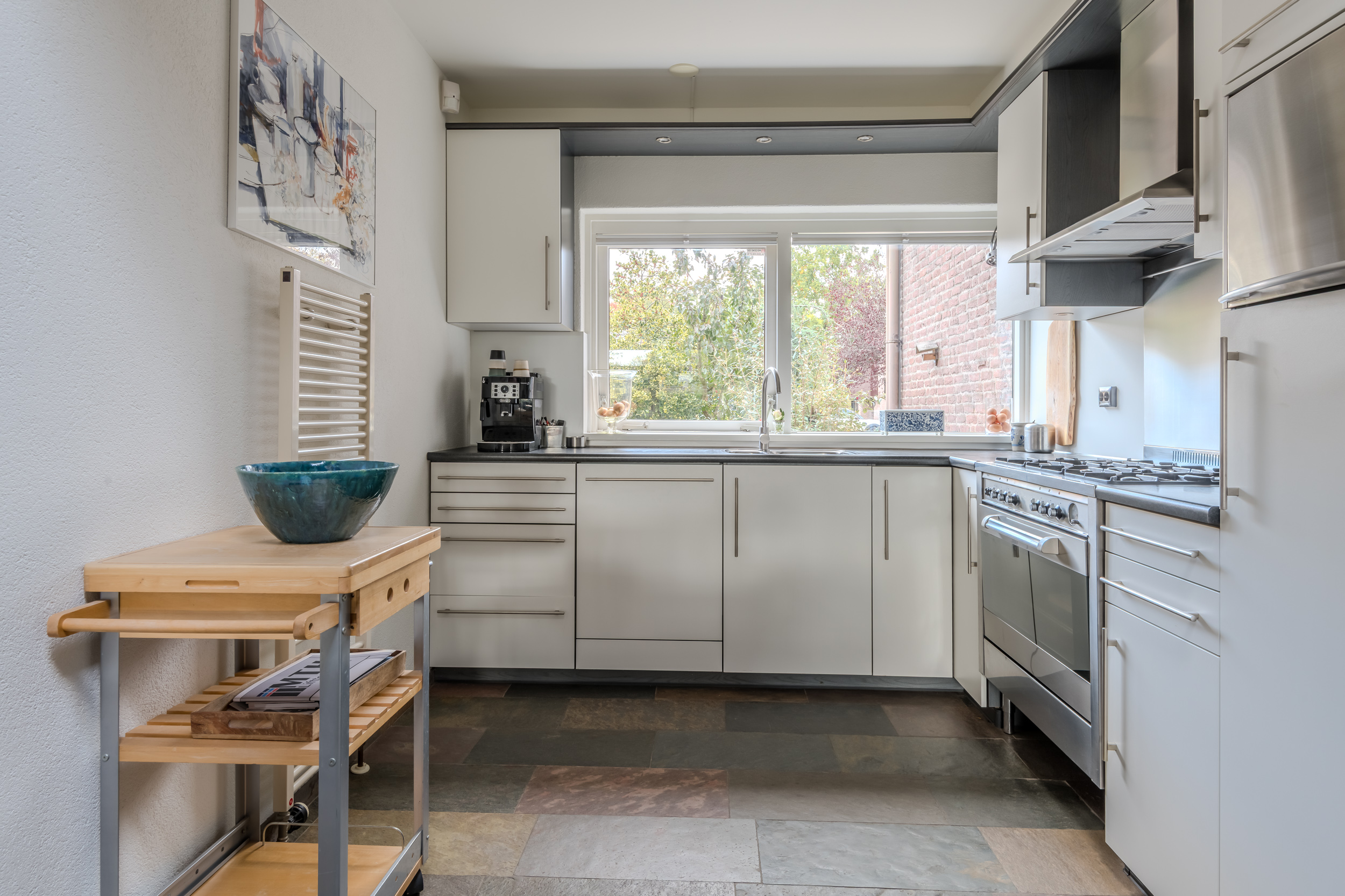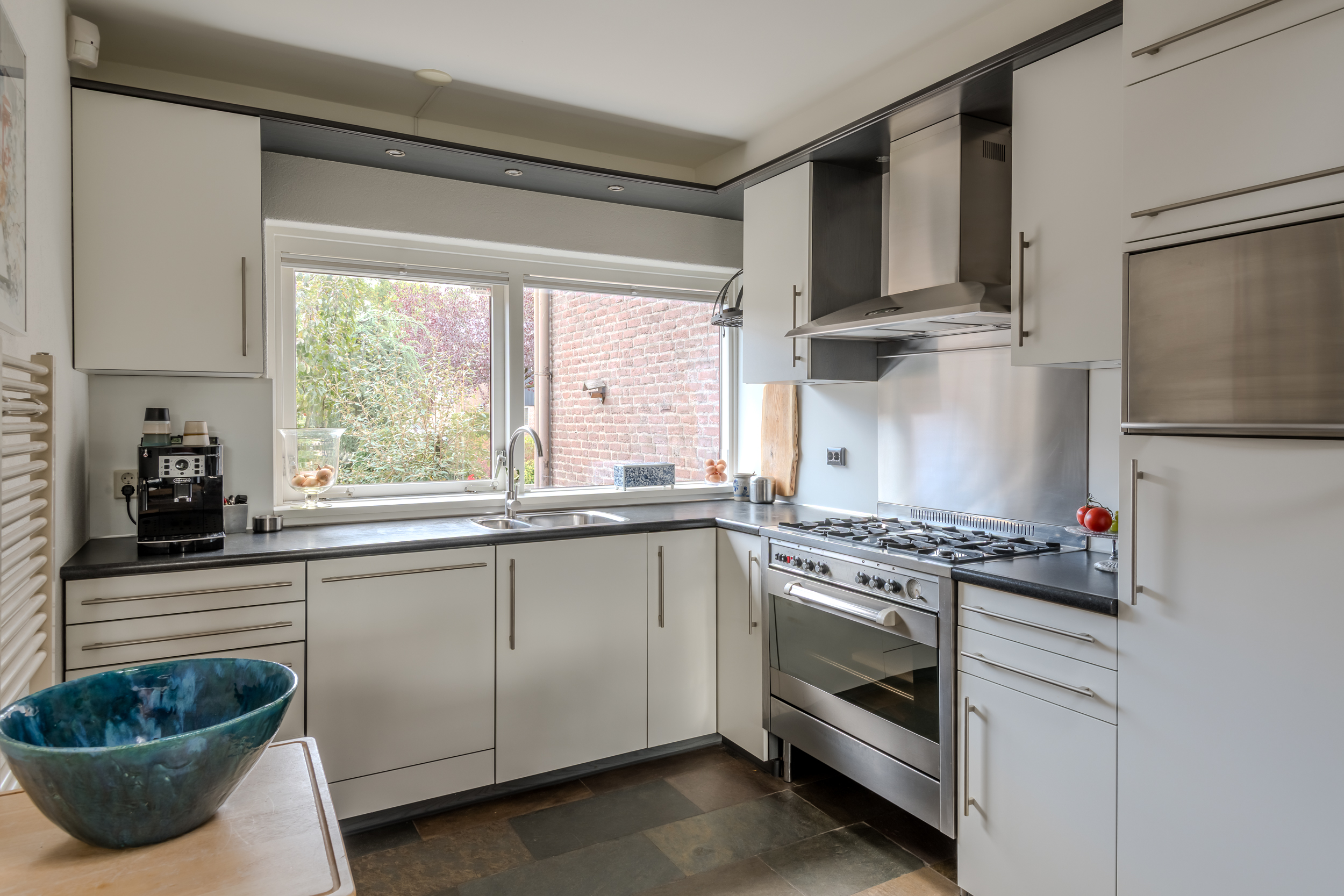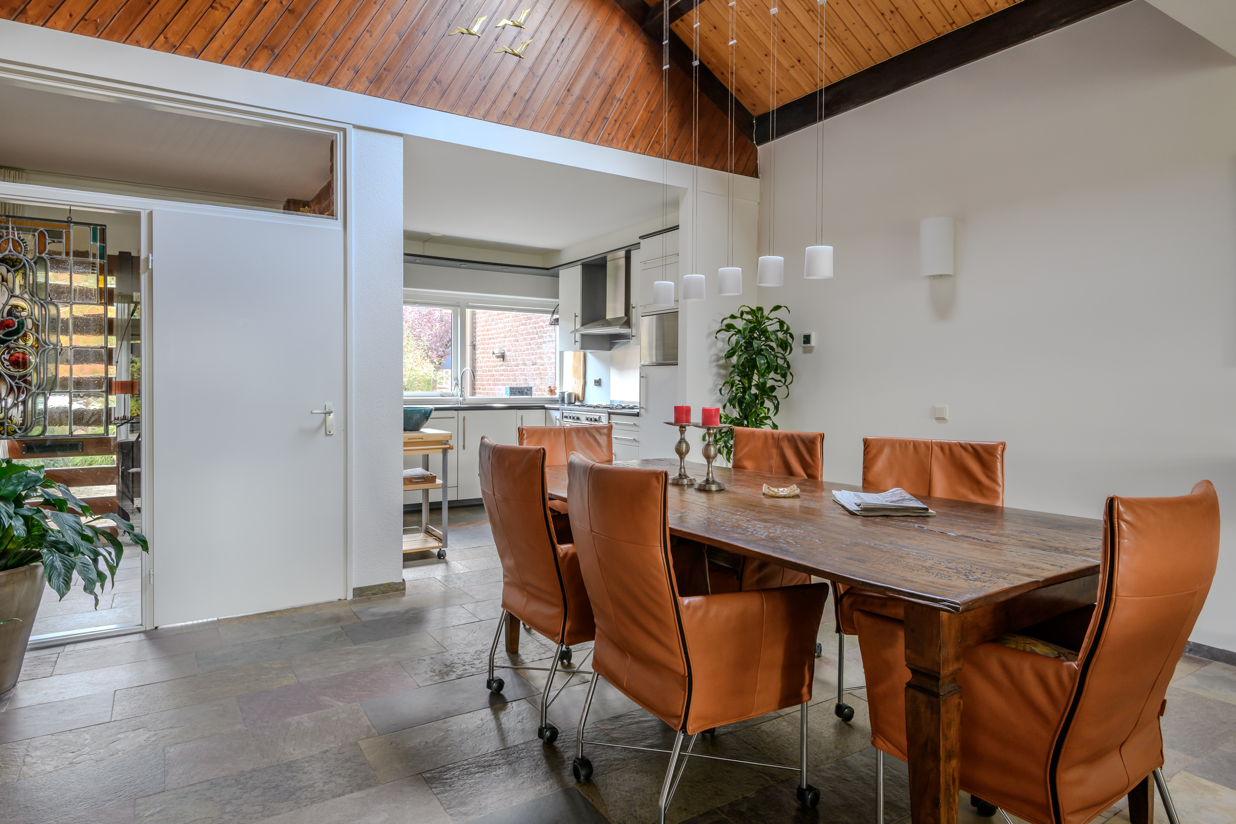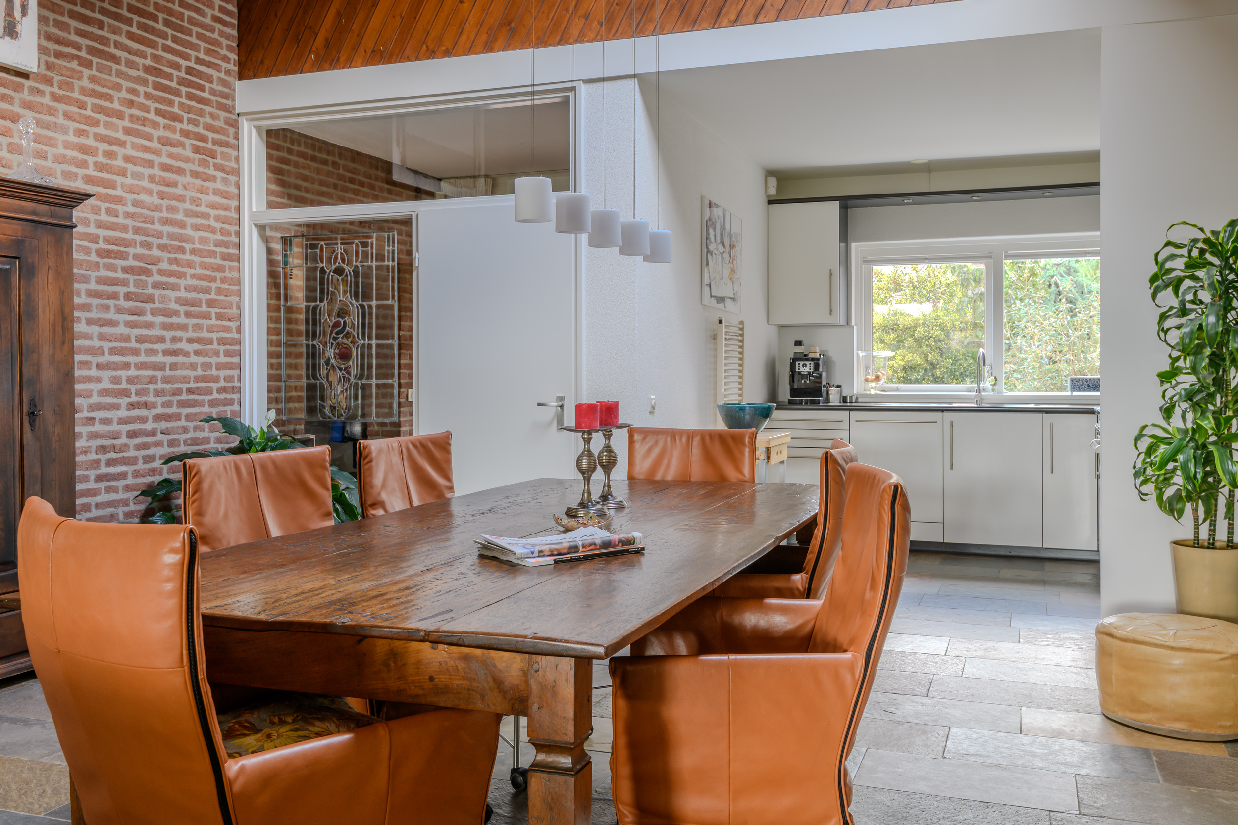 In 2005 is er een nieuwe luxe keuken geplaatst in een open opstelling met inbouwapparatuur. De riante eetkamer heeft een mooi hoog plafond en verbindt de keuken en de zitkamer. Via een charmante spiltrap naast de open haard is de extra werk- of studeerkamer op de vide te bereiken: ideaal voor thuiswerken of als rustige plek voor de kinderen.