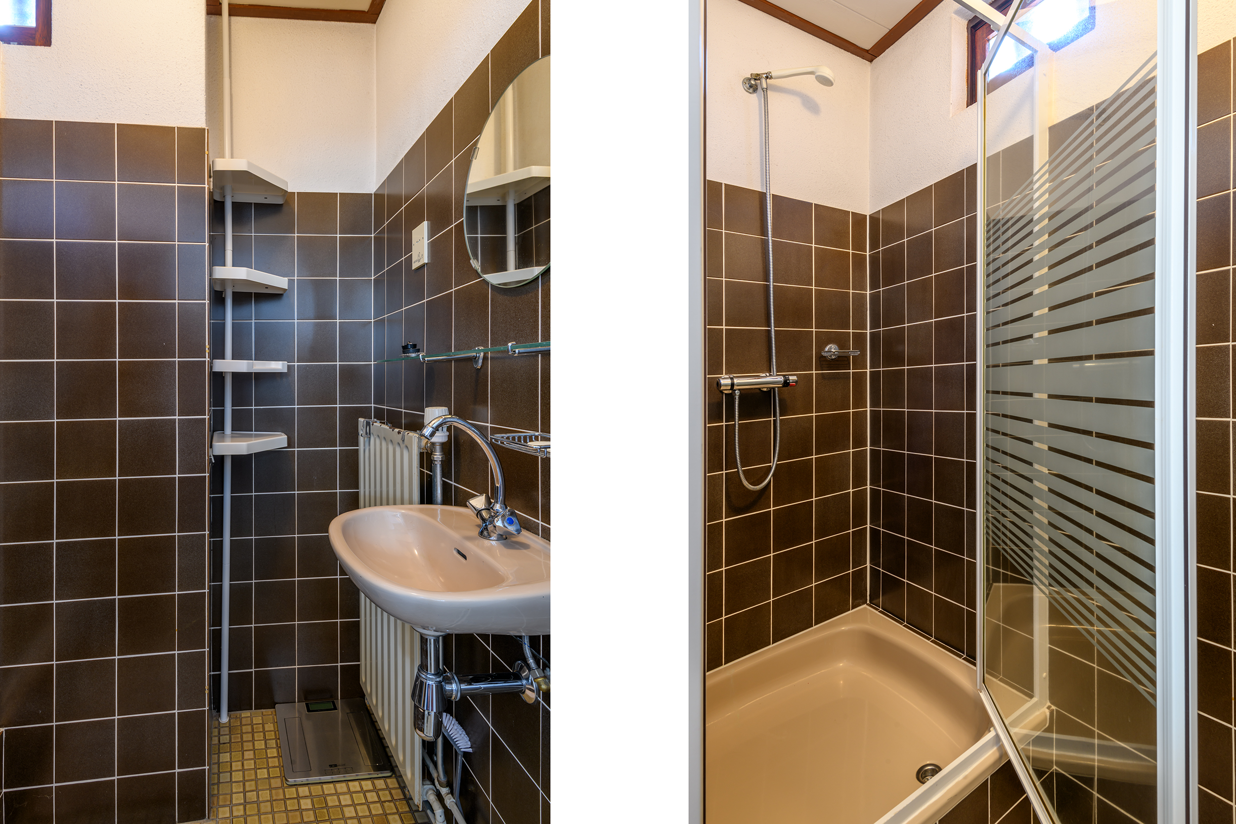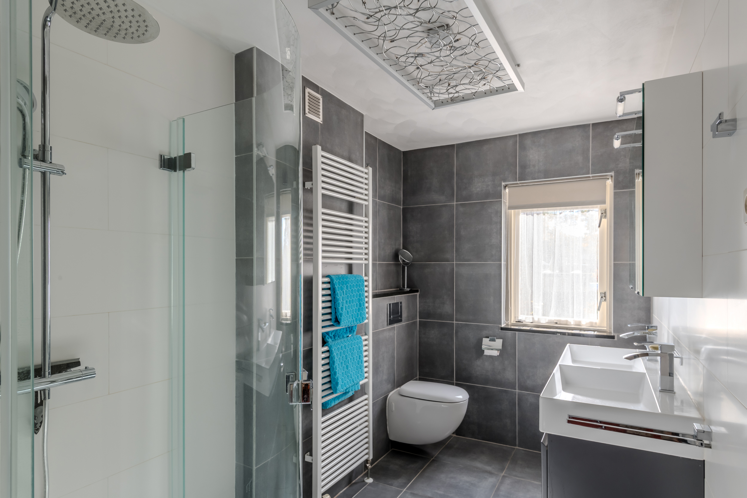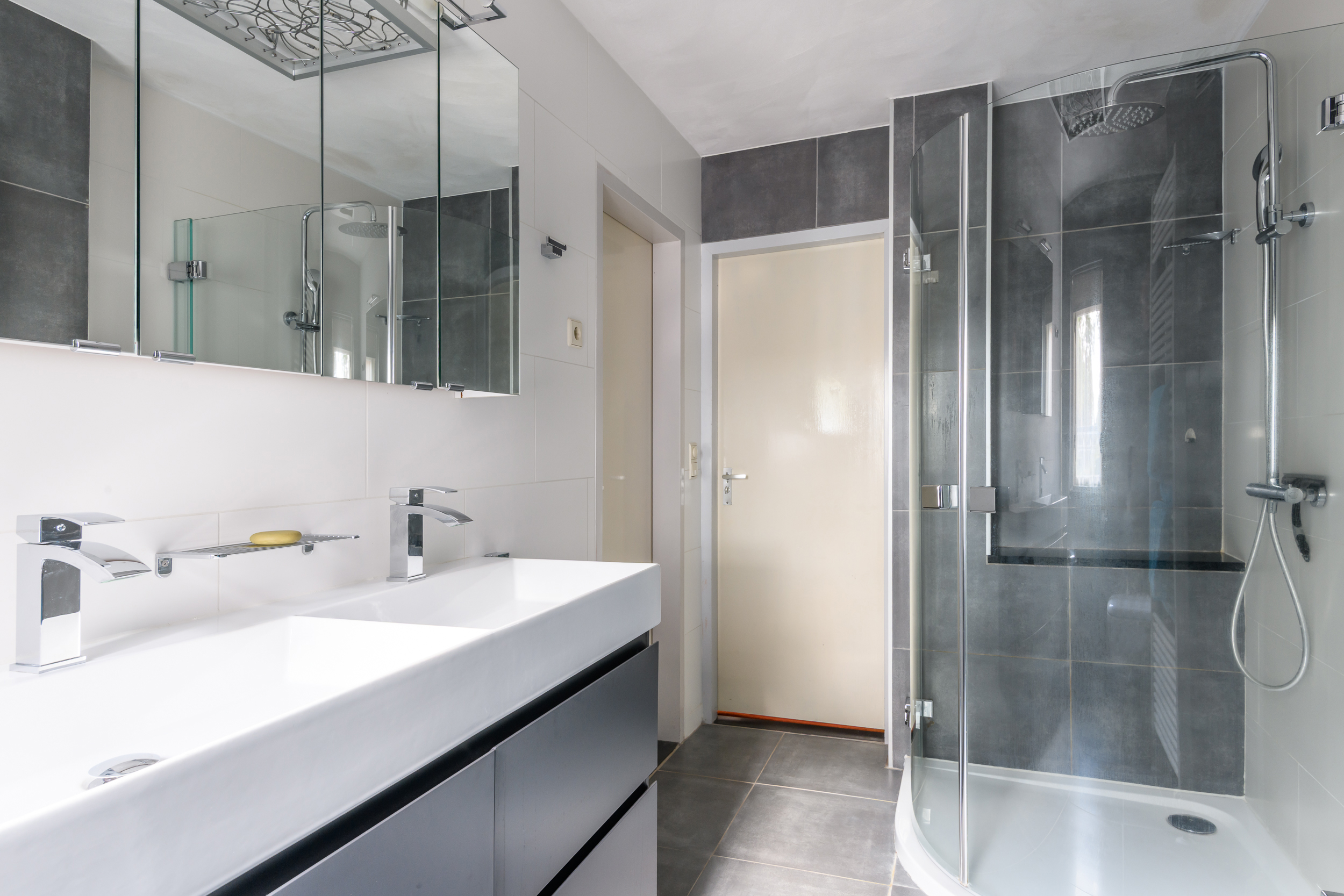 Weer een verdieping hoger is een extra badkamer met douche en vaste wastafel en een ruime slaapkamer, ideaal voor de spitsuren van gezinnen!