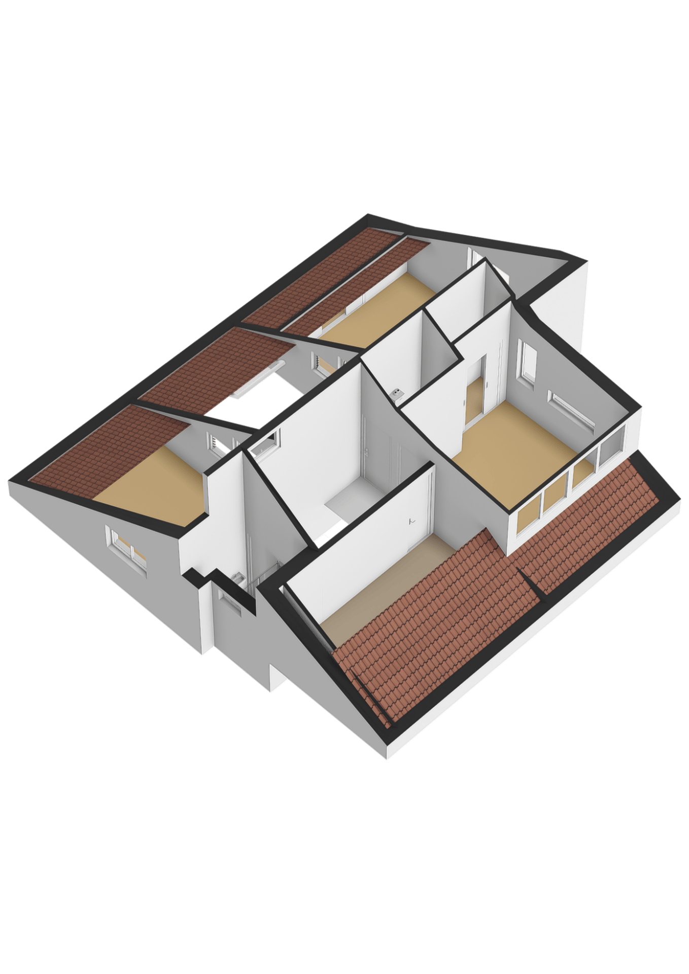 De woning telt een royale woonkamer, drie (voorheen vier) slaapkamers, twee badkamers en een extra werkkamer, verdeeld over verschillende niveaus: