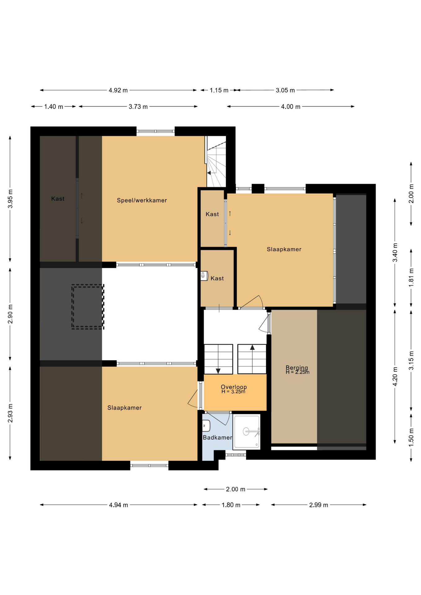 Vanuit de overloop is de naastgelegen ruime zolderberging met c.v.-opstelling te bereiken.