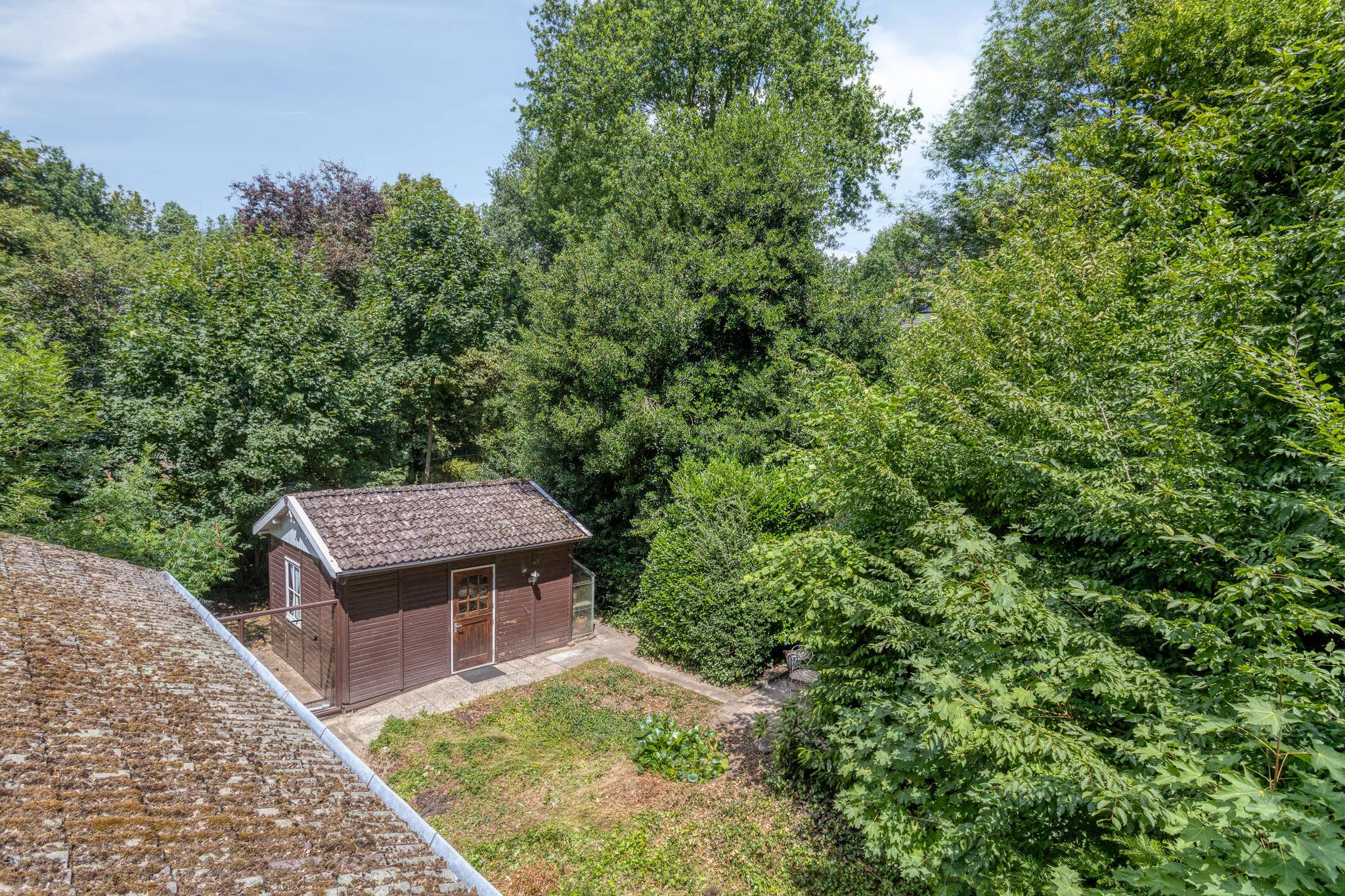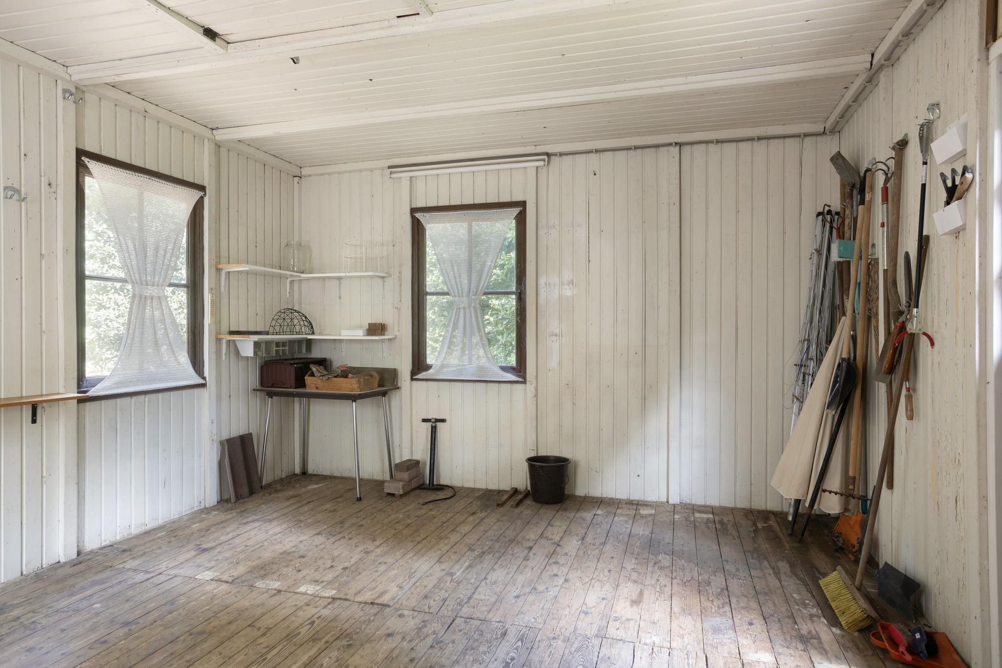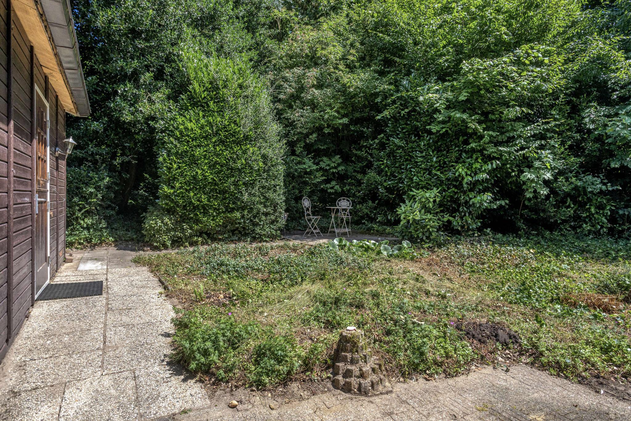 Tuin: de tuin bestaat uit meerdere zonnige zitjes, een vijver en schaduwrijk bos. Via diverse paadjes over het terrein van 1805 m2 zijn onder andere de houtopslag, de vrijstaand houten schuur en de parkeerplaatsen aan zowel de linker- als de rechterzijde van het perceel te bereiken.