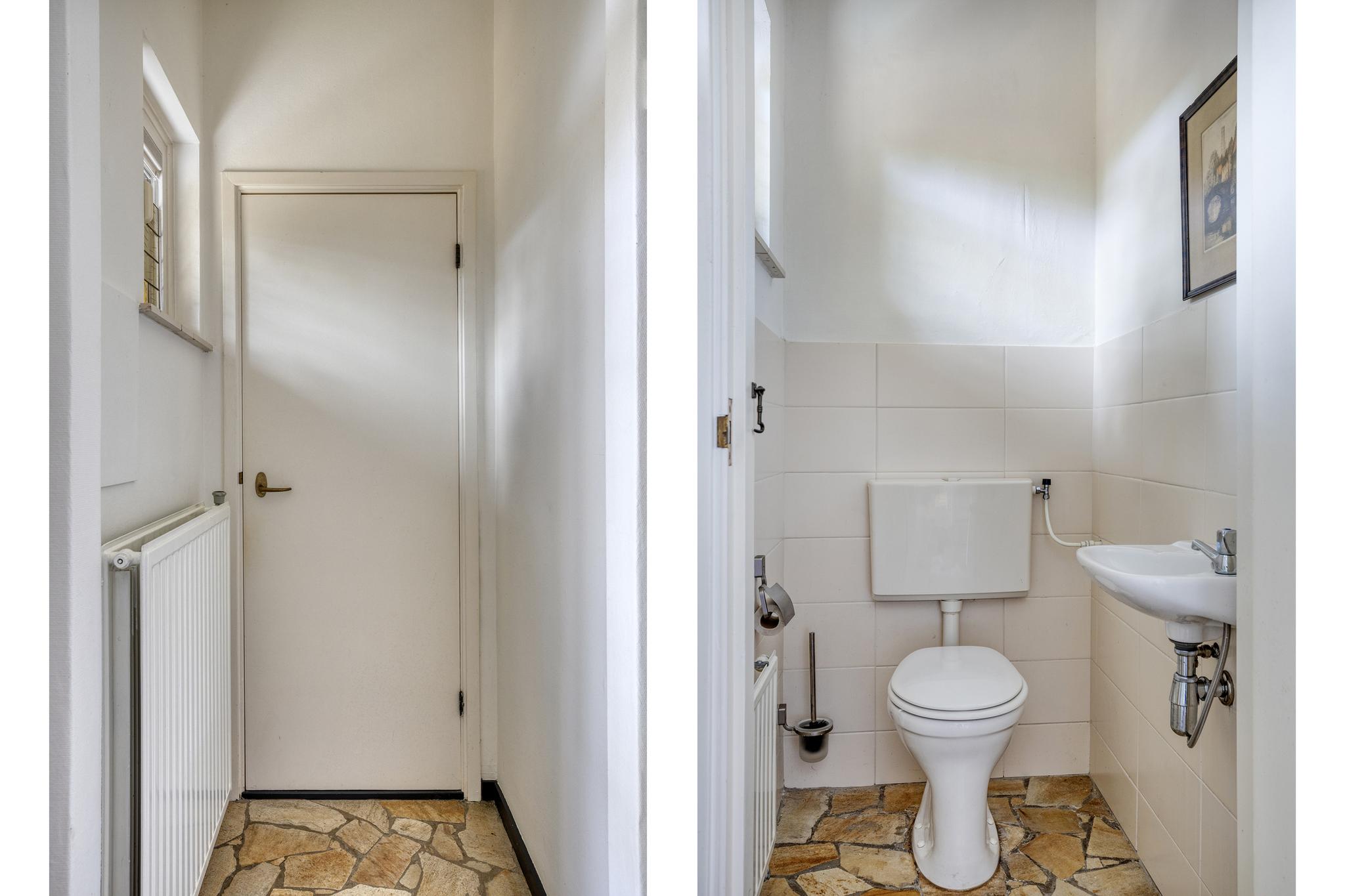 begane grond: entree met hal en toilet, allen voorzien van een fraaie flagstone stenen vloer en bij de voordeur uitgerust met een elektrisch bedienbaar rolluik.