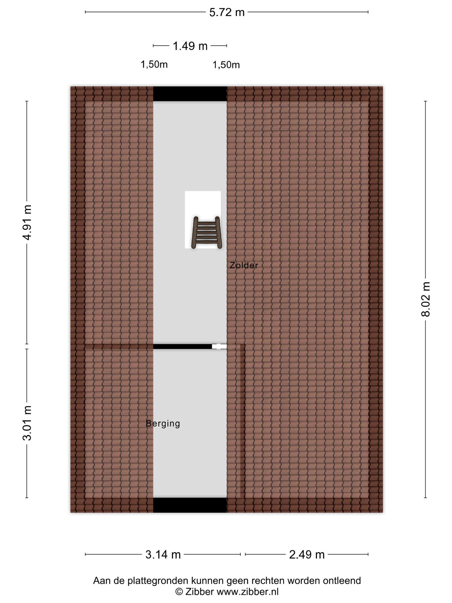 Vliering: middels luik en losse trap te bereiken vliering met bergmogelijkheden.