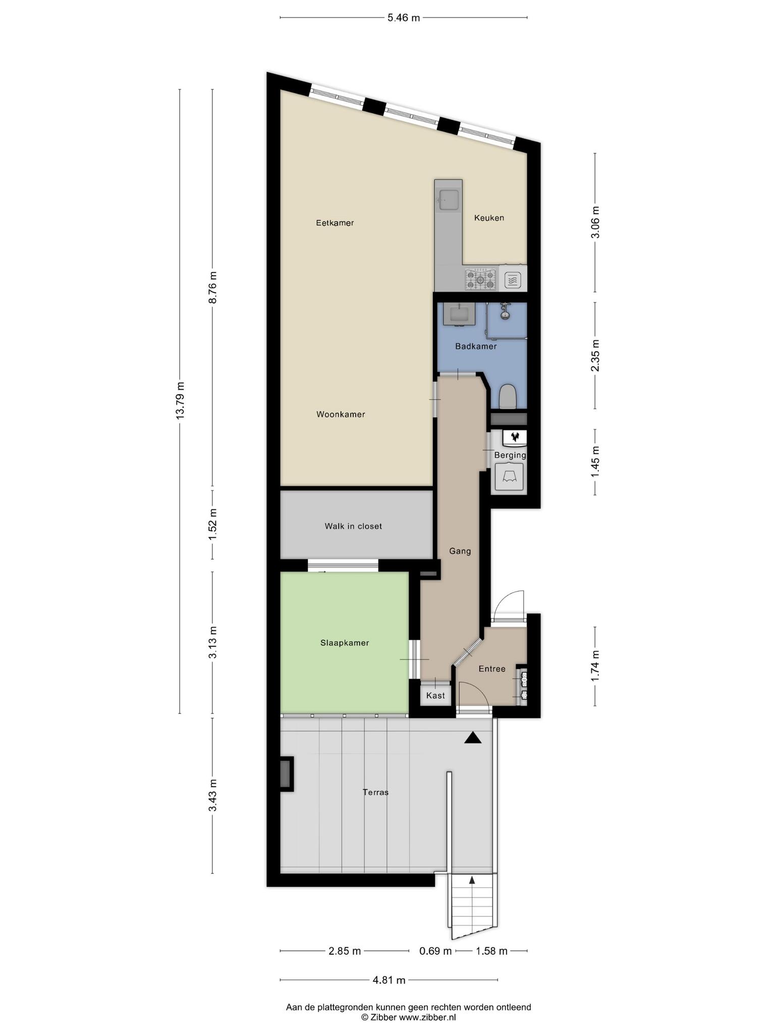 Op de begane grond is de buitenberging met genoeg ruimte voor opslag en bijv. meerdere fietsen. Via de trap wordt de entree bereikt. Hier is de met de bovenburen gedeelde hal. De hal bevat tevens de meterkast.