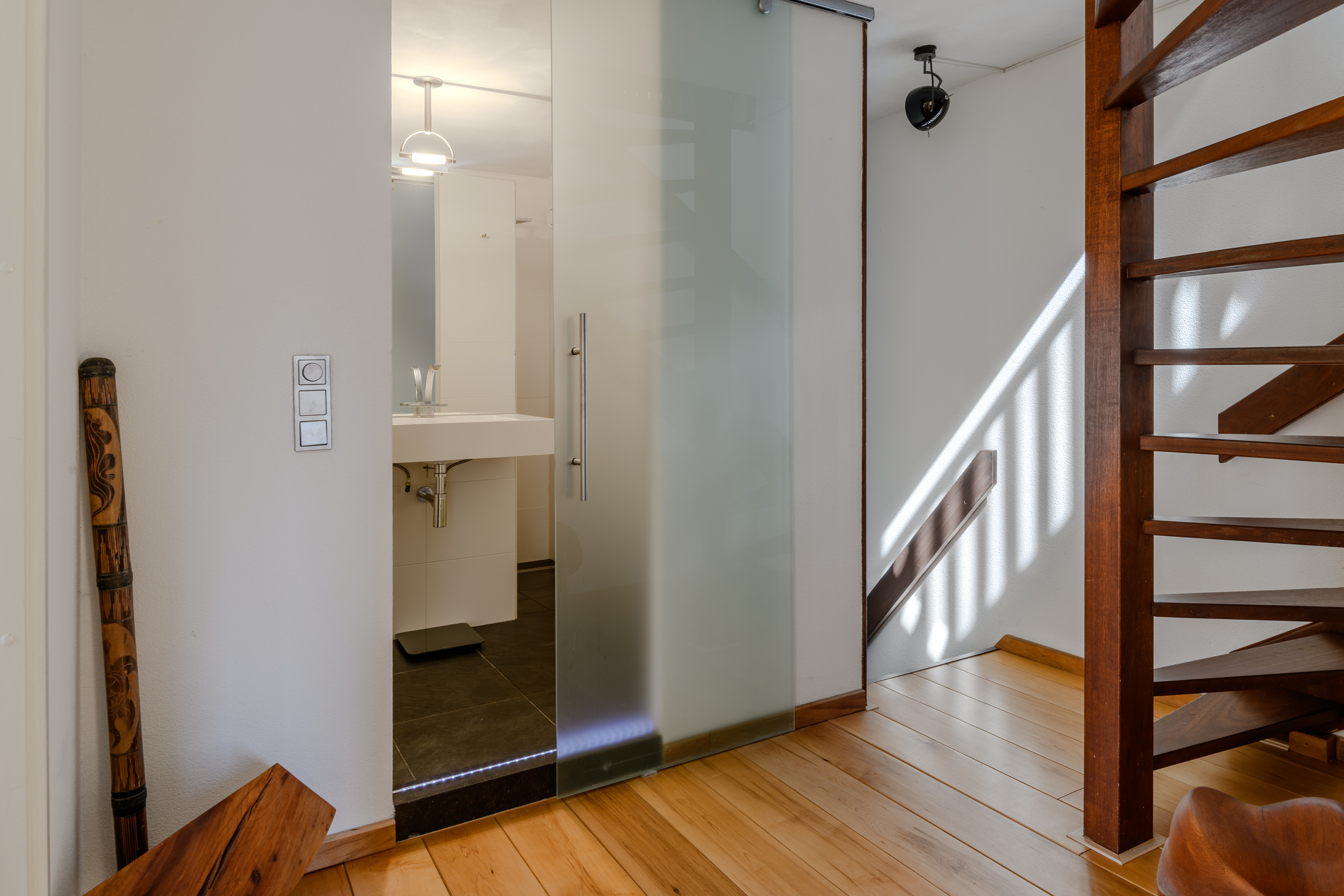 ruime overloop met, net als op de 3 slaapkamers, een massief houten vloer van Maple.