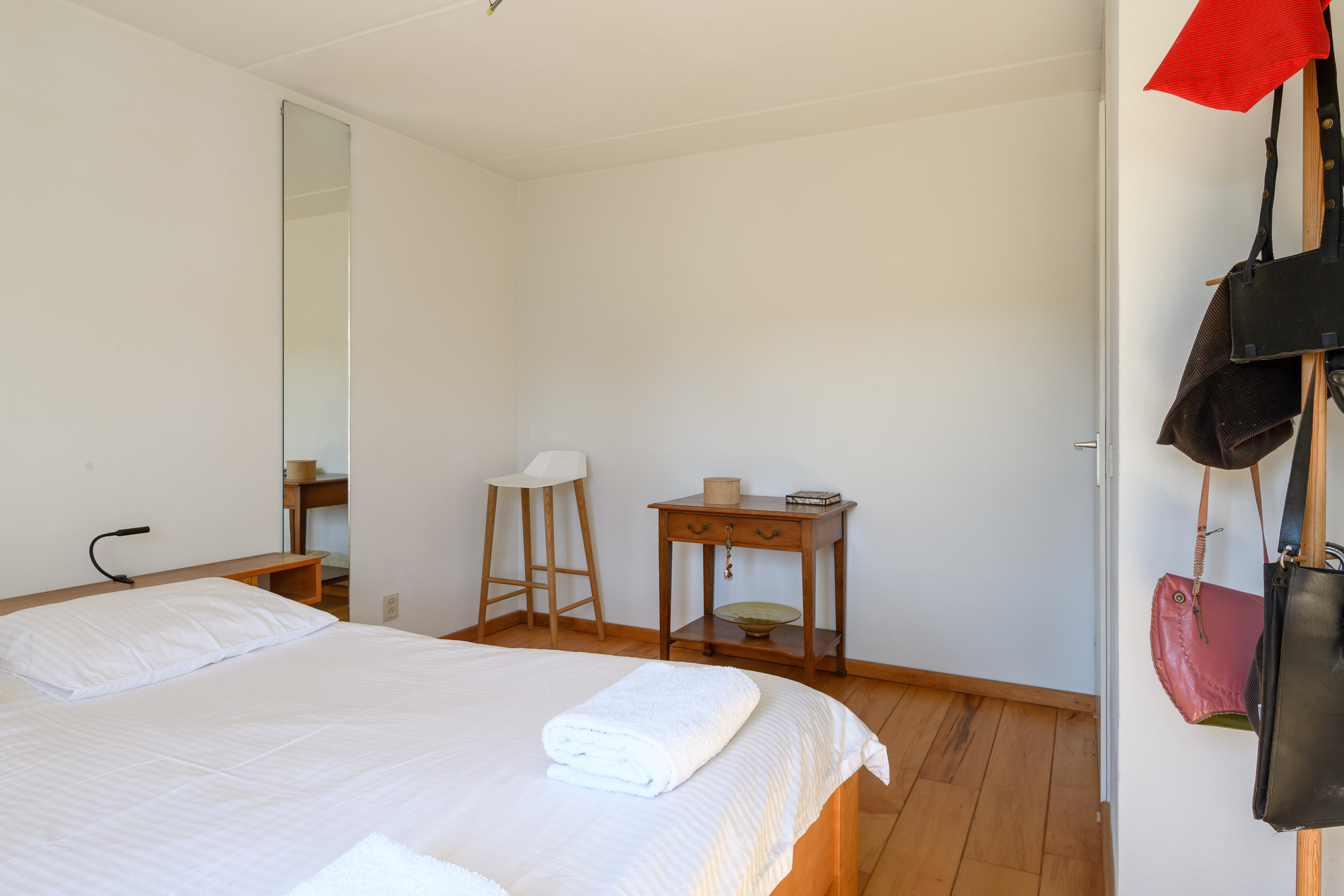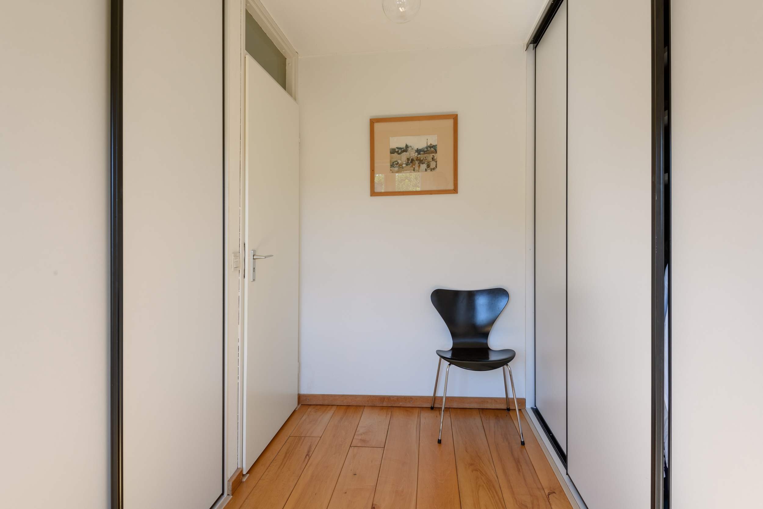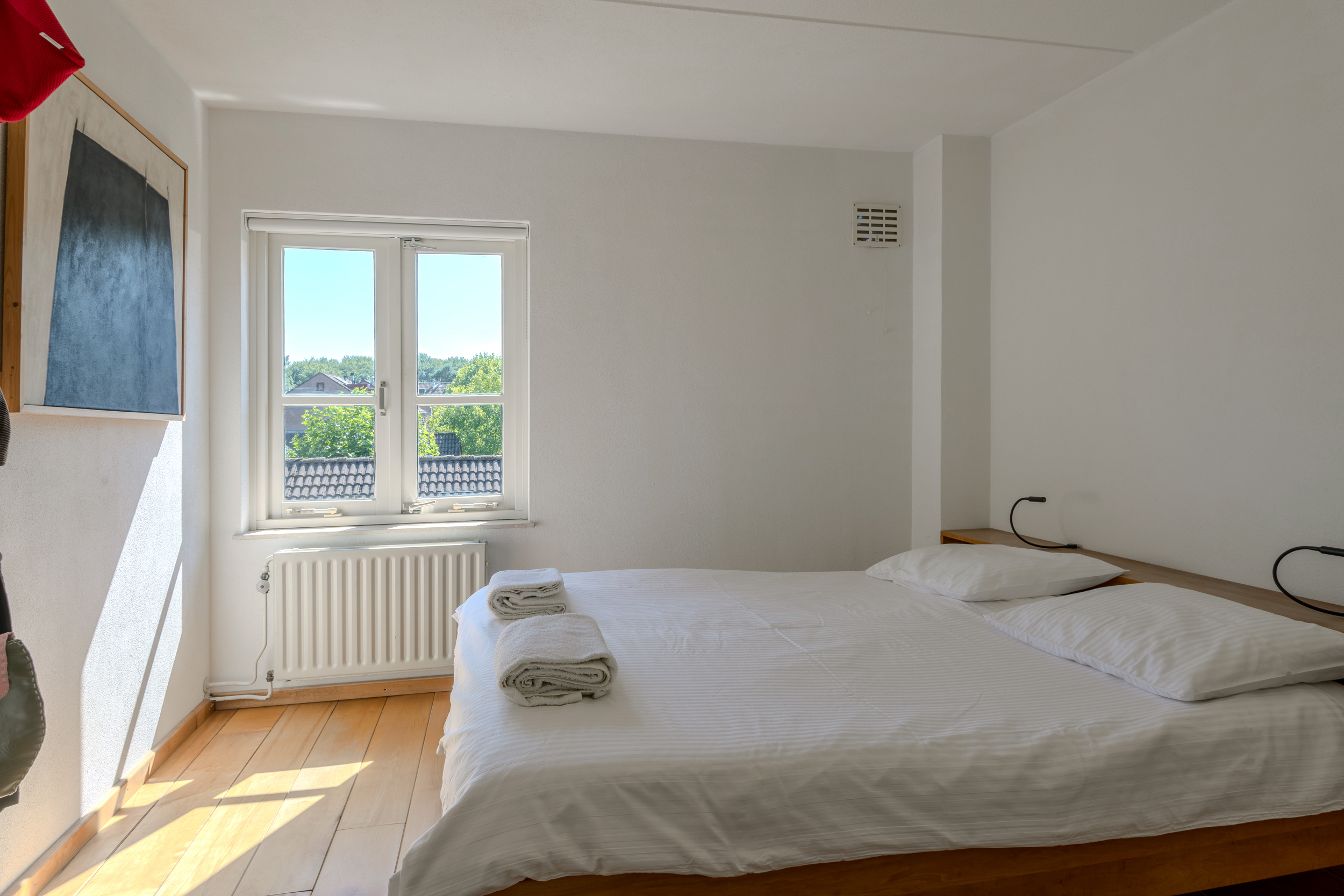 De drie slaapkamers zijn alle drie goed van formaat en hebben de kenmerkende Bossche school-stijl ramen met roedeverdeling en enkel glas.