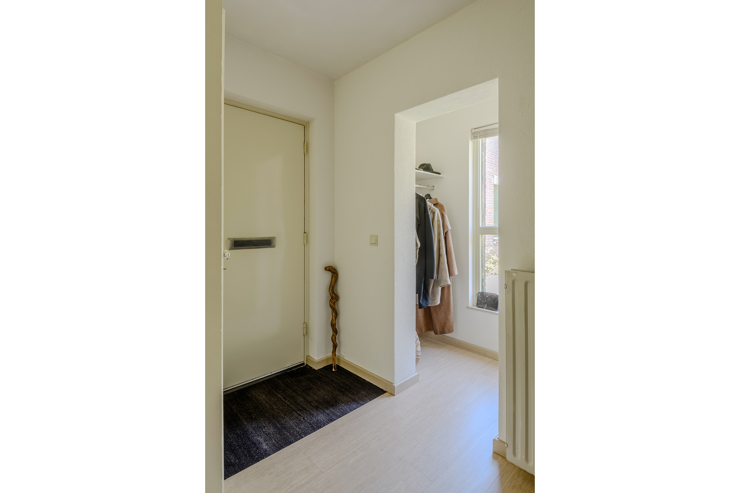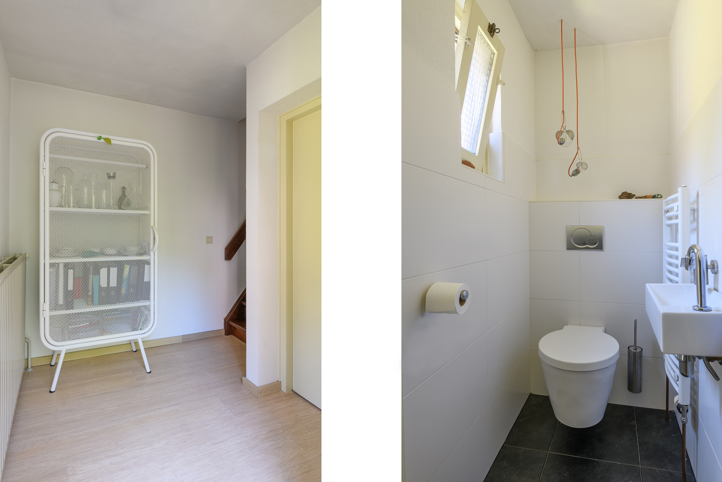 Riante entree met meterkast (vernieuwd in 2016), garderobe en modern toilet (Philip Starck).