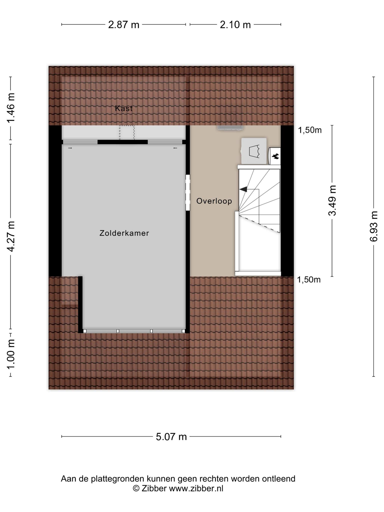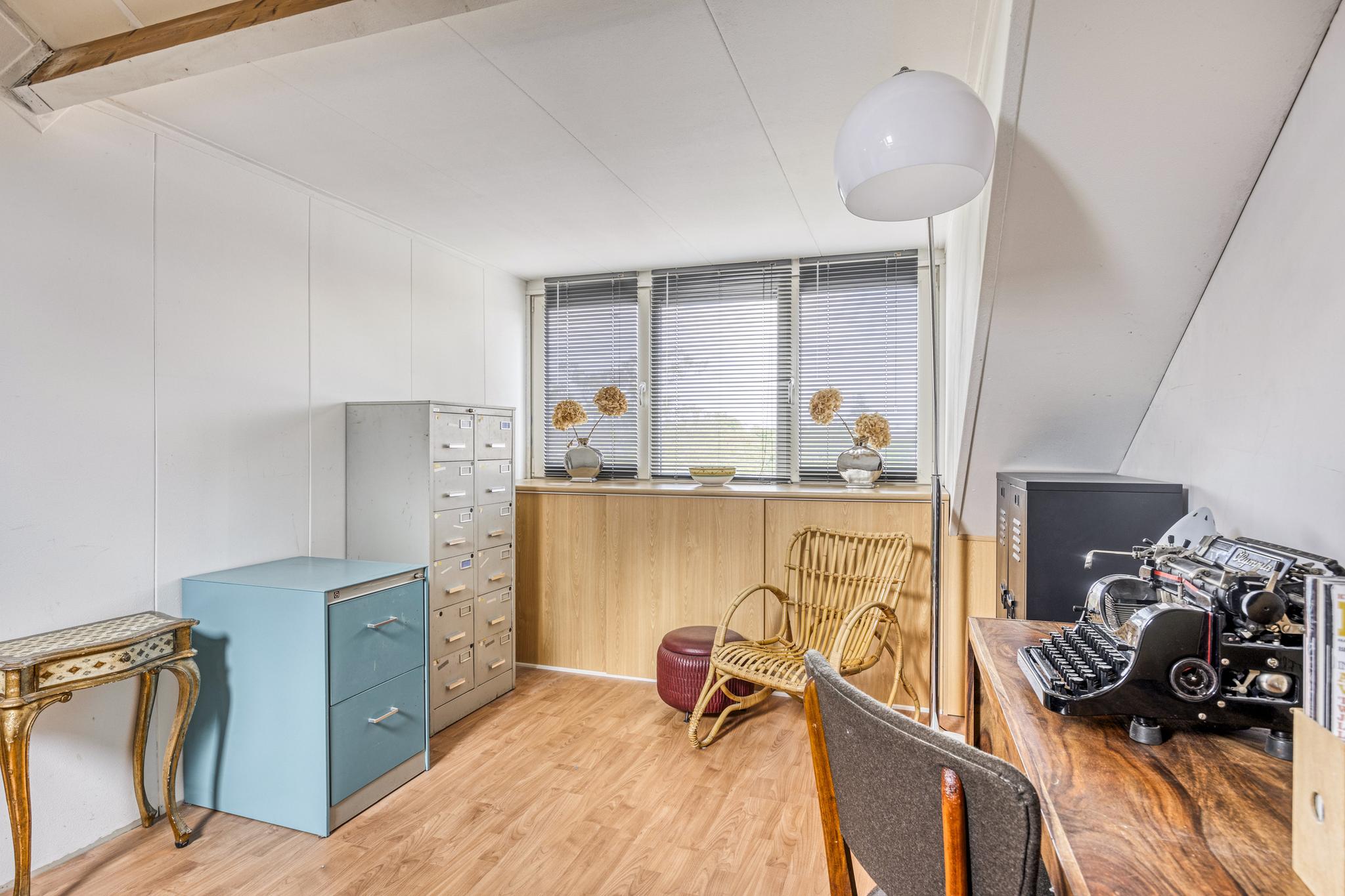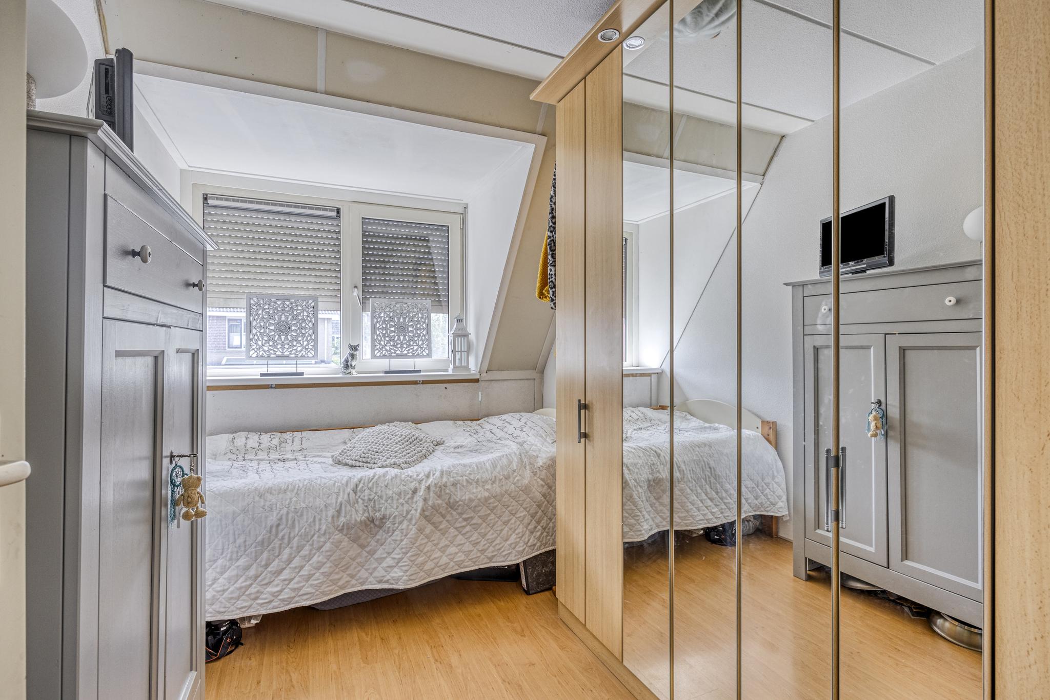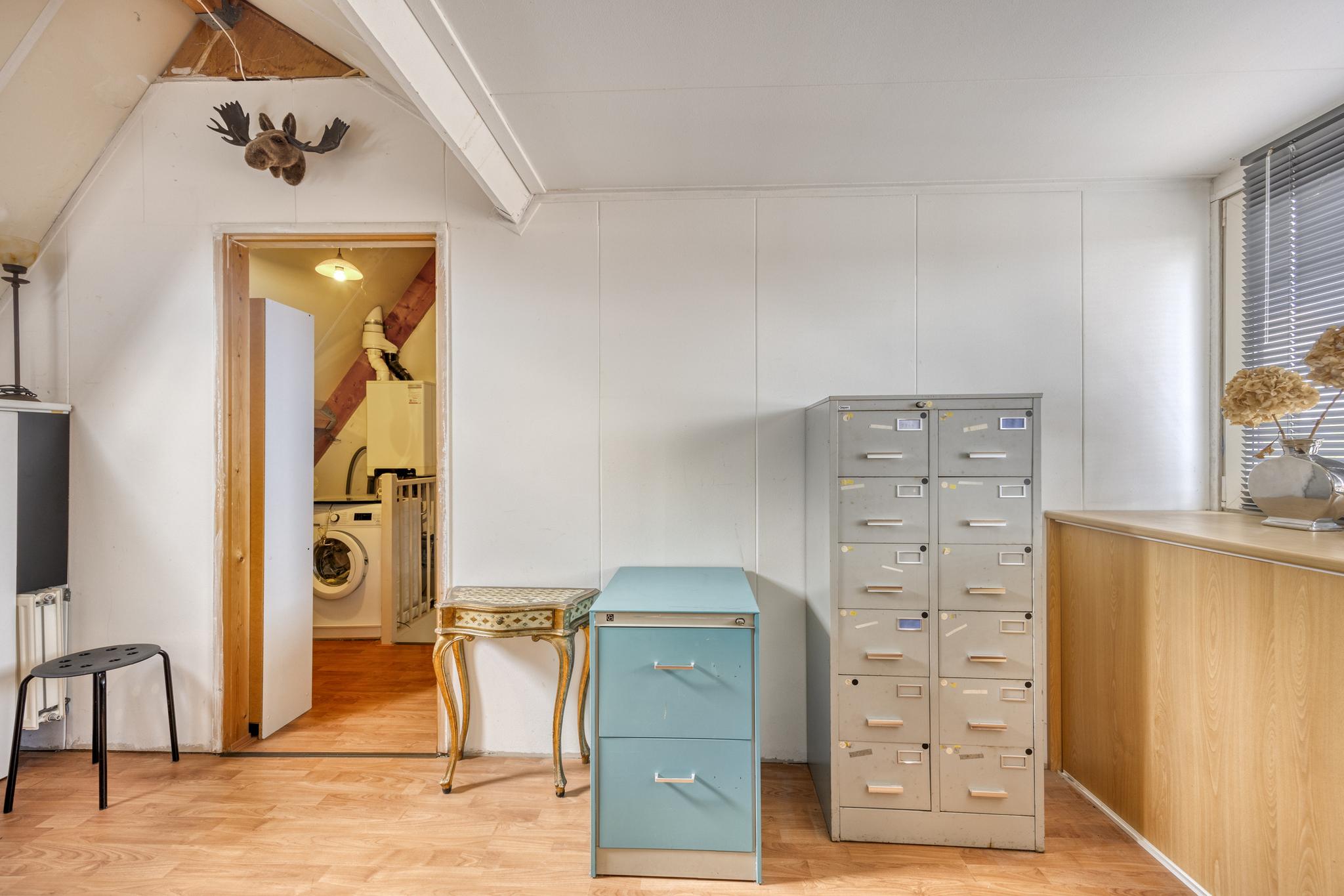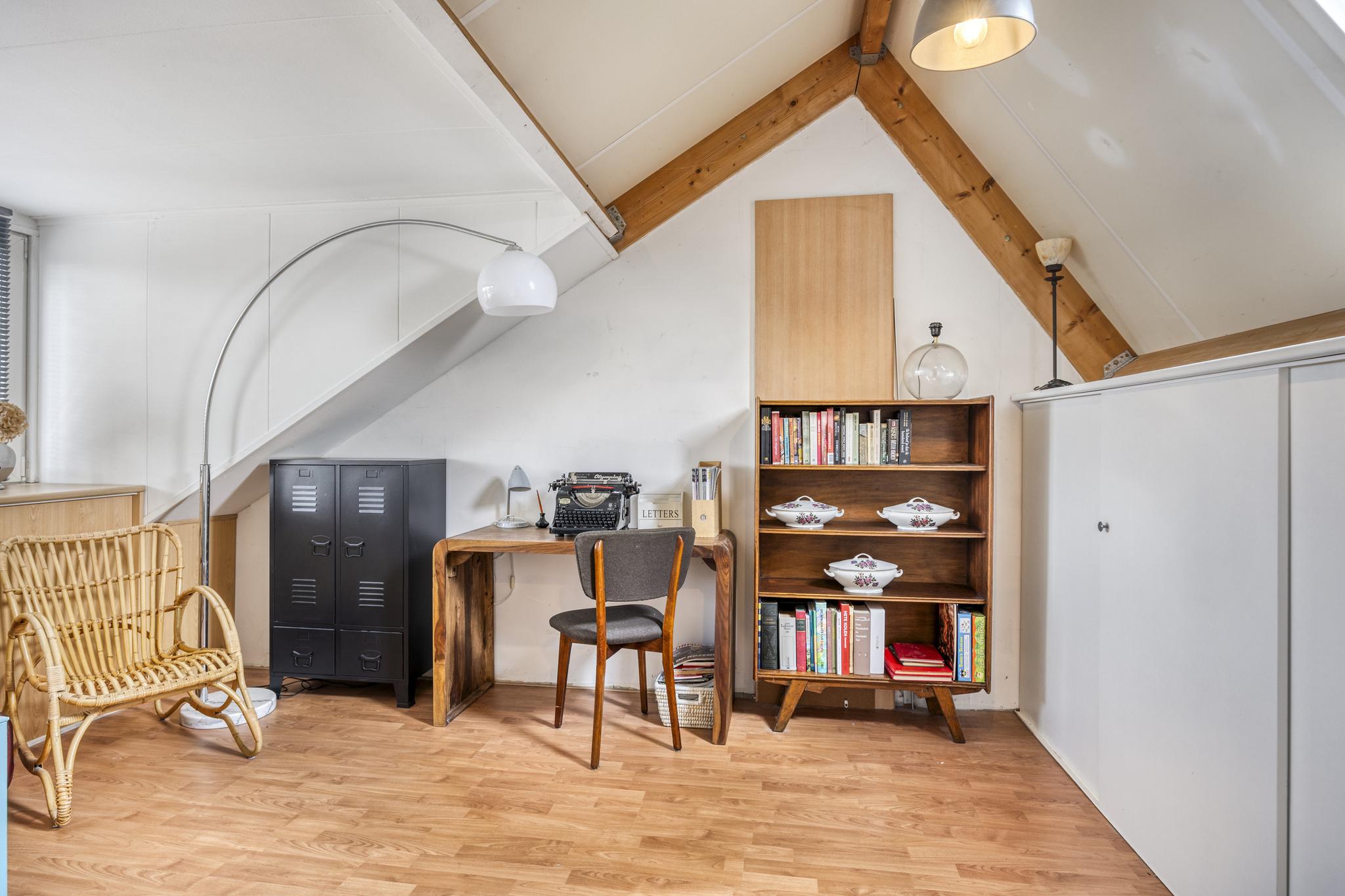 2e verdieping: middels vaste trap te bereiken voorzolder met c.v. en wasmachine-droger opstelling. De zolder heeft verder een mooie en lichte 4e (slaap-) kamer doordat hier ook een hoogwaardige kunststof dakkapel is geplaatst in 2010. Er is ook bergruimte achter het knieschot.