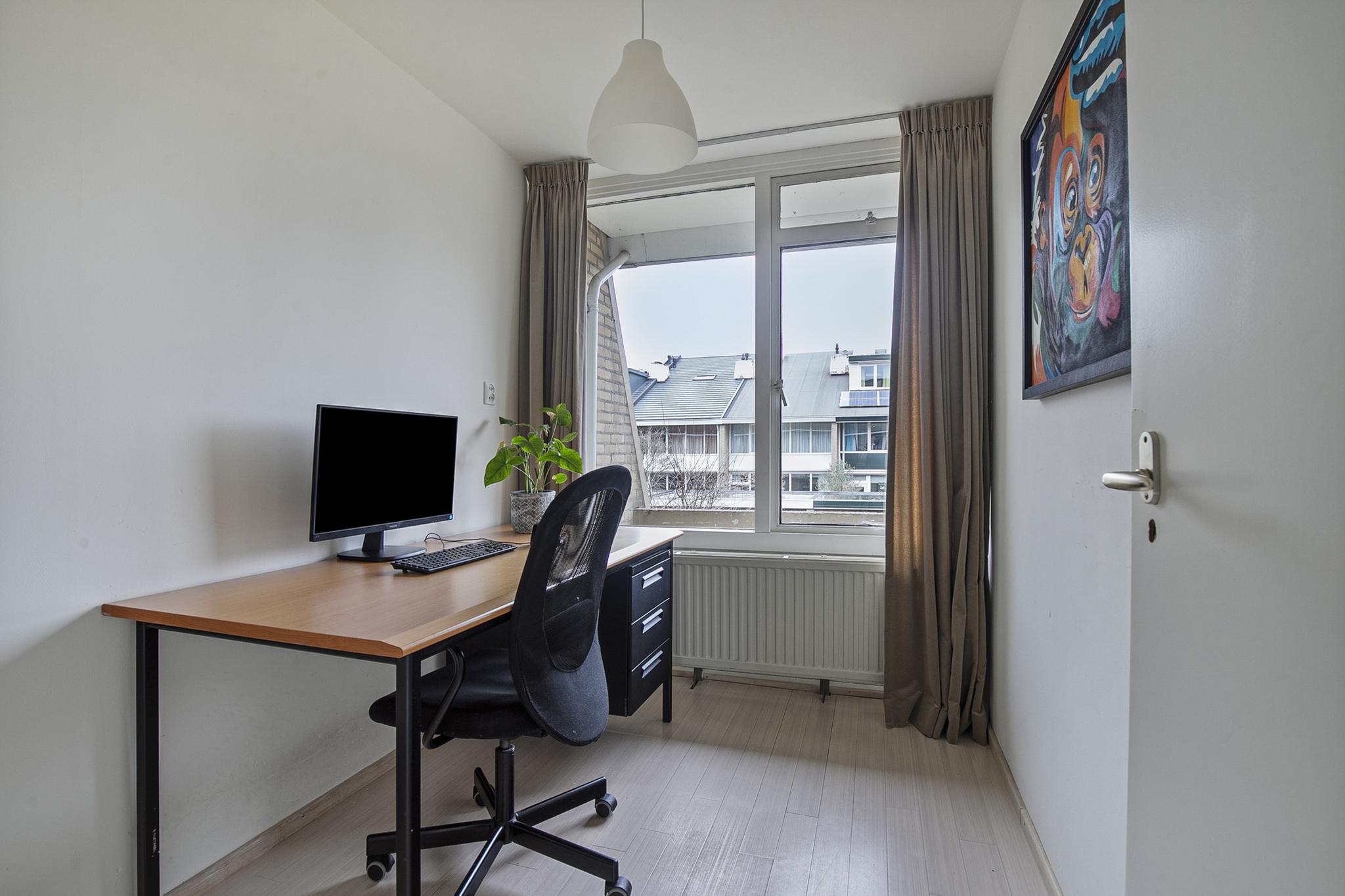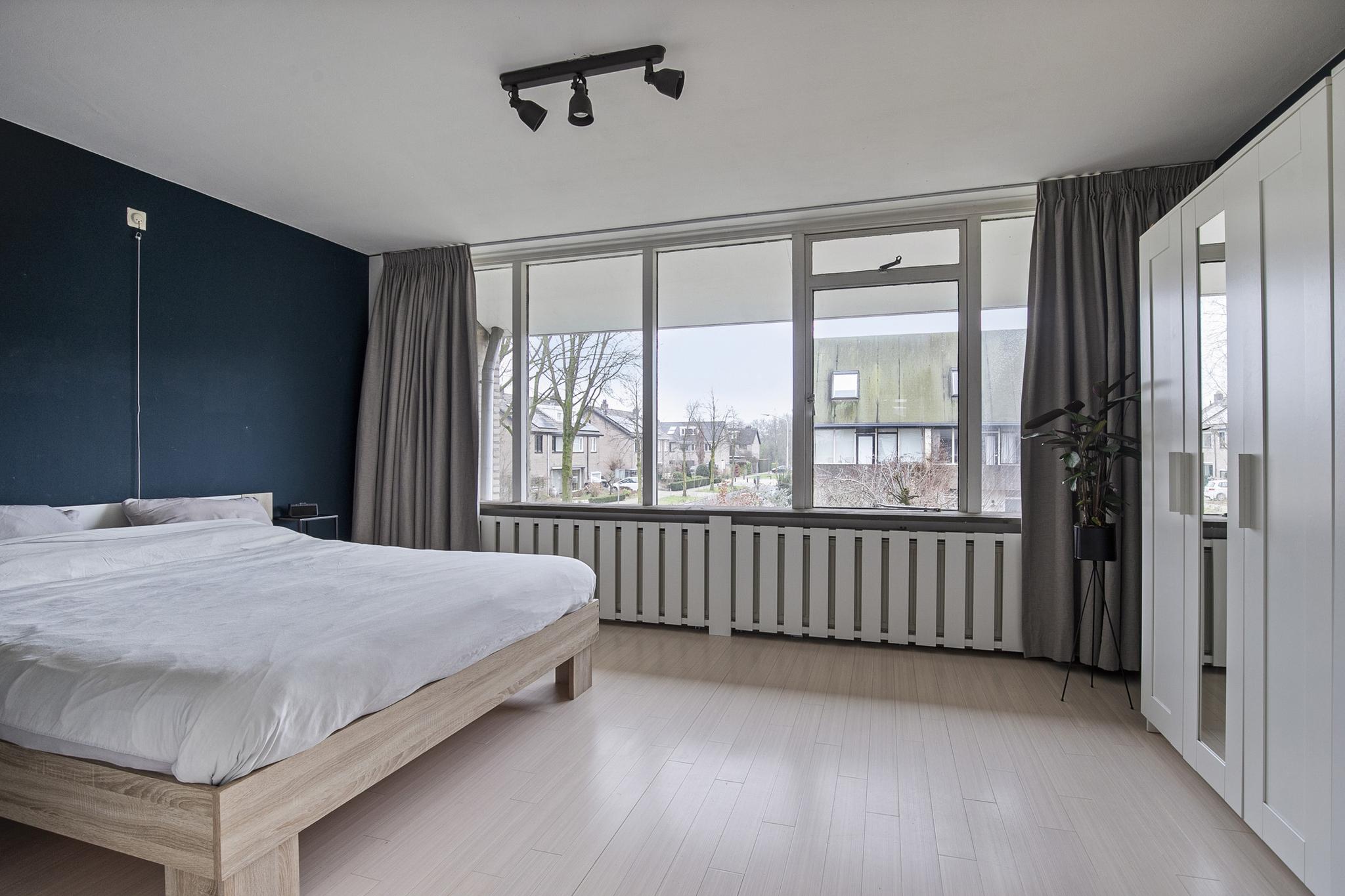 middels vaste trap te bereiken verdieping met 2 slaapkamers en een extra 3e studeerkamer met dakraam die nu dienst doet als berging. De grote slaapkamer heeft een in 2019 geplaatste dakkapel, met HR++ glas in kunststof kozijnen, kast met c.v. opstelling (Intergas HR 2019).