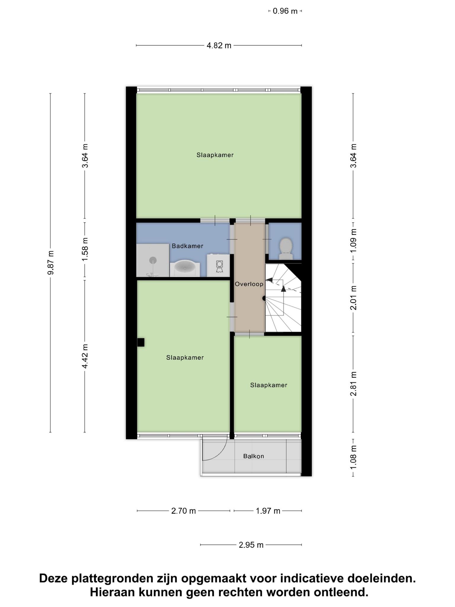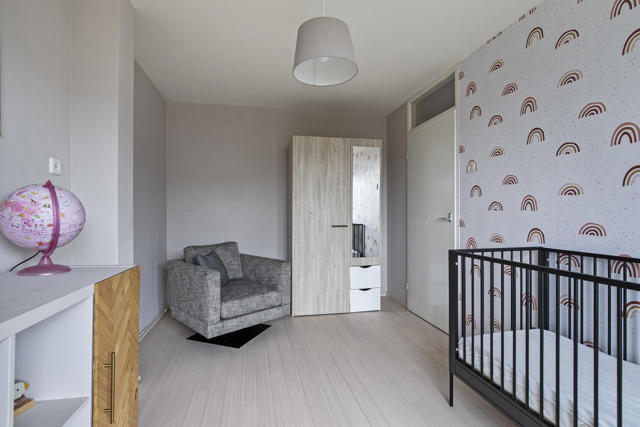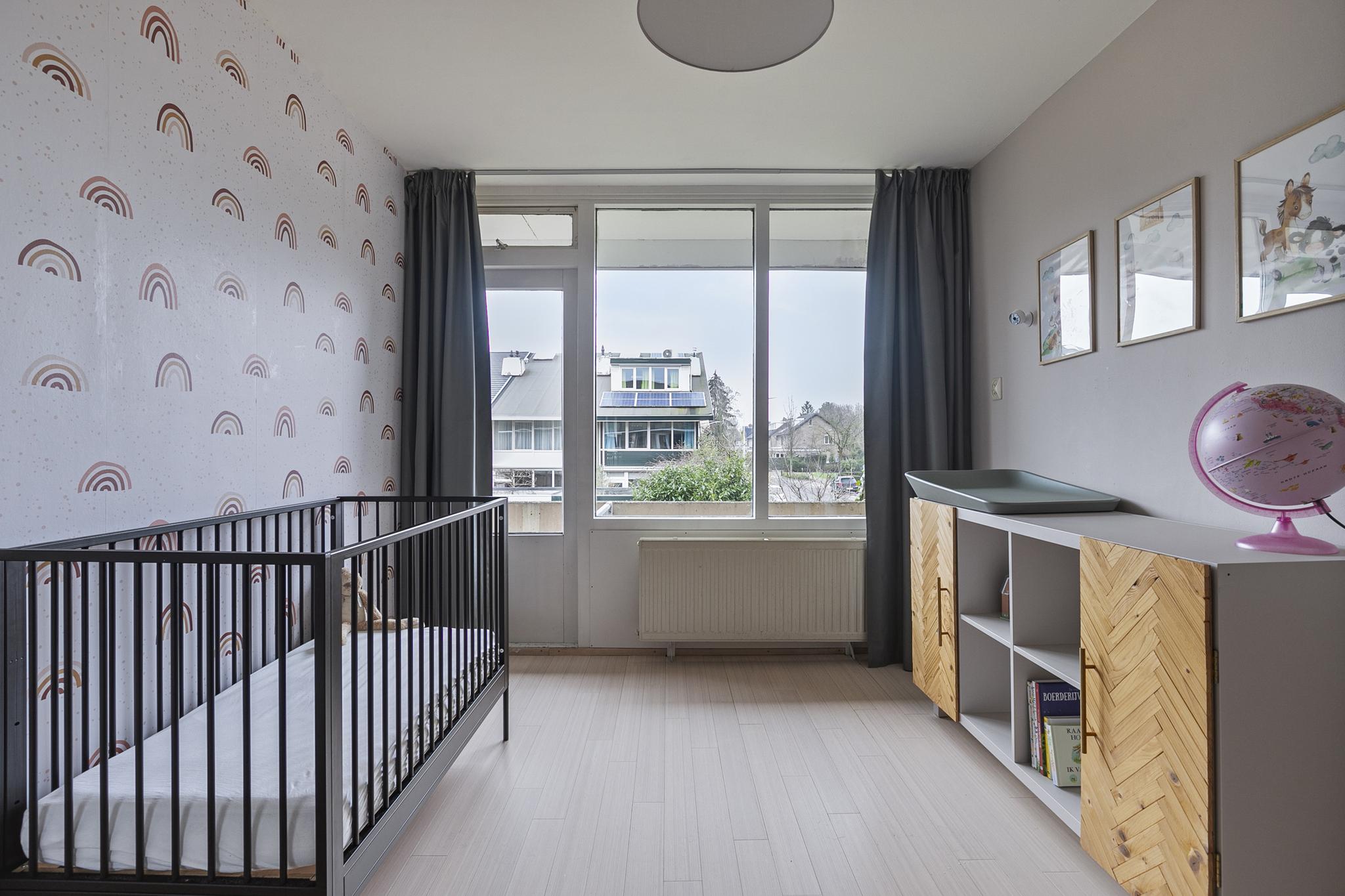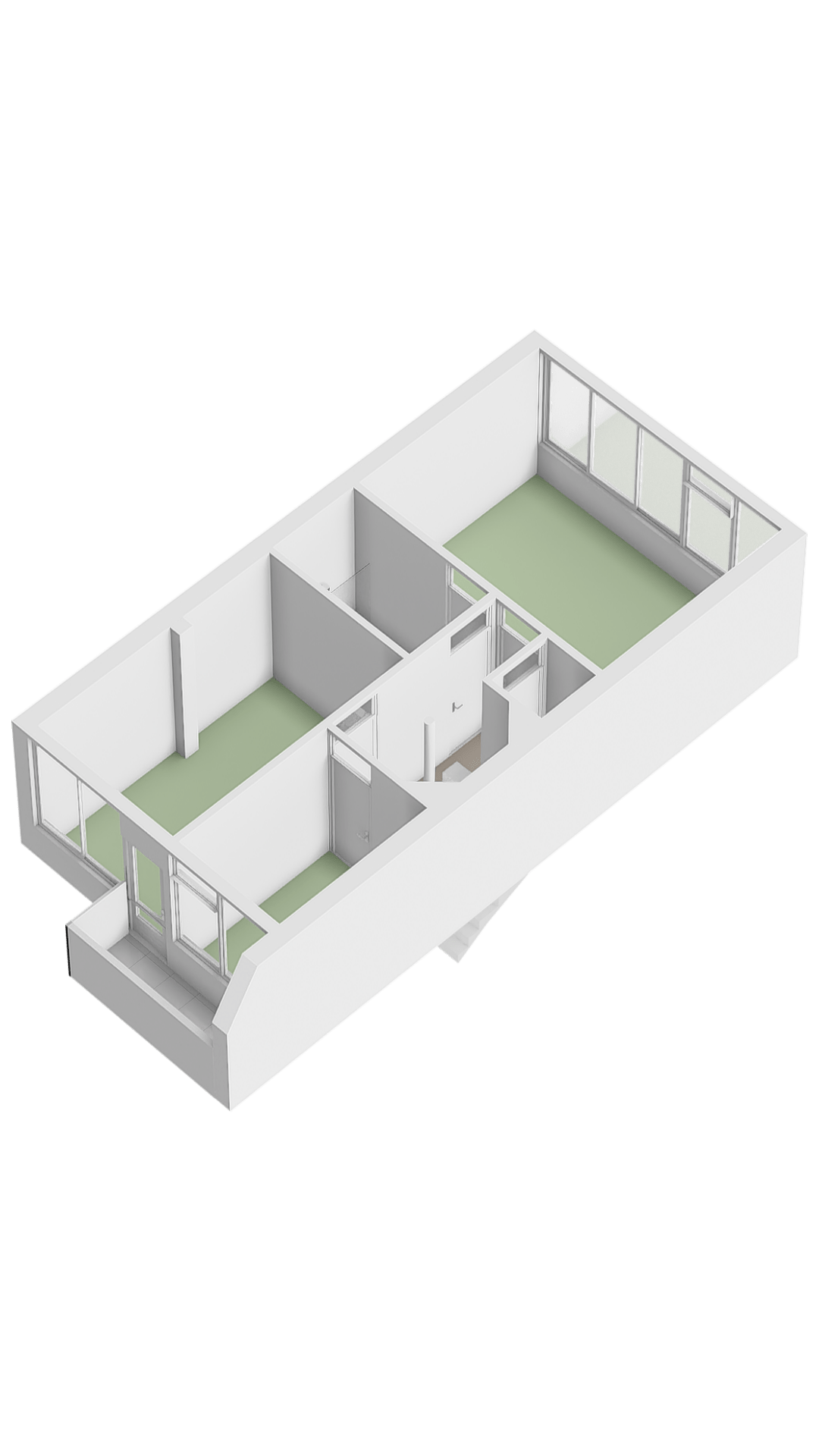 3 slaapkamers: één van ca. 6 m2, één van ca. 12 m2 met balkon en één van ca. 18 m2 die de gehele breedte van de woning beslaat en een eigen toegangsdeur naar de badkamer heeft.