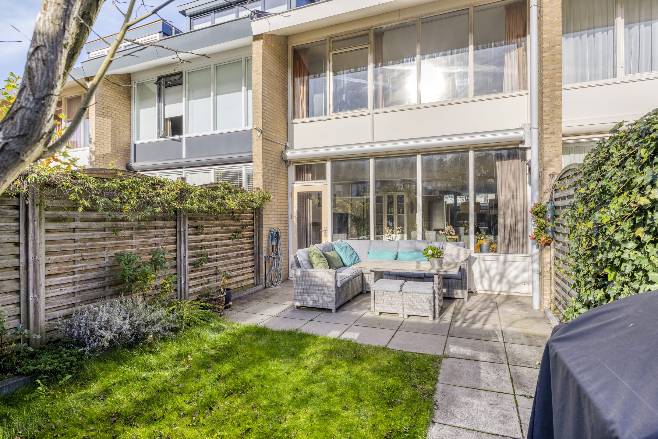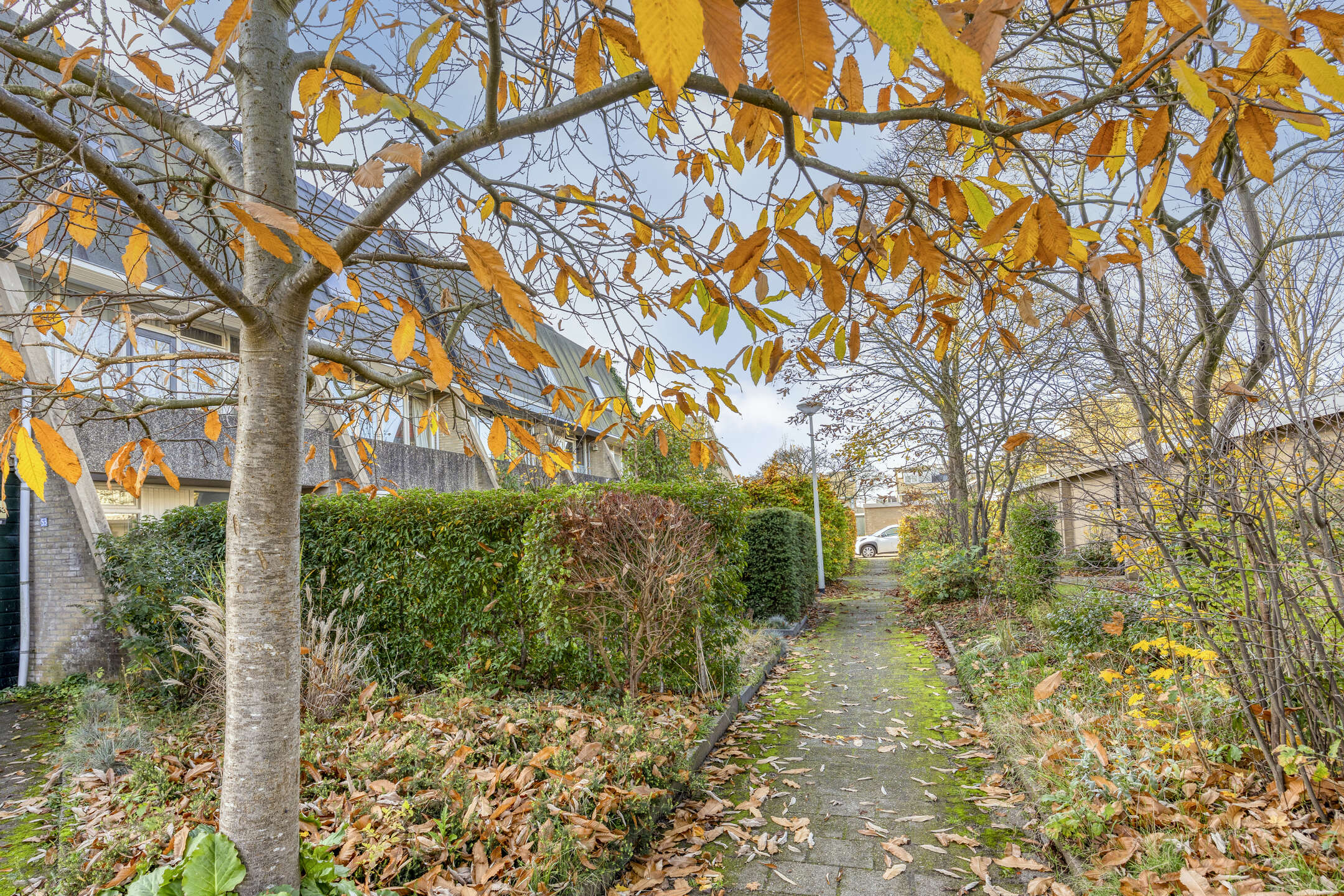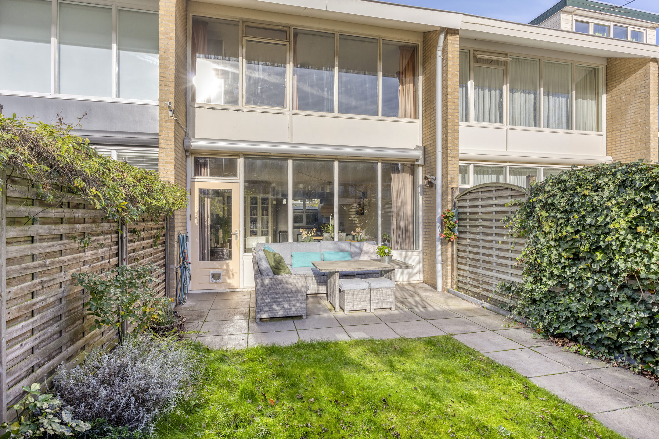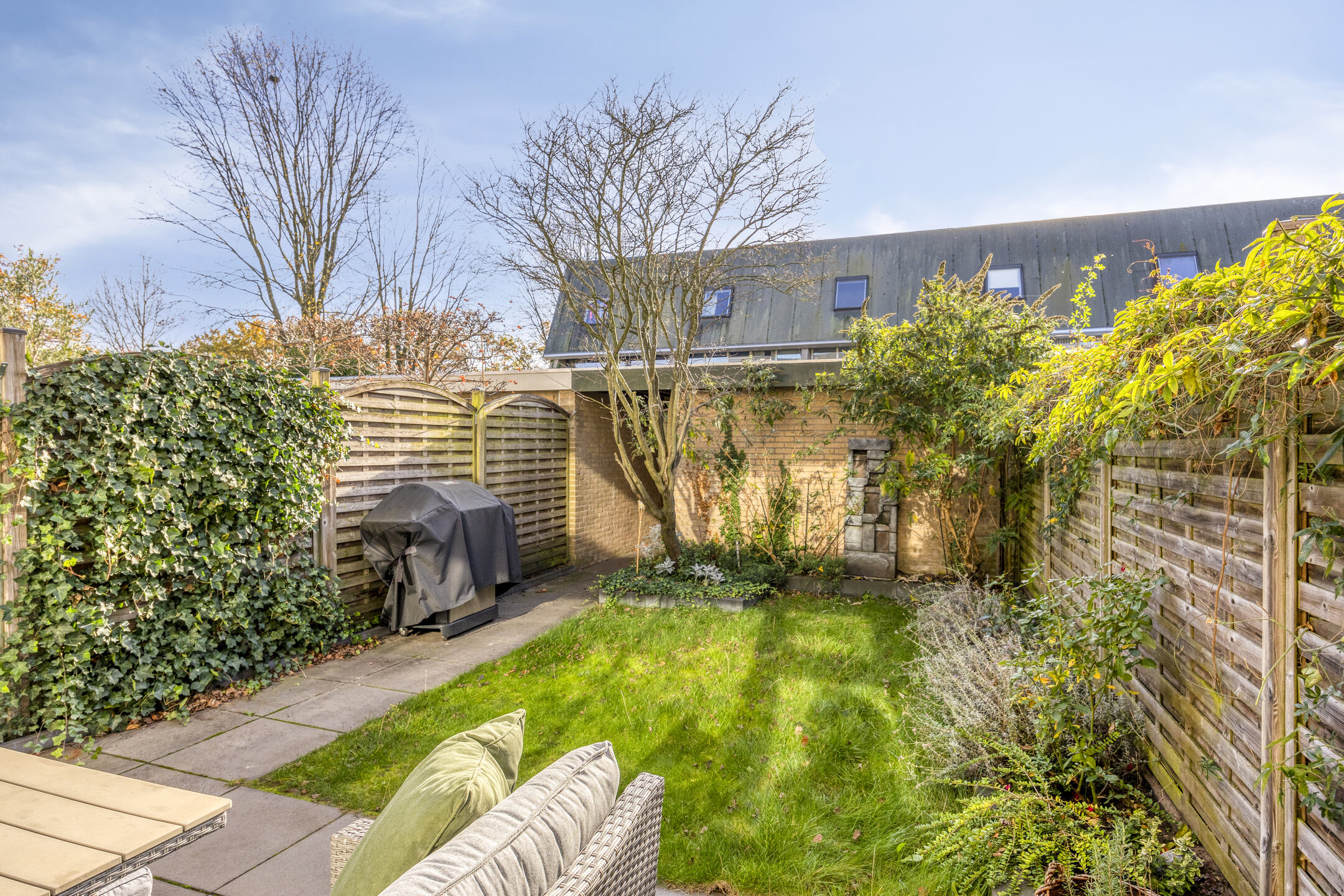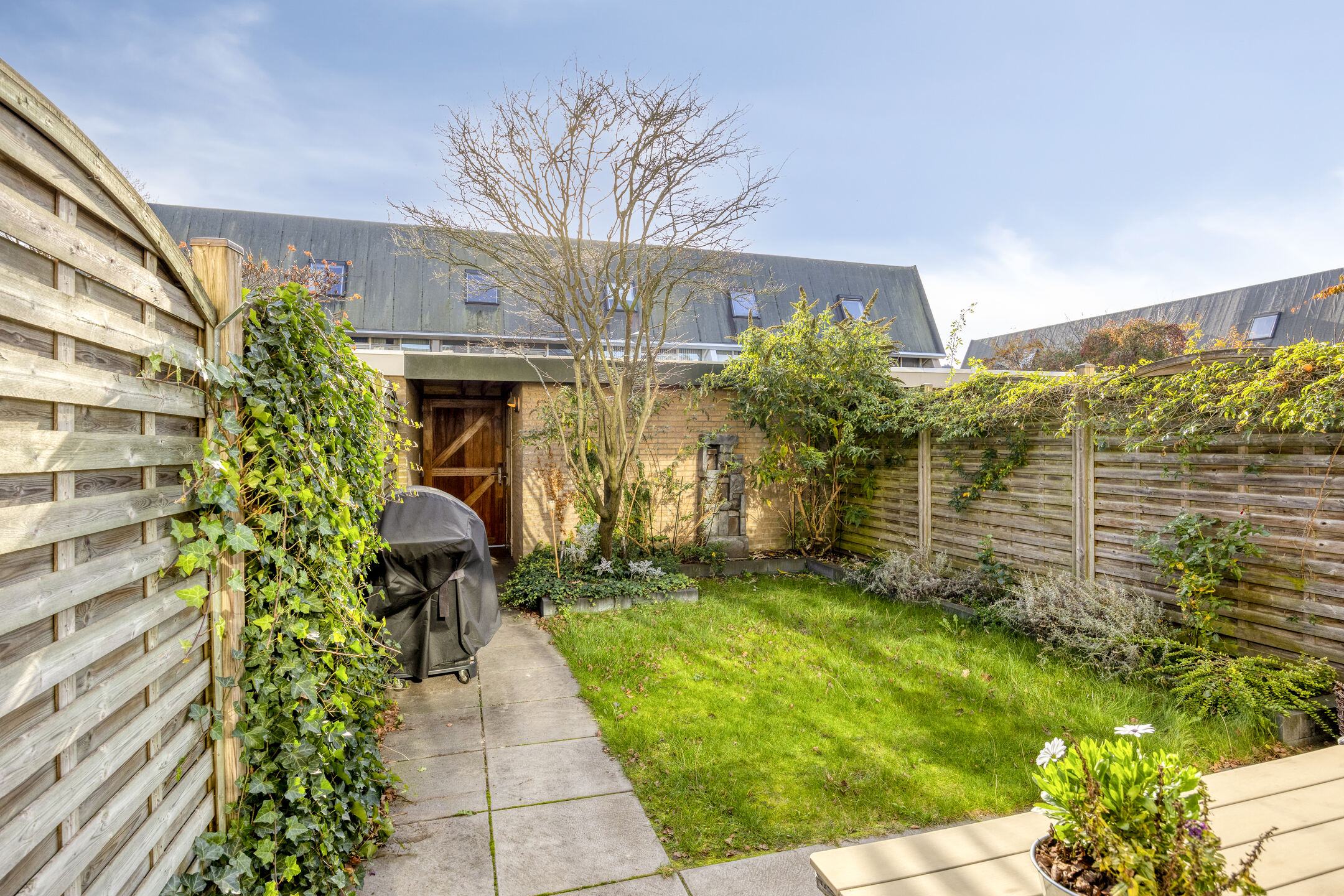 De zonnige achtertuin op het zuiden biedt volop privacy, een fijn terras en een zonnescherm voor warme dagen. De stenen berging met elektra en achterom maken het praktisch compleet. Aan de voorzijde geniet je van een weelderige, gemeenschappelijke voortuin die aan de woningen is toegekend, met een groene haag en een beschut extra zitje – een tweede tuin waar kinderen veilig kunnen spelen of waar je zelf heerlijk kunt ontspannen.