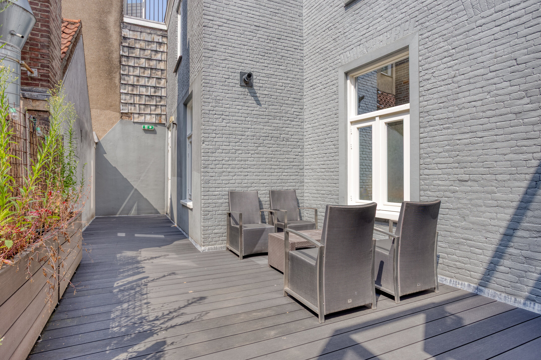 Op deze verdieping is een riant dakterras dat onlangs voorzien is van nieuwe vlonders. Het is een ideale plek waar de bewoners elkaar ontmoeten of juist even op zichzelf van de zon kunnen genieten!