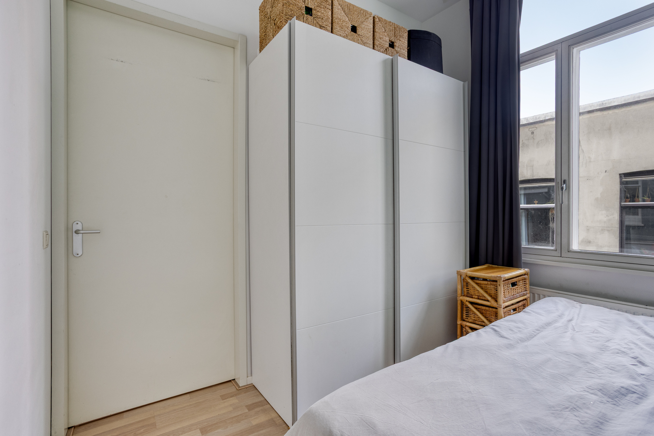 In de slaapkamer is een losse kast geplaatst die perfect past en daarom ook achter zal blijven. In de vaste kast zitten de c.v.-ketel (Remeha 2009) en wasmachine-aansluiting.