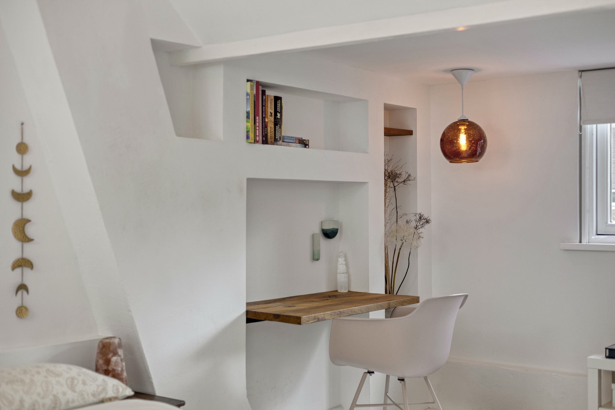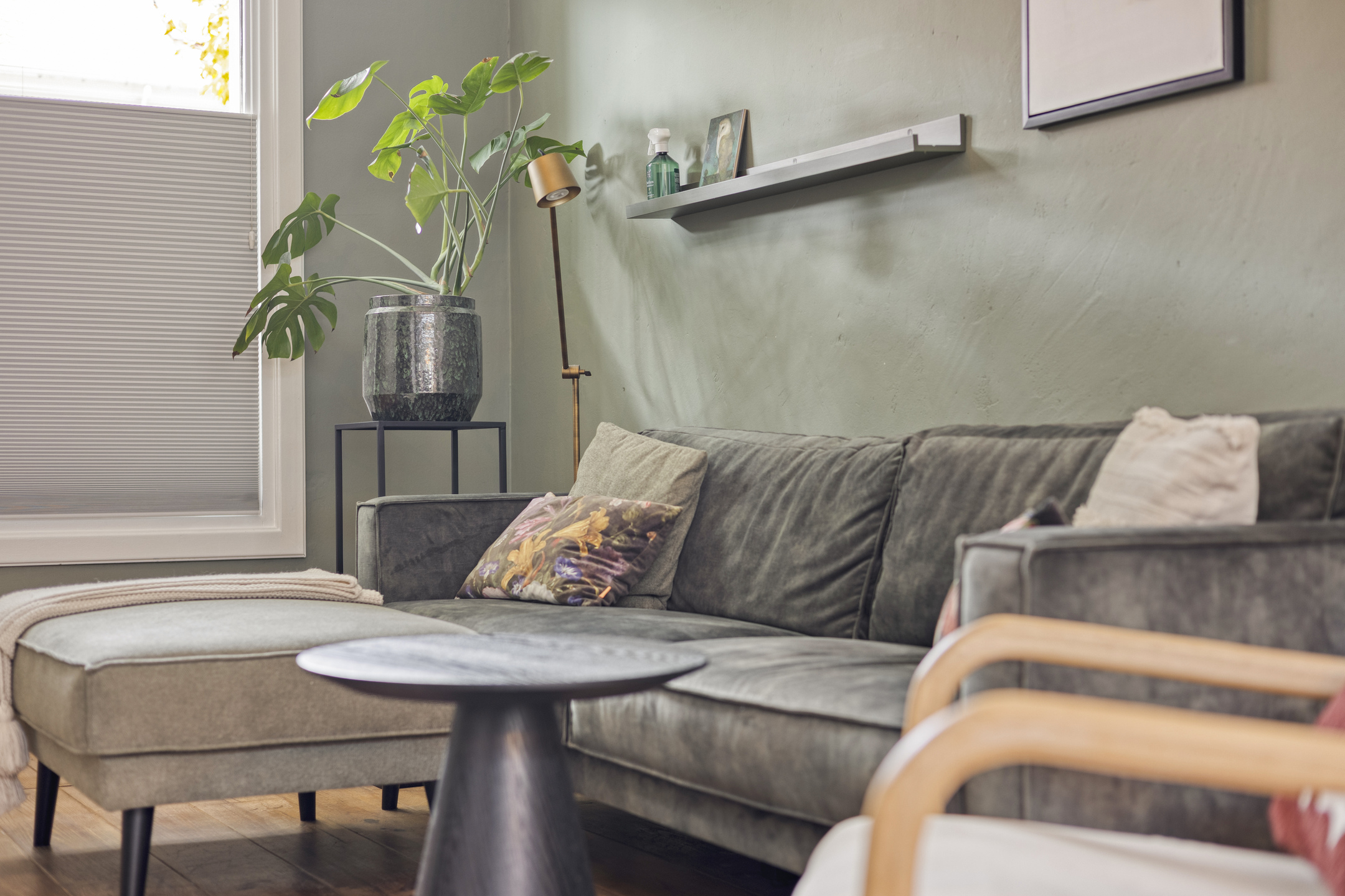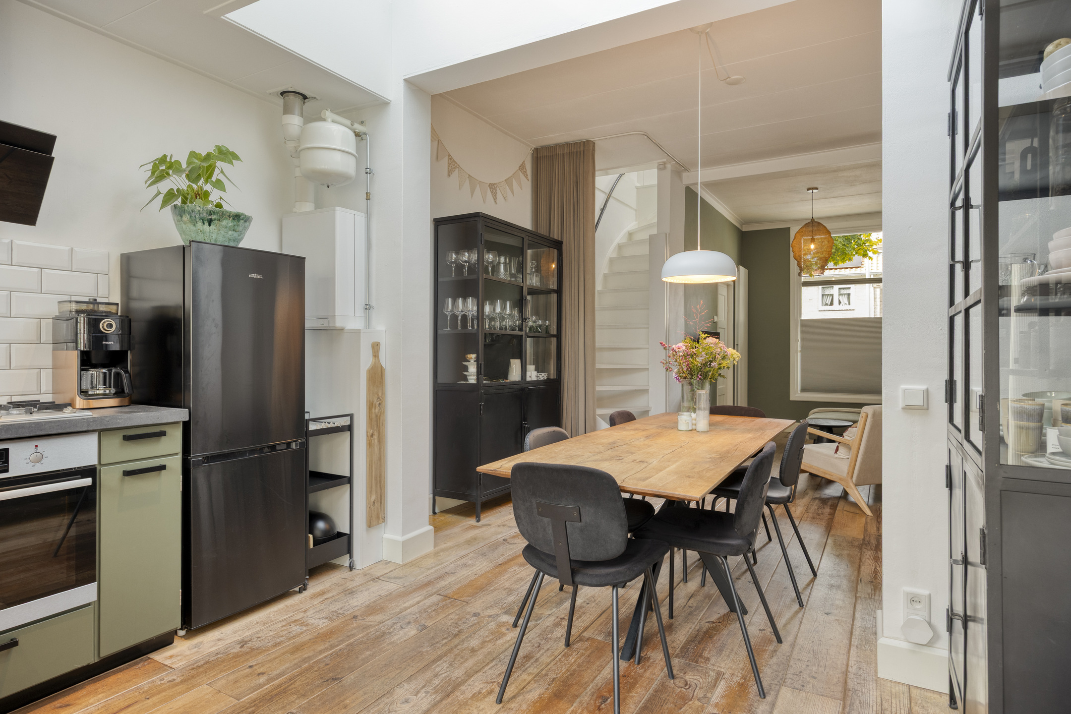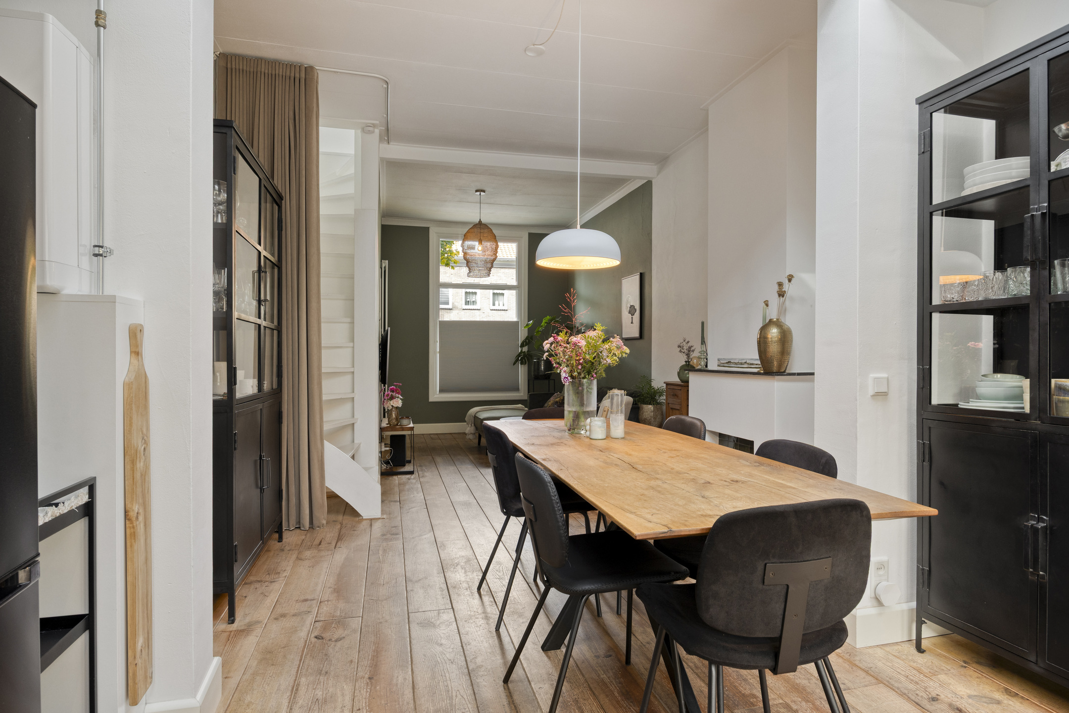 De sfeervolle woonkamer heeft een mooie lichtinval door het originele raam met dubbel glas, een fraaie houten vloer en de authentieke schouw (thans niet meer in gebruik). Wat meteen opvalt is de ruimte die de kamer biedt aan onder andere een bank, tafel en meerdere kasten.