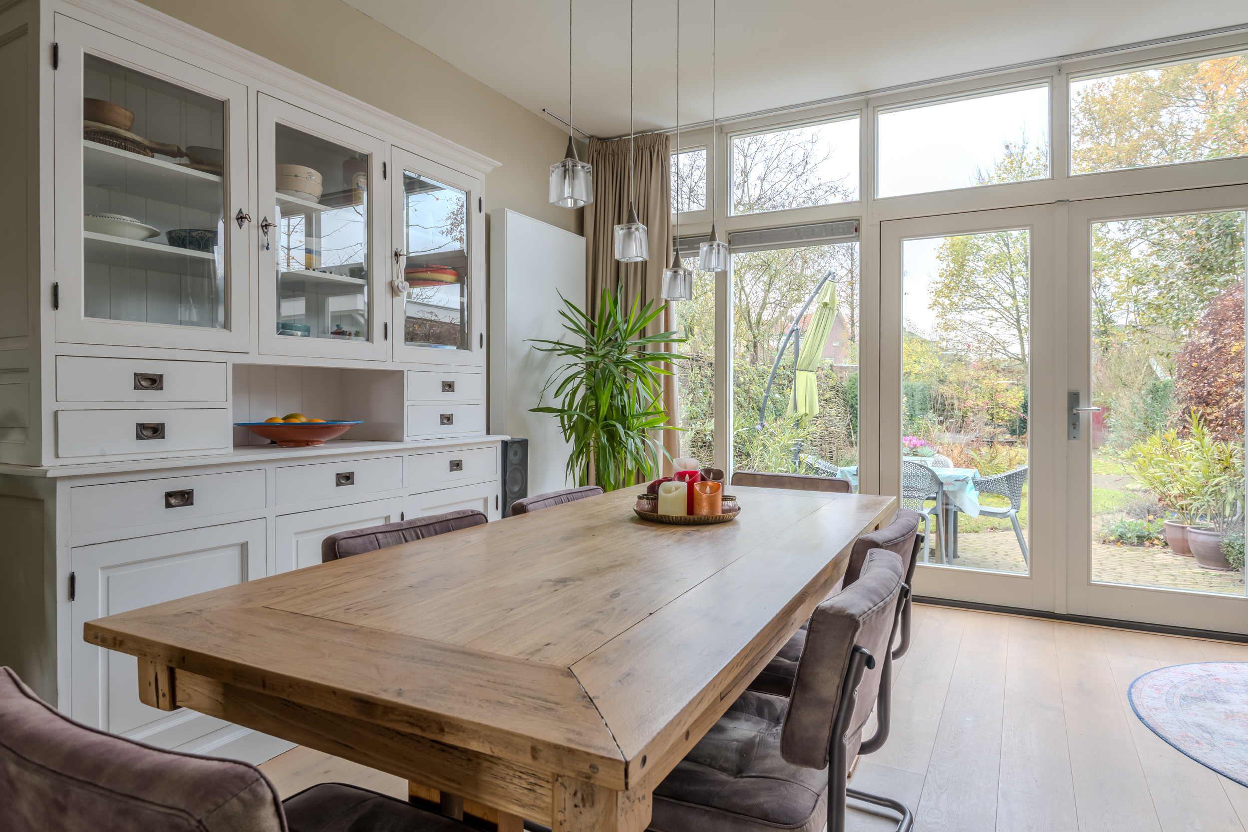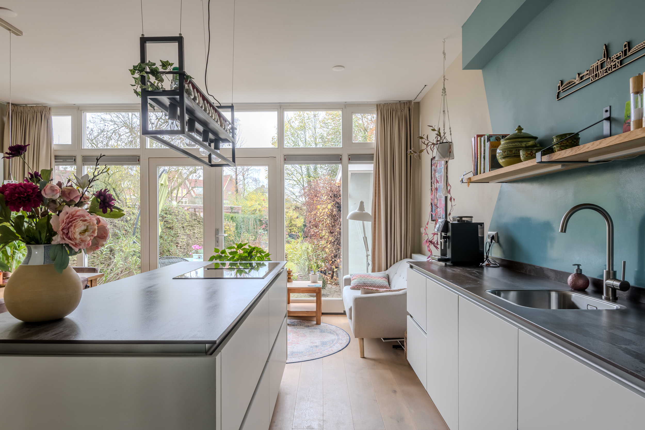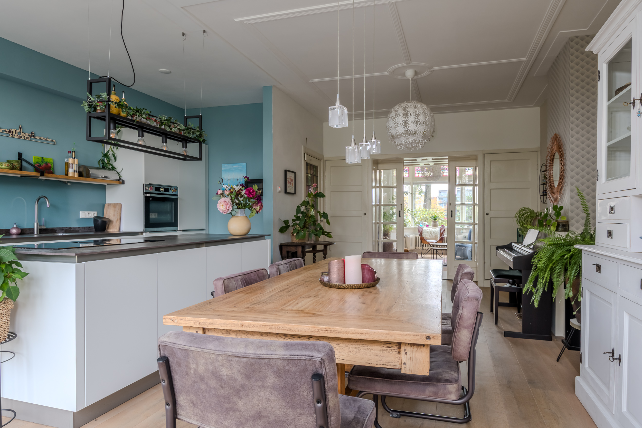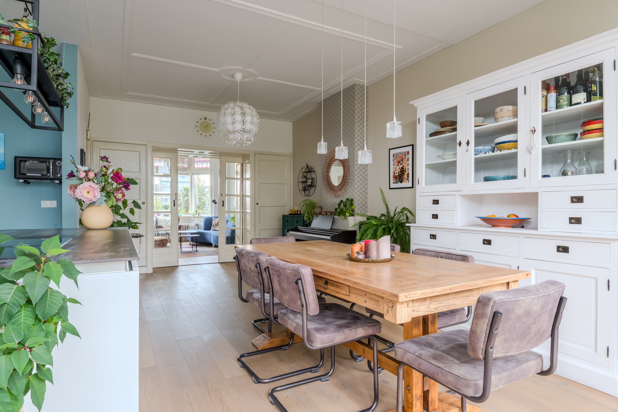 In 2023 is de woning aan de achterzijde uitgebouwd en voorzien van een hoogwaardige leefkeuken met kookeiland en moderne inbouwapparatuur—een perfecte plek om te koken, tafelen of thuis te werken. Via de openslaande deuren staat de ruime eetkamer in directe verbinding met de diepe achtertuin.