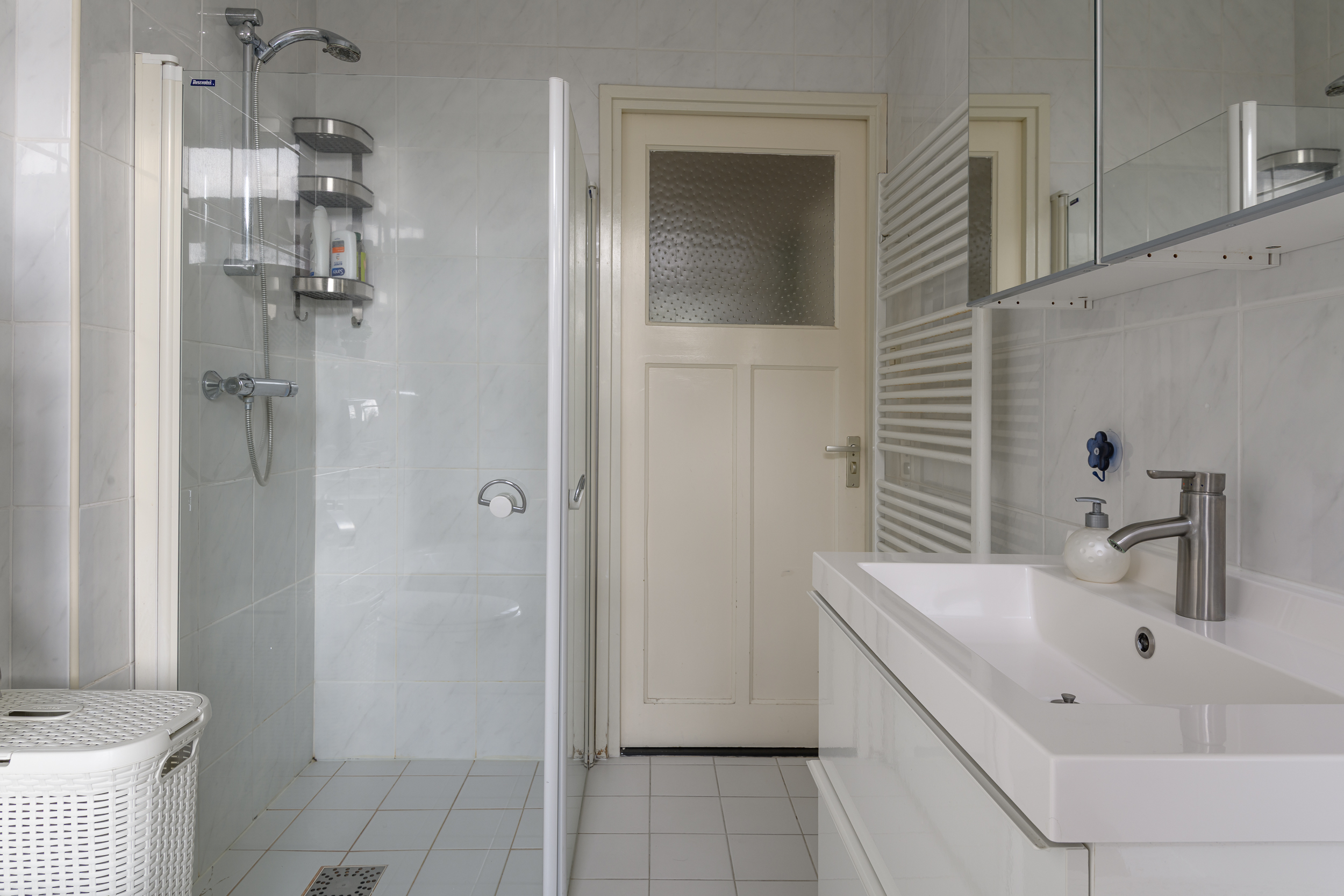 De badkamer is netjes en functioneel en voorzien van een bad, wastafelmeubel (2020), hangend toilet en een douche met glazen deur. Daarnaast is er vloerverwarming en mechanische ventilatie.