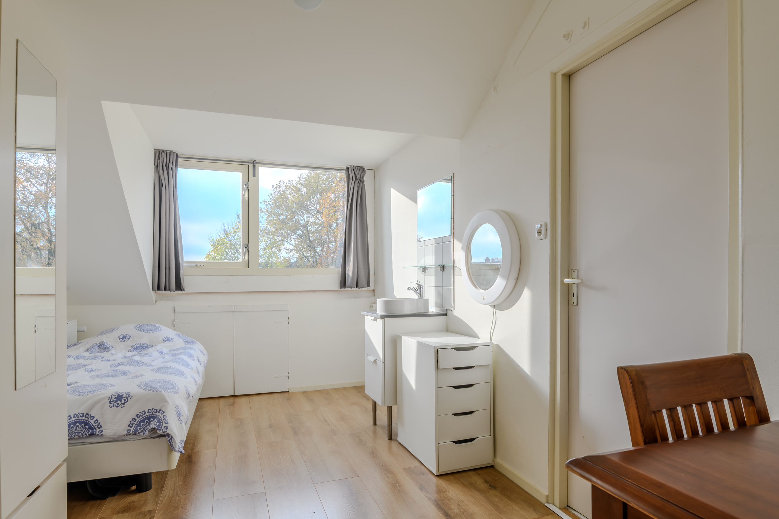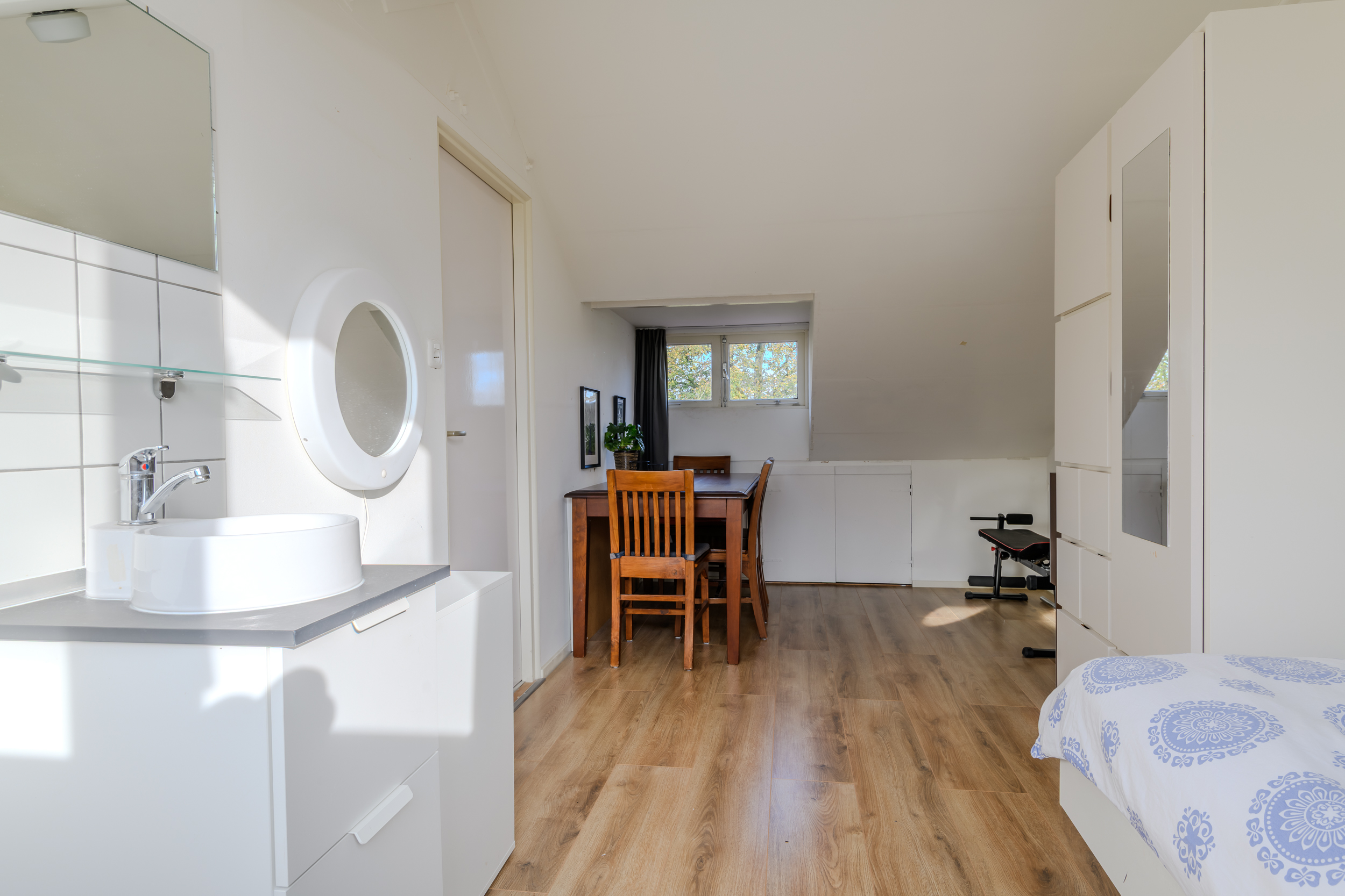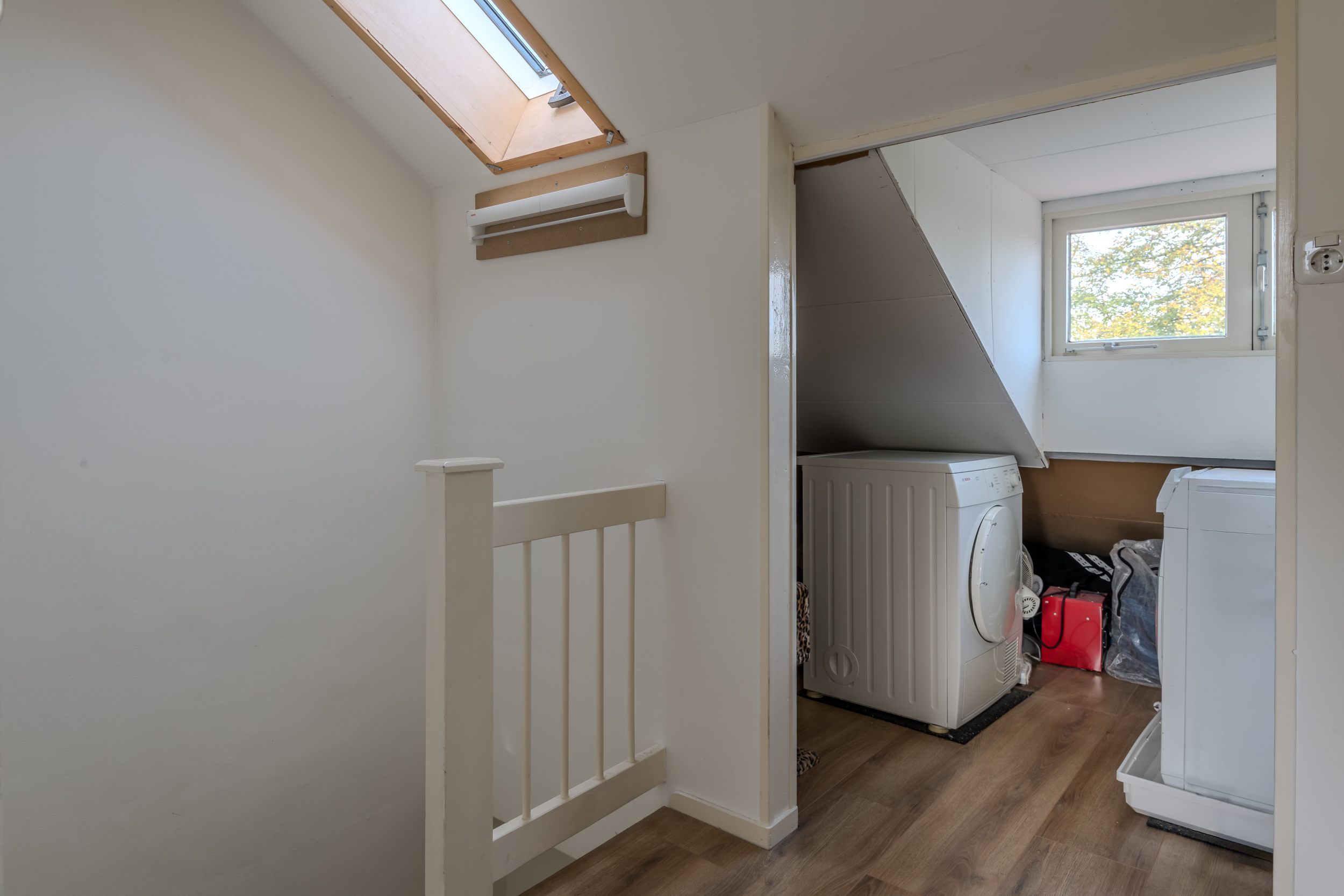 Met een vaste trap bereik je de zolderverdieping. Hier vind je een voorzolder met overloop, wasruimte en cv-opstelling (Remeha 2020). Daarnaast zijn er twee slaapkamers, beide voorzien van een of meerdere dakkapellen. Eén slaapkamer heeft een vaste wastafel en beide bieden bergruimte achter de schotten. Een ideale verdieping voor logees, een thuiskantoor of een luxe hobby- of fitnessruimte.