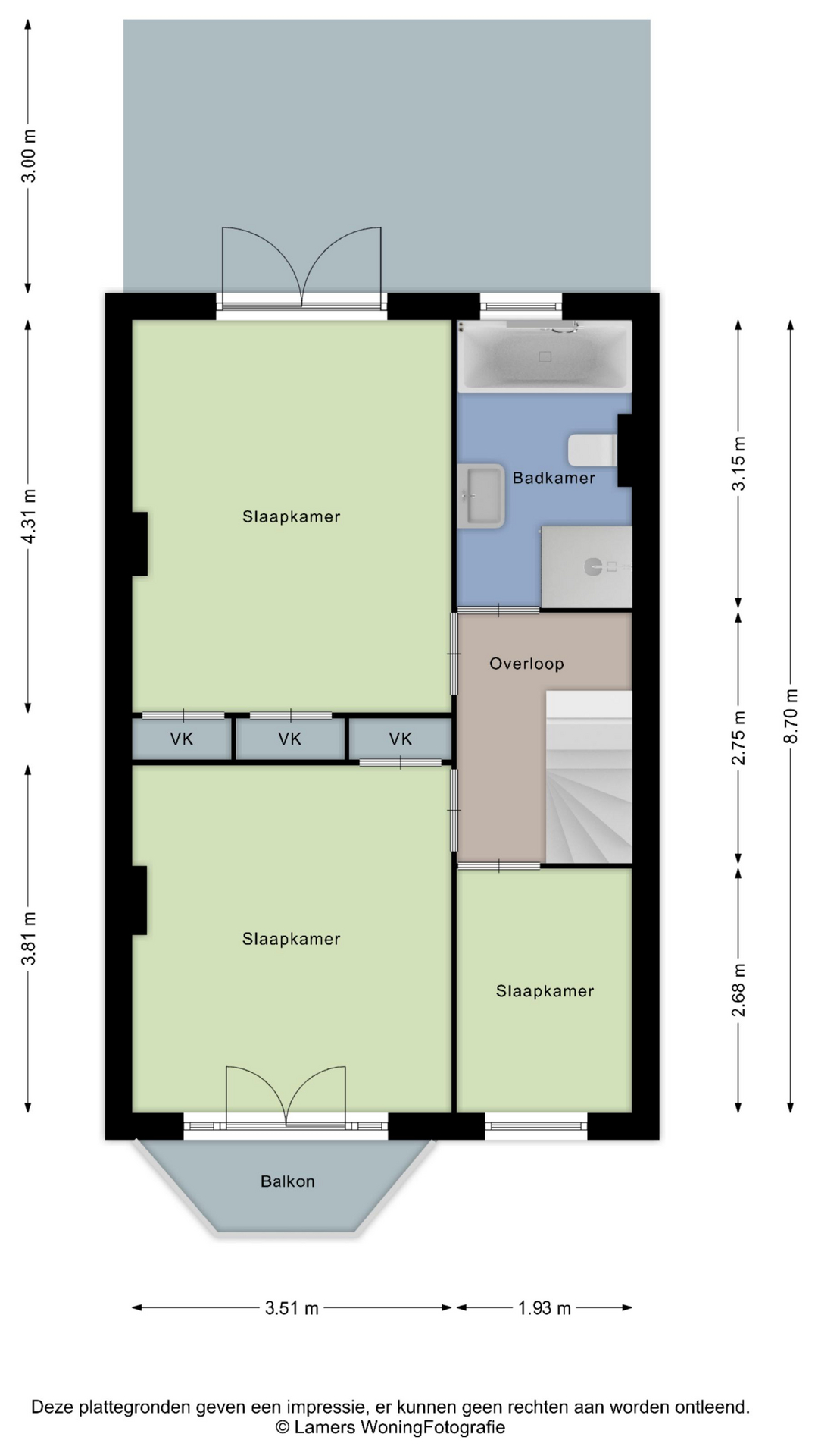 - Oppervlakte gebouwgebonden ca. 3 m2
