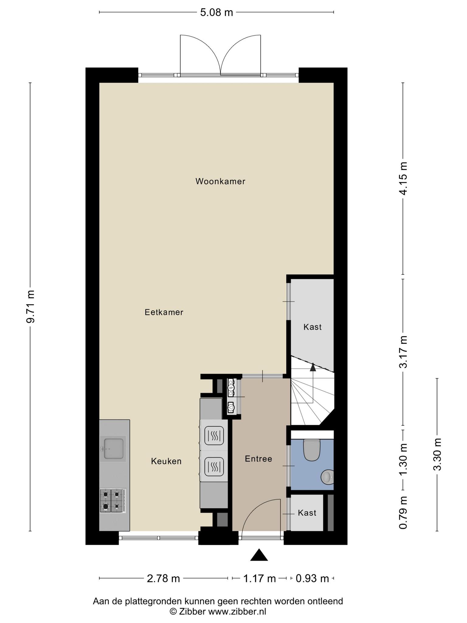 Begane grond: entree met hal, meterkast, (garderobe-)kast en toilet.
