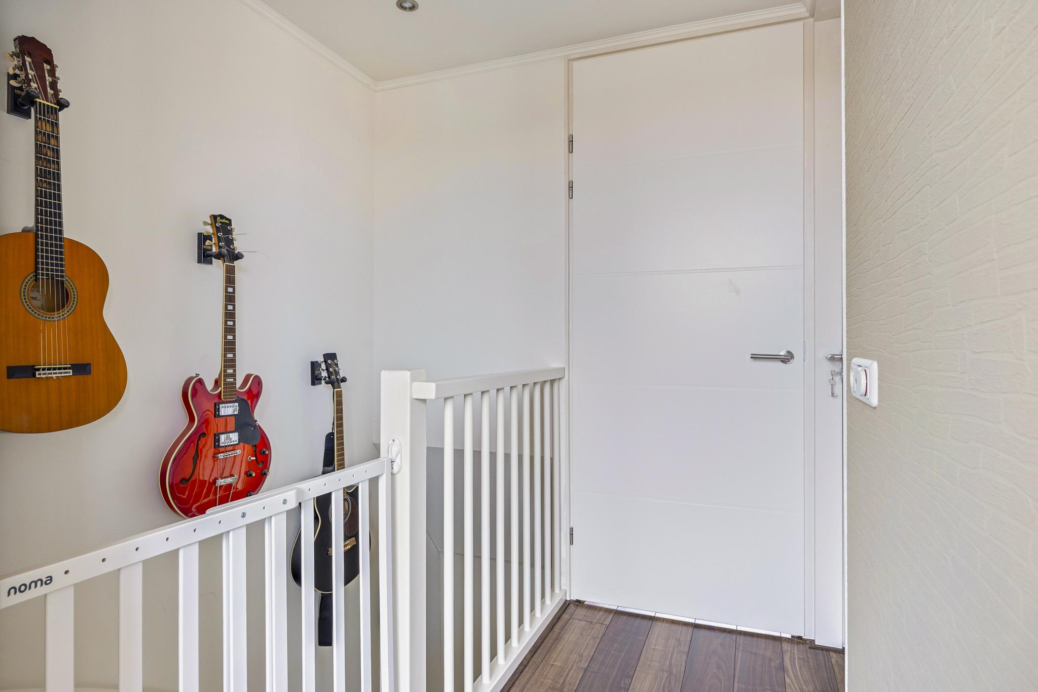1e verdieping: overloop. Ook hier zijn diverse muren verzet en is van twee slaapkamers een ruime ouderslaapkamer met walk in closet met glazen deur gemaakt.