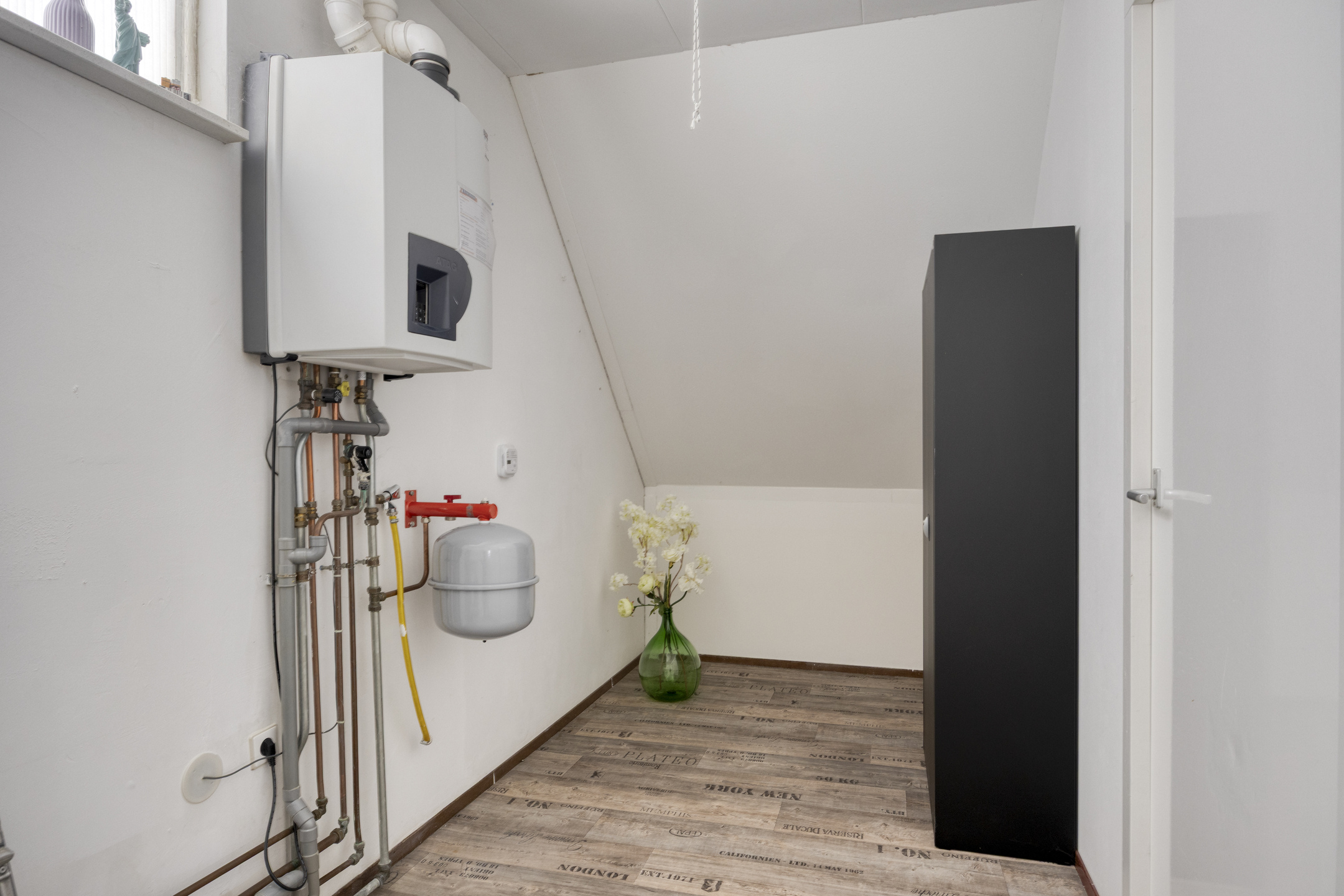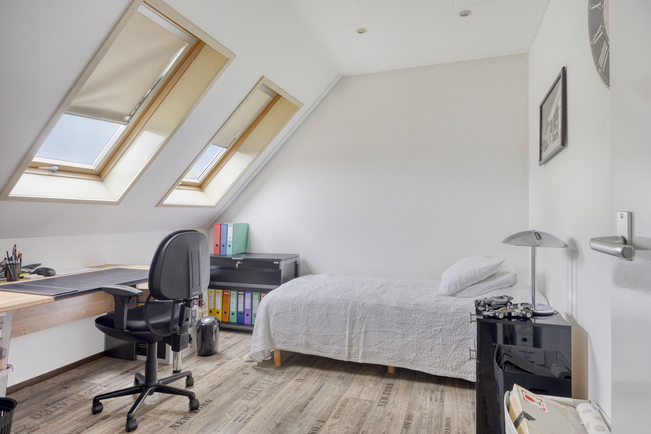 Op de tweede verdieping zijn twee volwaardige slaapkamers gecreëerd. Ook is hier de wasmachineopstelling geplaatst. Boven deze verdieping is nog een vliering aanwezig voor extra bergruimte.