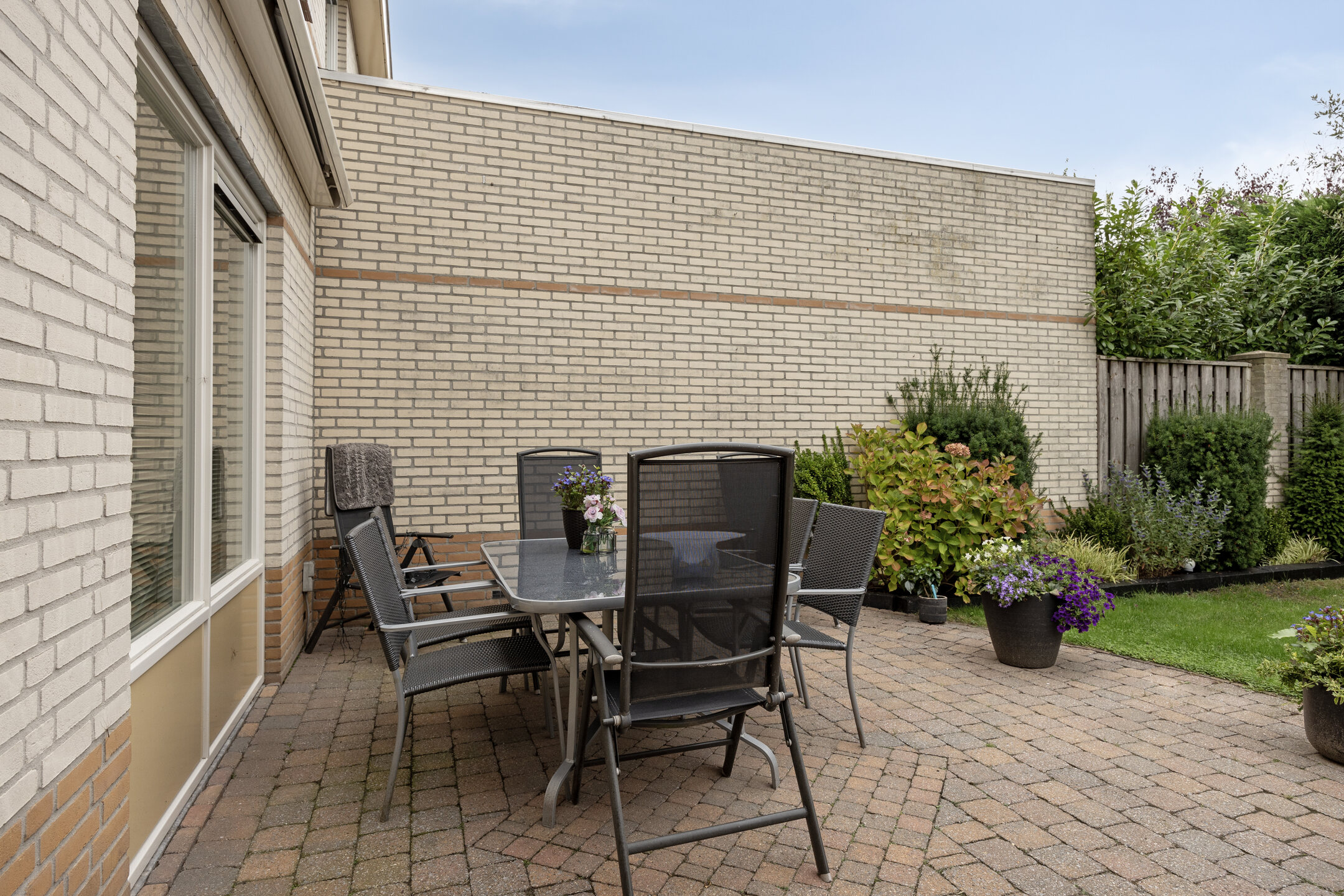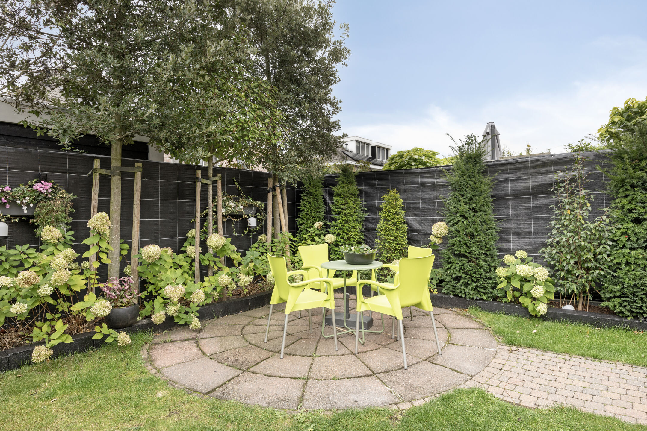 De achtertuin is breed, beschut en gelegen op het oosten. Dankzij de gunstige ligging geniet u tot in de avond van de zon.