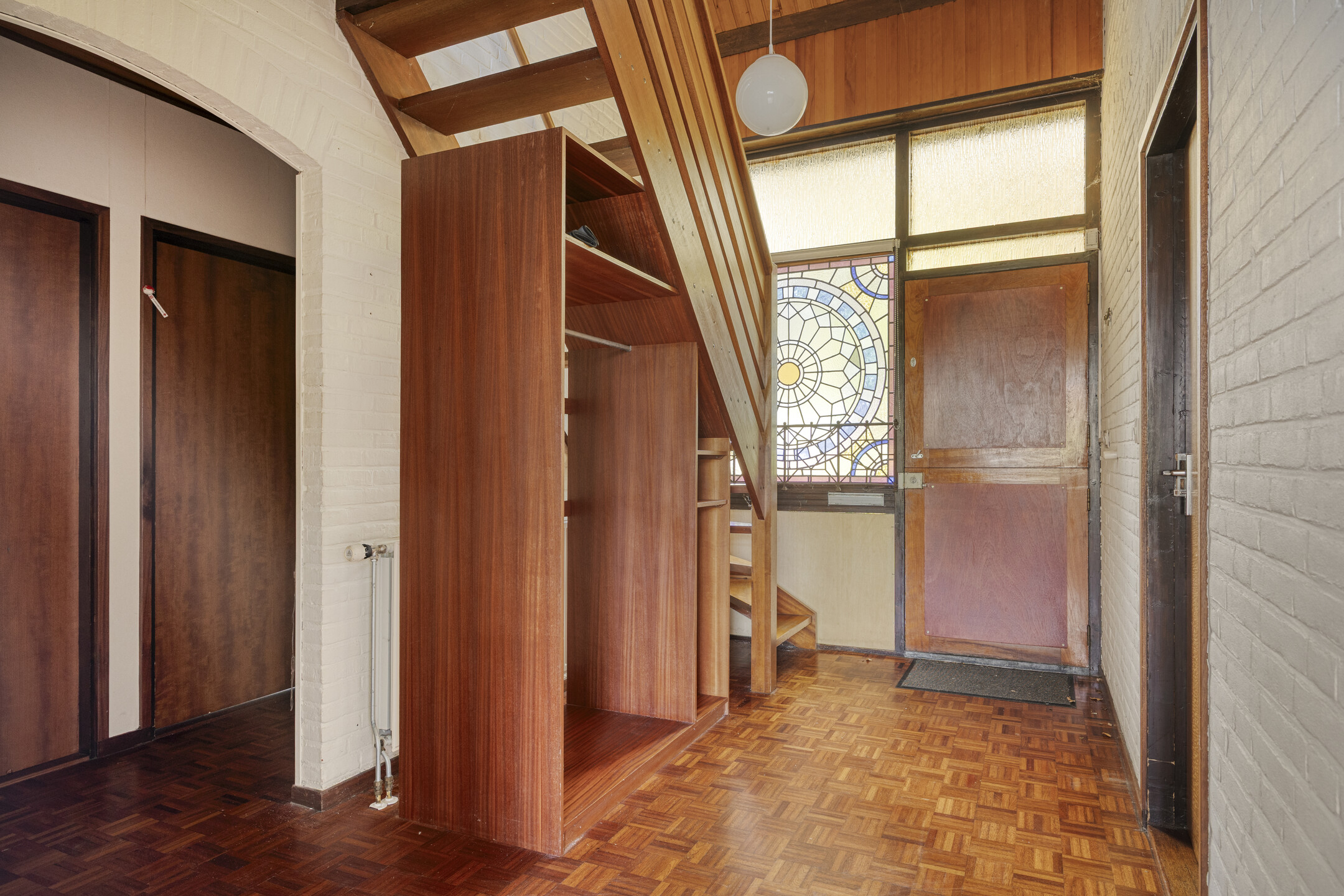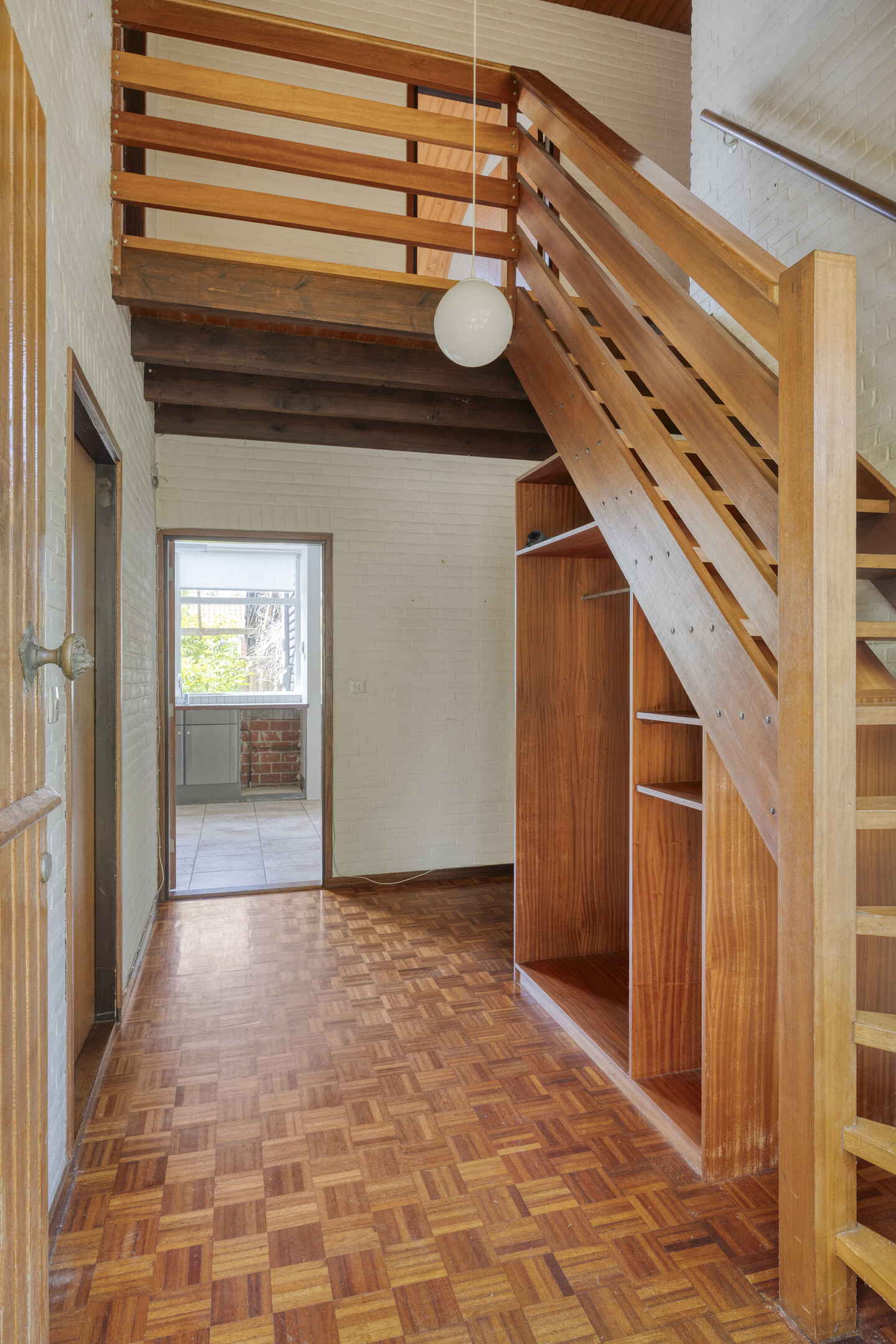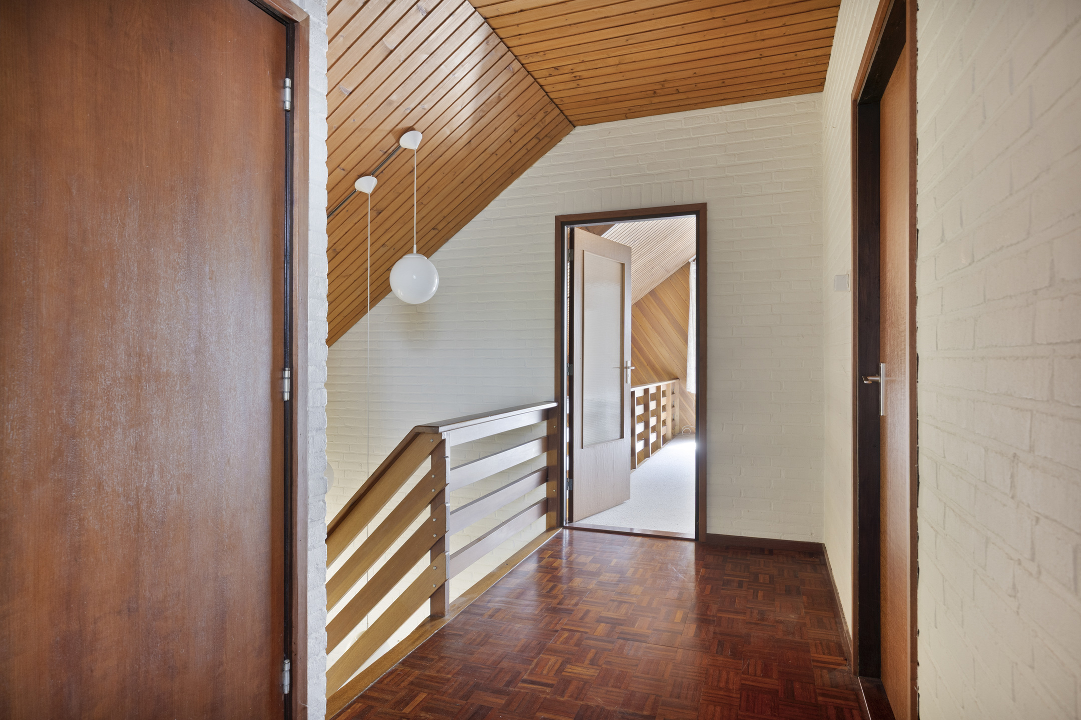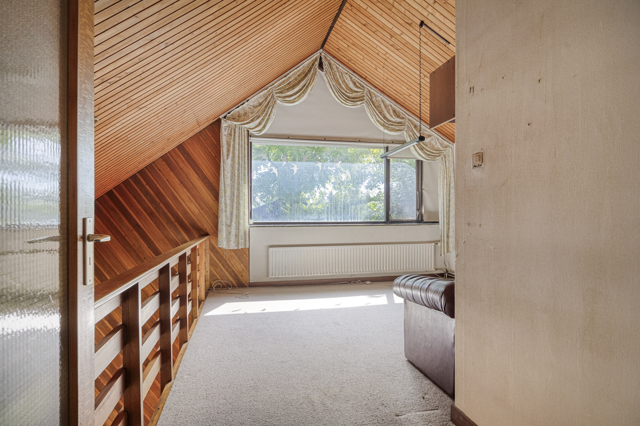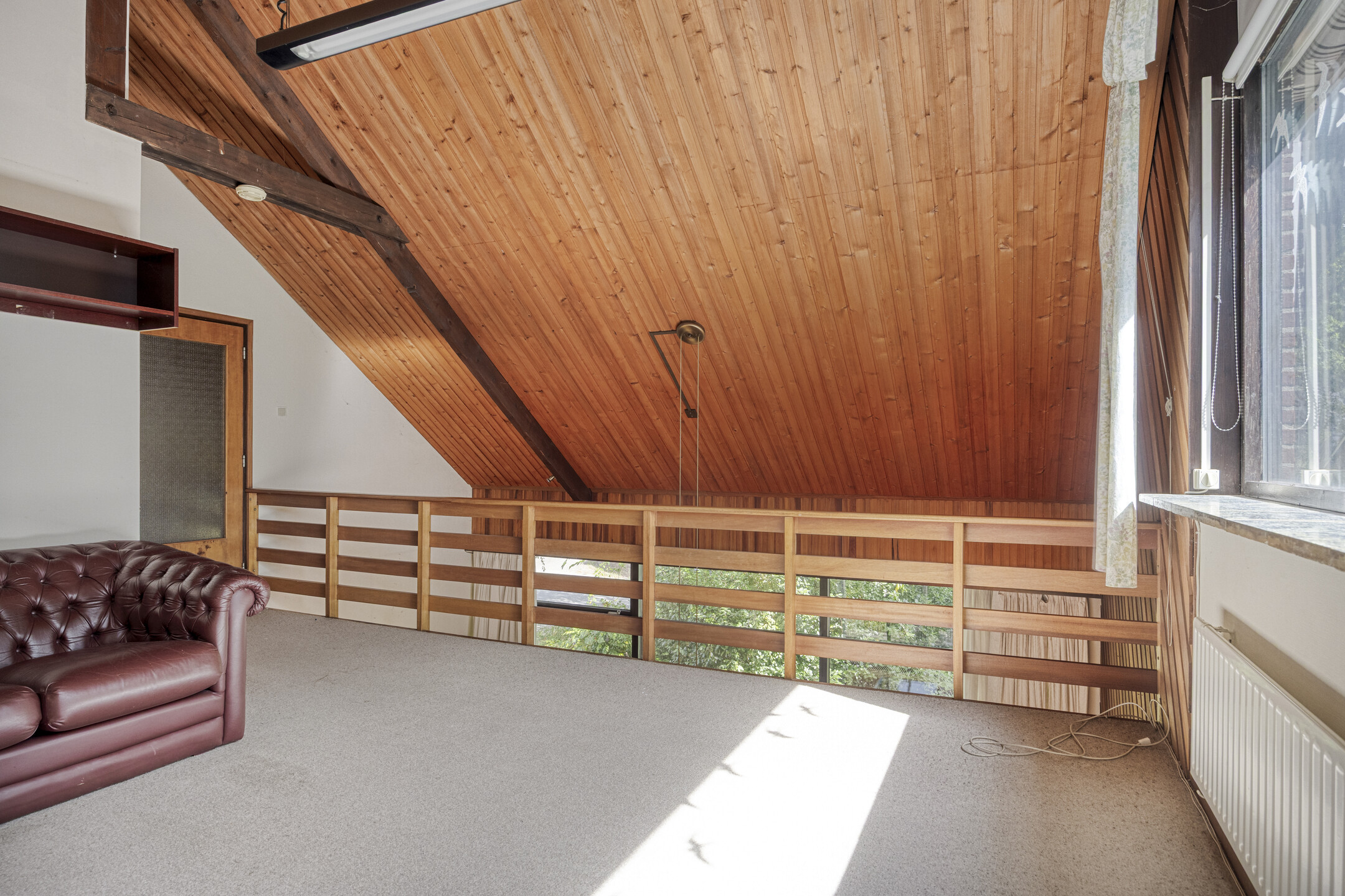 Op de verdieping leidt de overloop naar een speelse kamer met vide, twee slaapkamers, een separaat toilet en een tweede, eenvoudige badkamer met douche en wastafel. Tot slot is er achter de veel bergruimte en een kast met de HR-ketel.