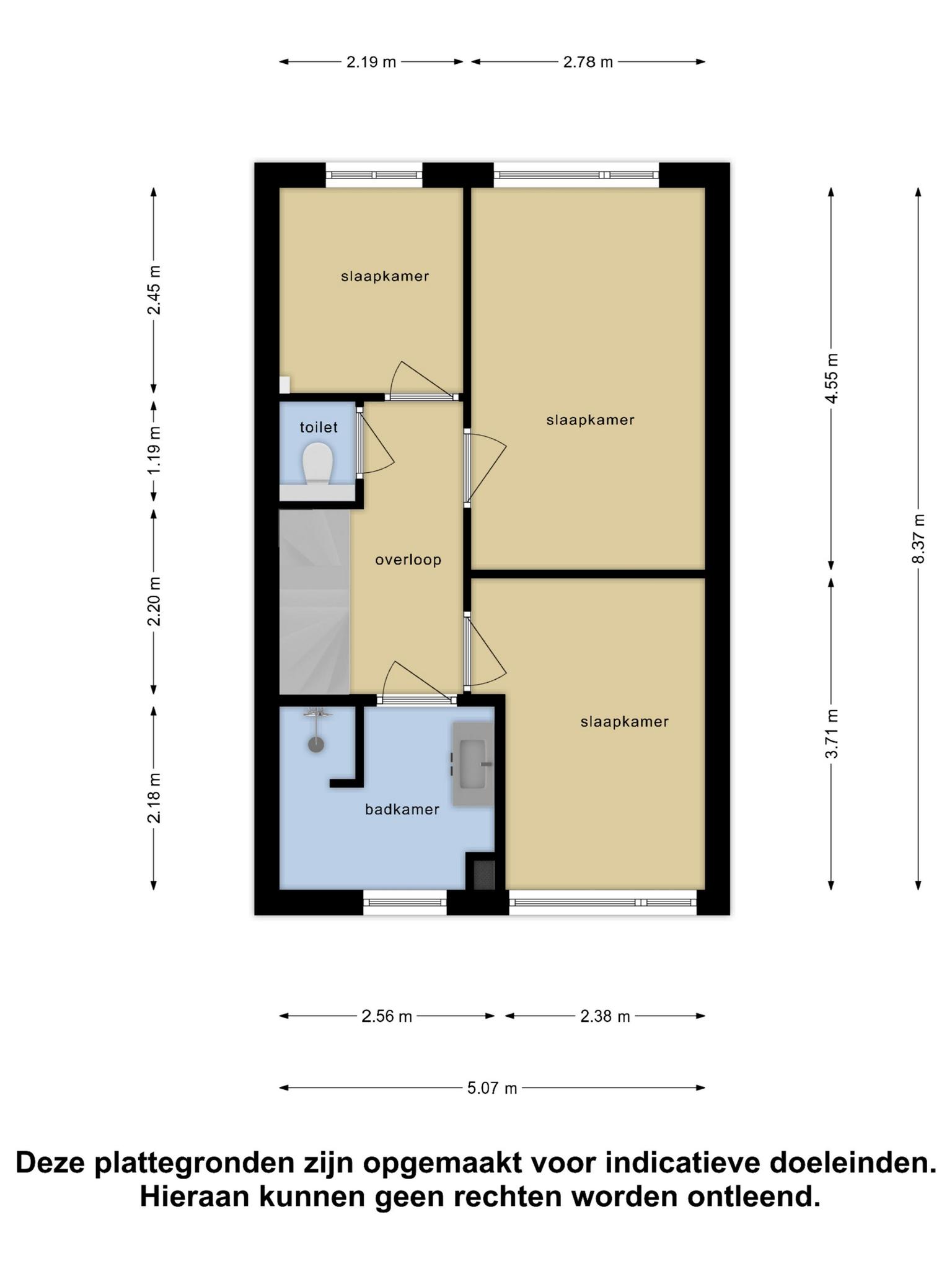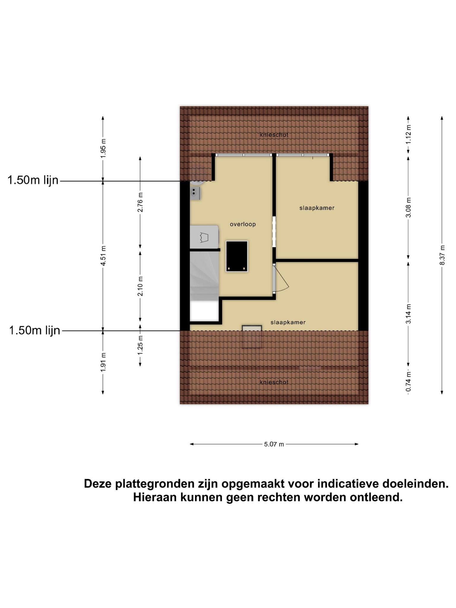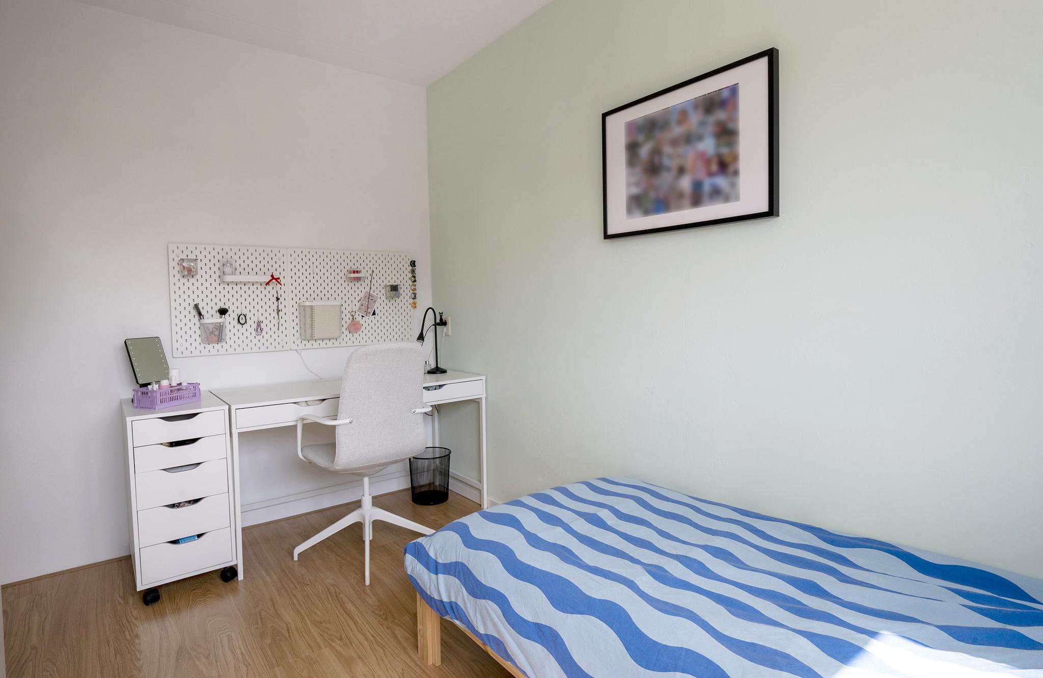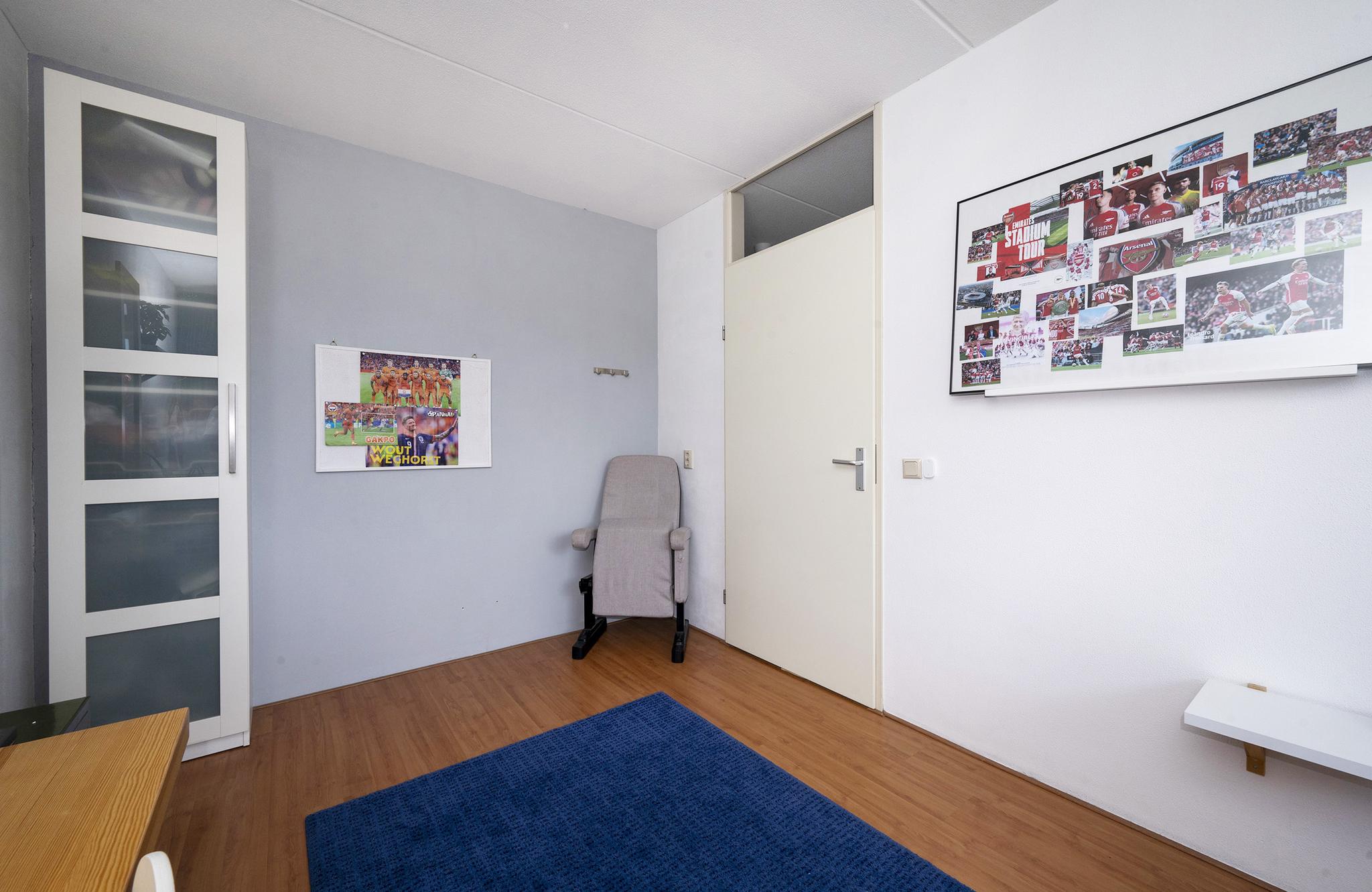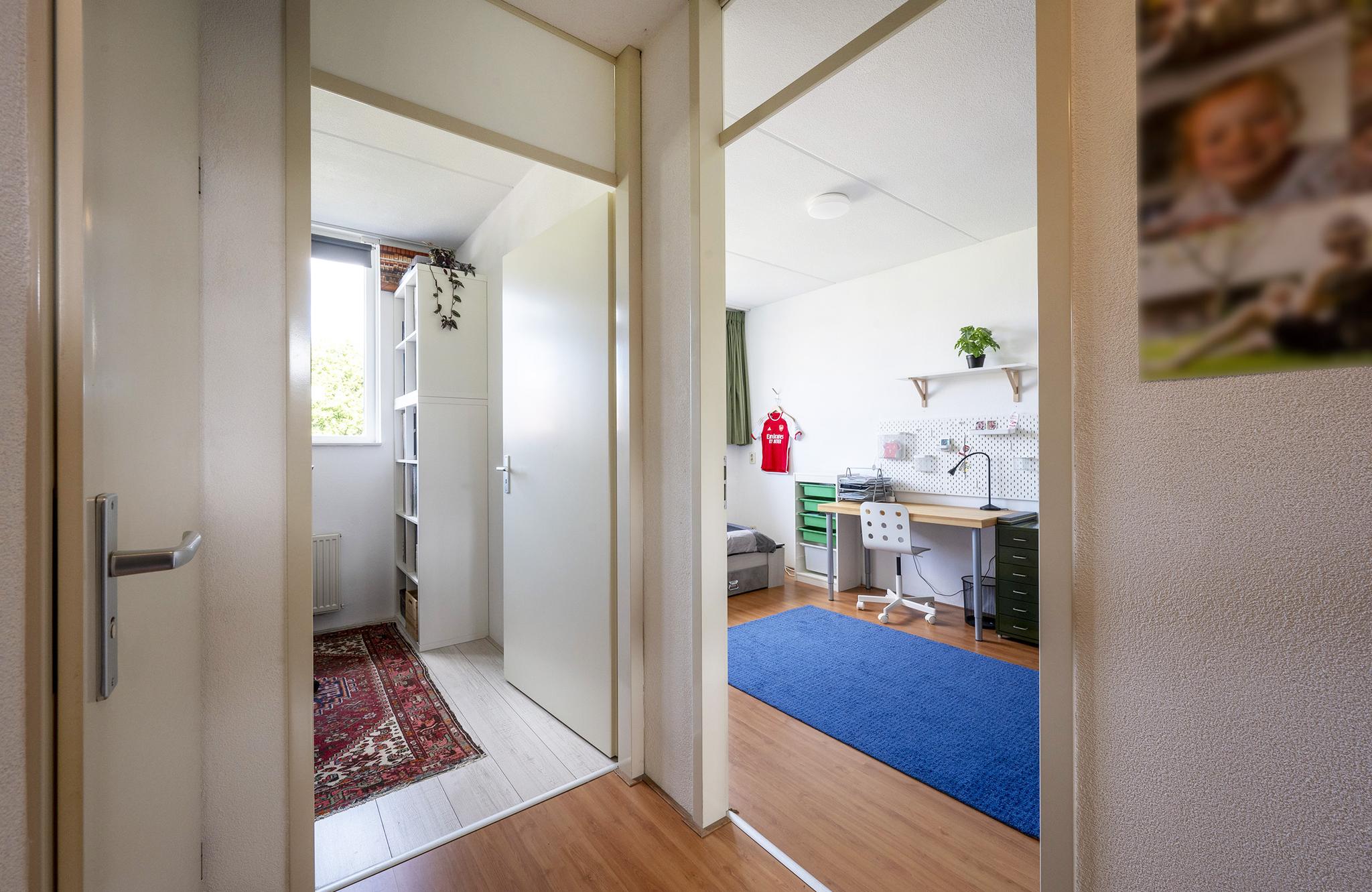 Aan de tuinkant is een fijne kamer met een dakkapel die over de hele breedte van de woning loopt. Aan de voorzijde is een L-vormige slaapkamer met een dakraam en toegang naar de vliering middels een vlizotrap.