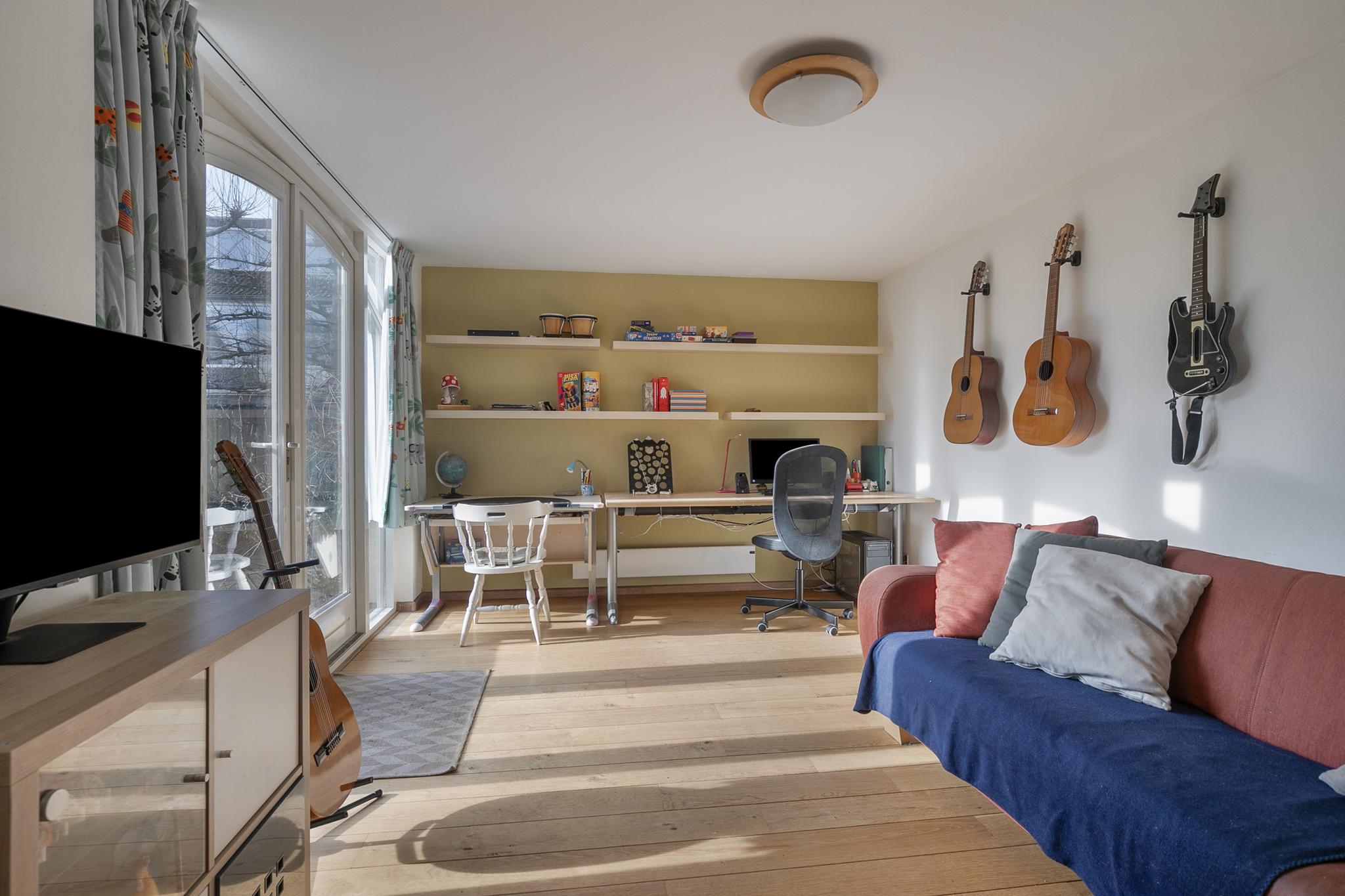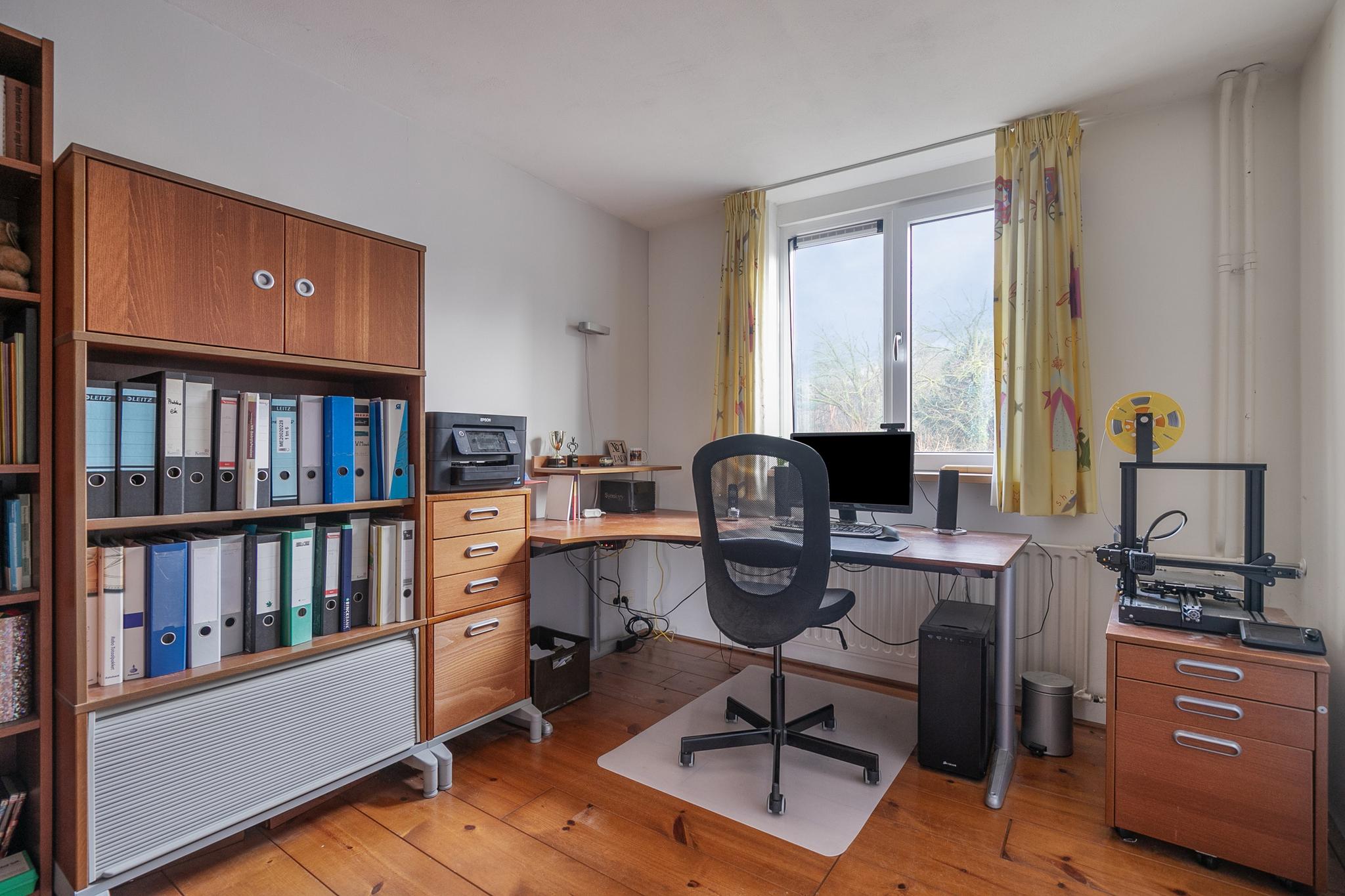 Op een fantastische locatie direct tegenover het bos gelegen royaal uitgebouwde twee-onder-kapwoning met een zonnige achtertuin op het westen. Met een woonoppervlak van maar liefst 164 m2, 5 slaapkamers én een extra kamer op de begane grond is dit een echte gezinswoning. Het geheel is goed onderhouden en de zolder heeft zowel voor- als achter een dakkapel.