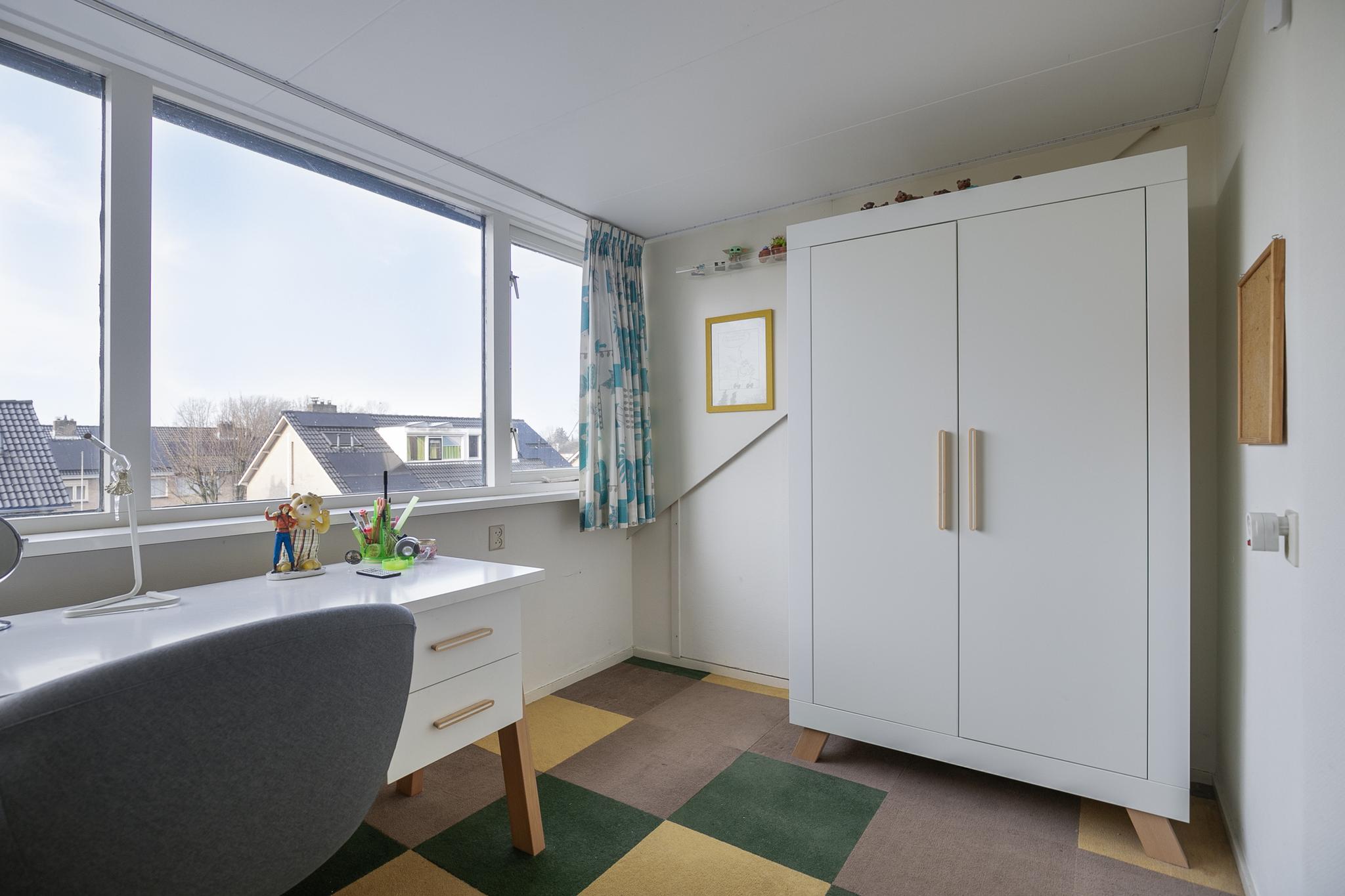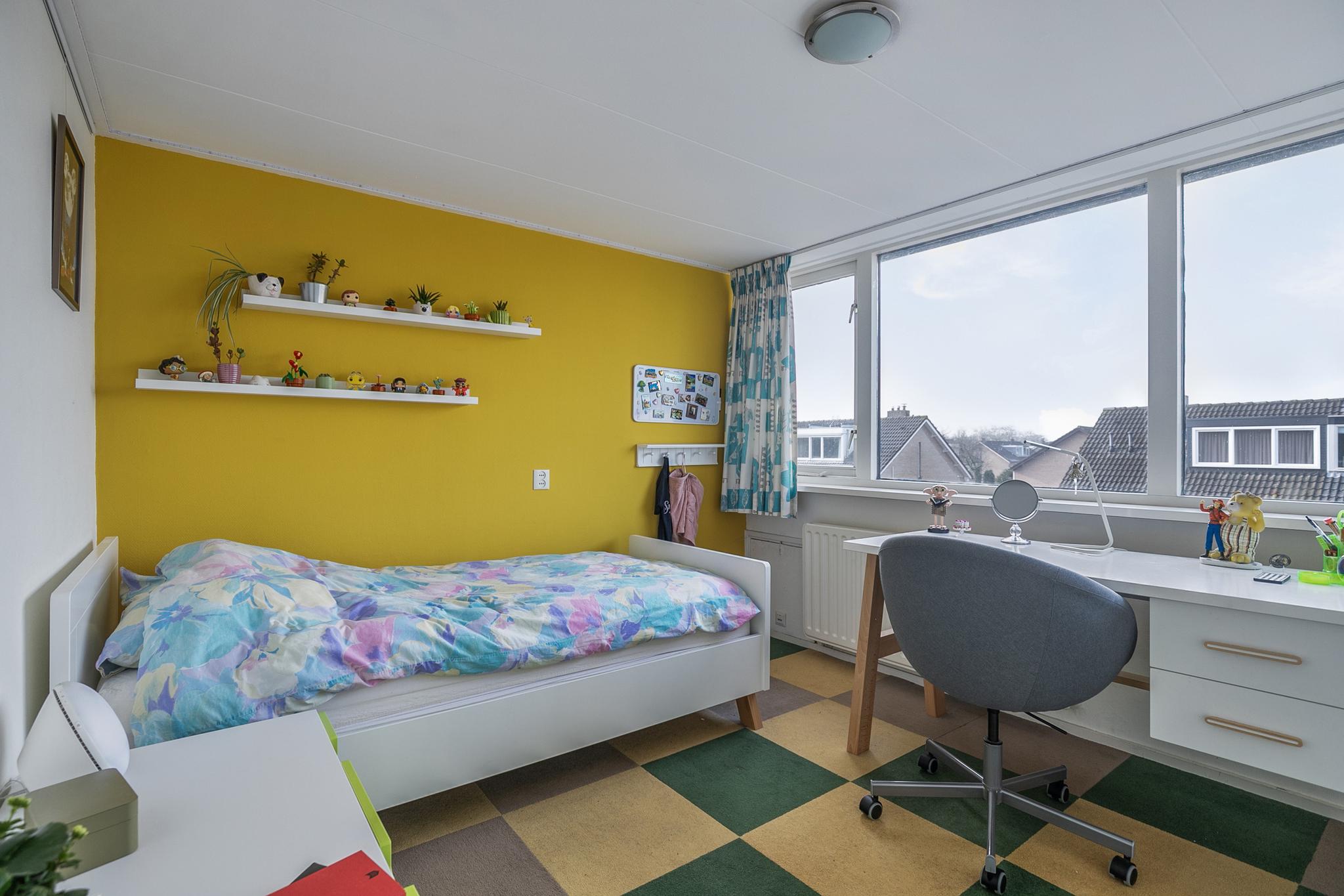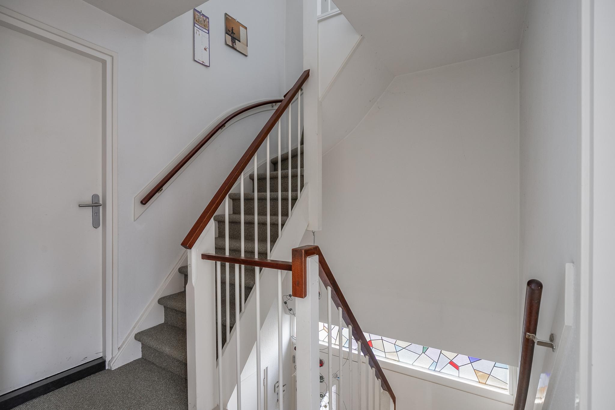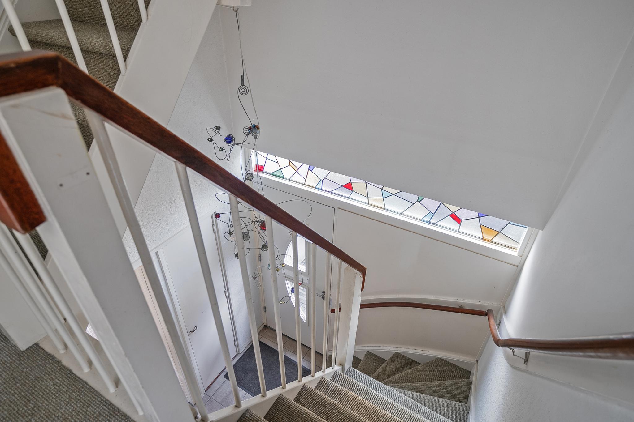 1e verdieping: via het karakteristieke trappenhuis naar de overloop. Er zijn drie lichte slaapkamers waarvan twee met een vaste kast. De slaapkamer aan de achterzijde beschikt over een balkon. De moderne badkamer is ook uitgebouwd en is in 2020 voorzien van vloerverwarming, een inloopdouche, 2e toilet, ligbad en een meubel met een dubbele wastafel.