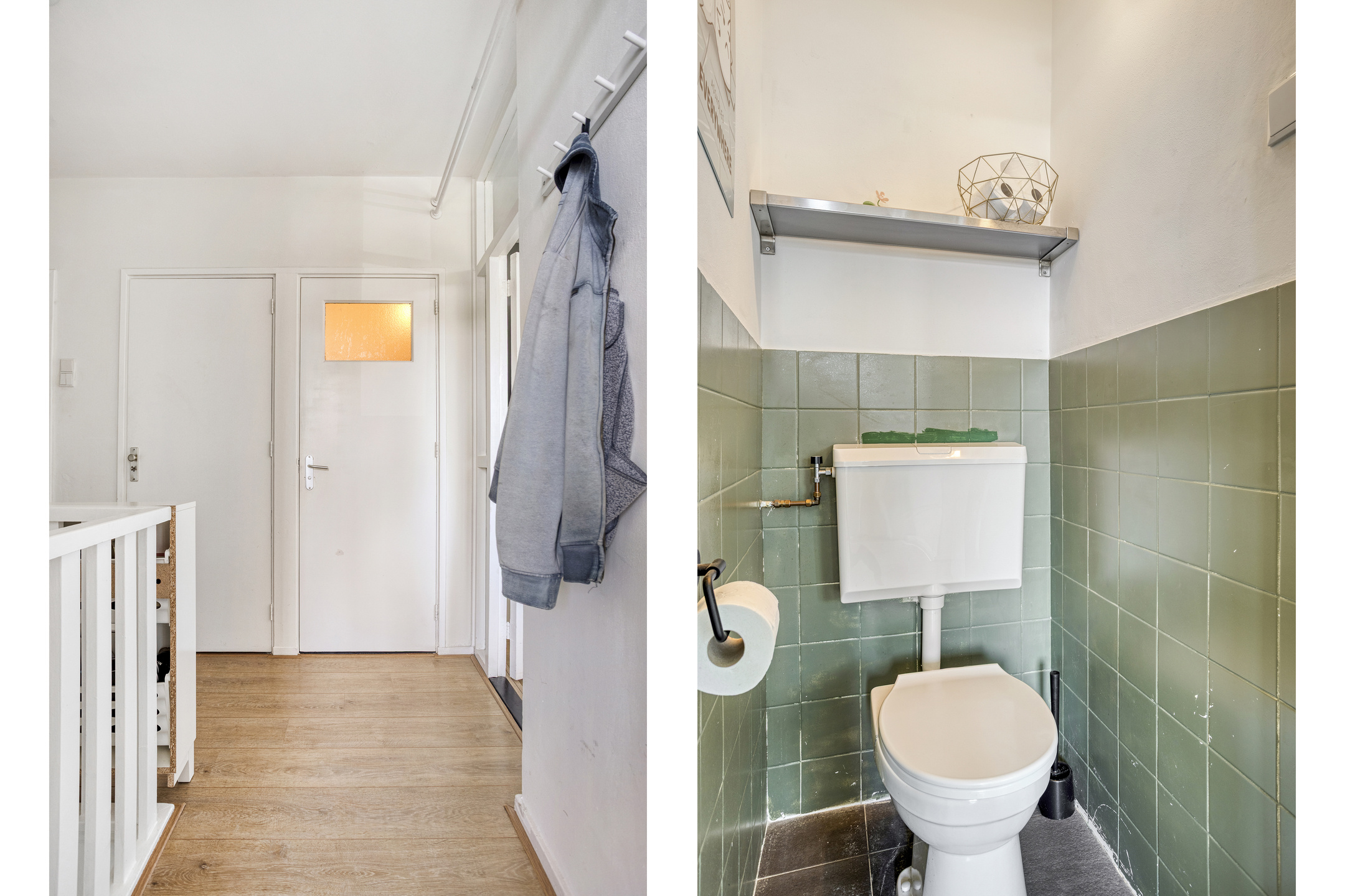 Entree, gang, meterkast, toilet en moderne badkamer met vloerverwarming, douche, vaste wastafel in nieuw meubel, wasmachine-aansluiting en balkon (gelegen op het Oosten).