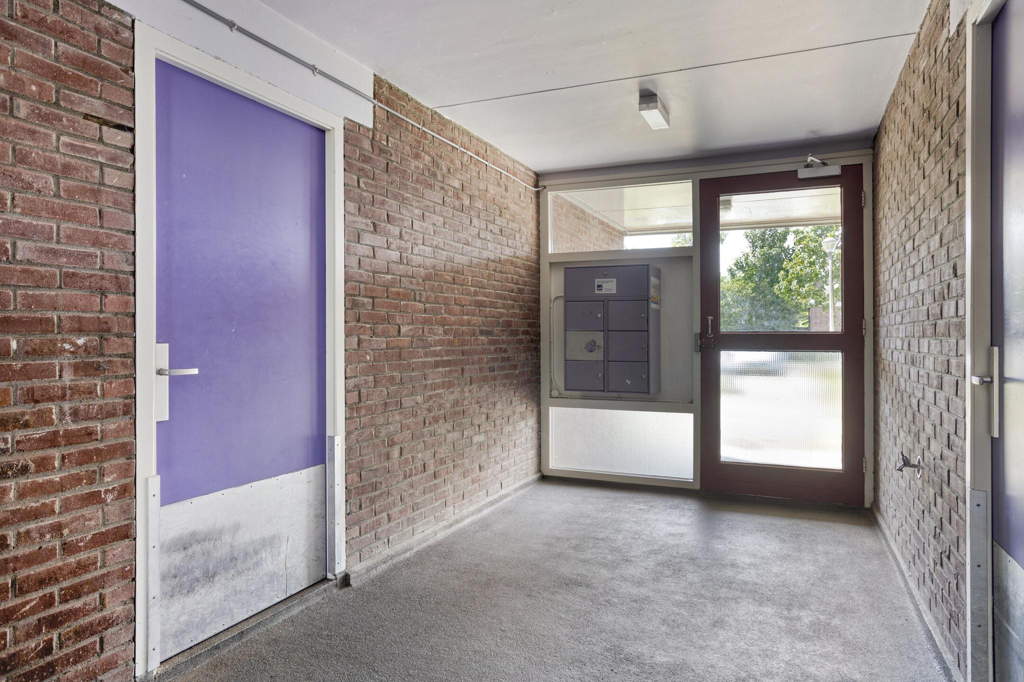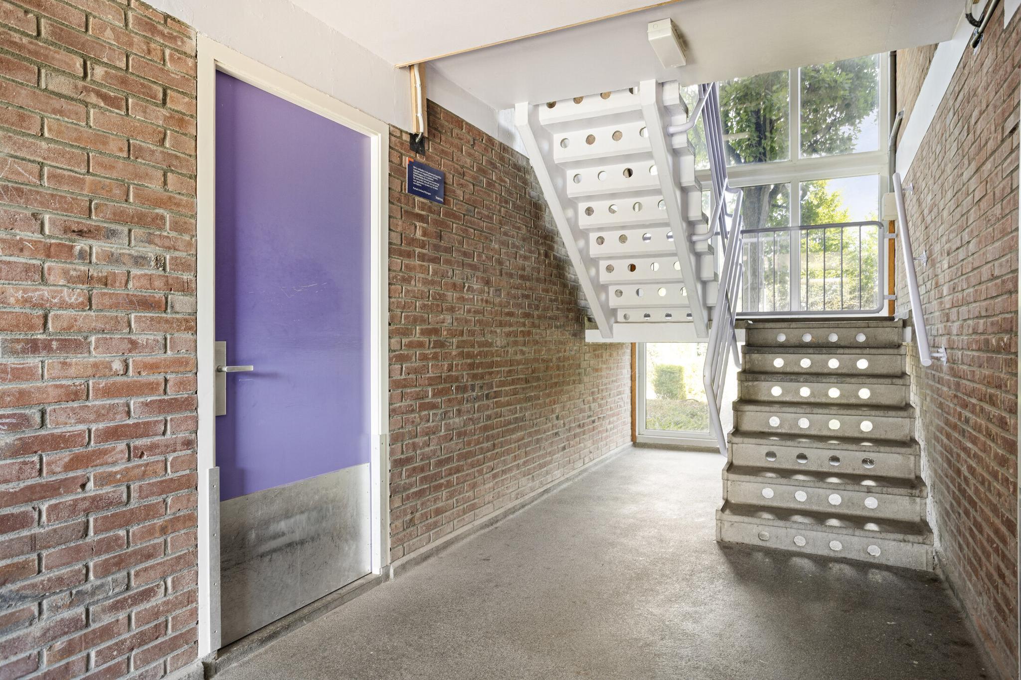 open portiek met centrale hal en vernieuwd belplateau met elektrische deuropening.