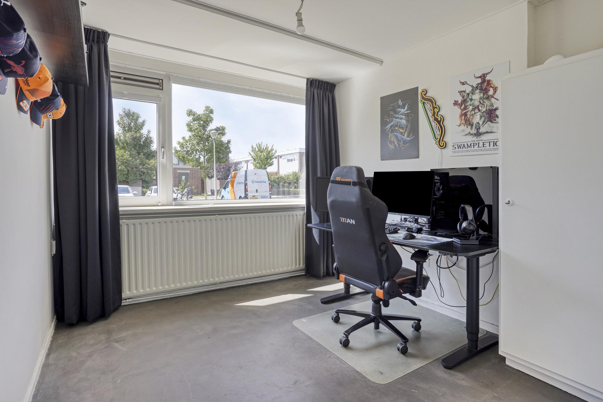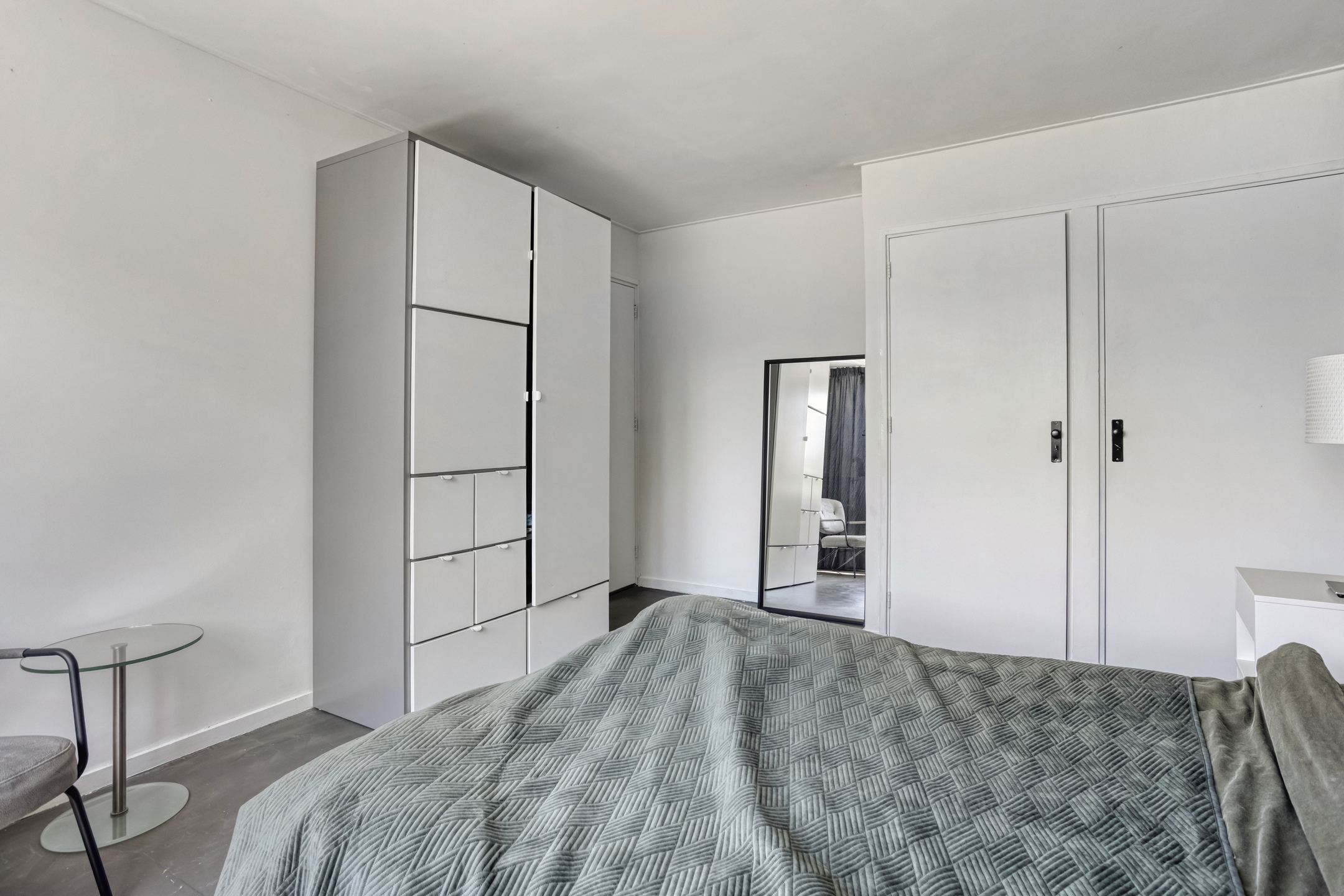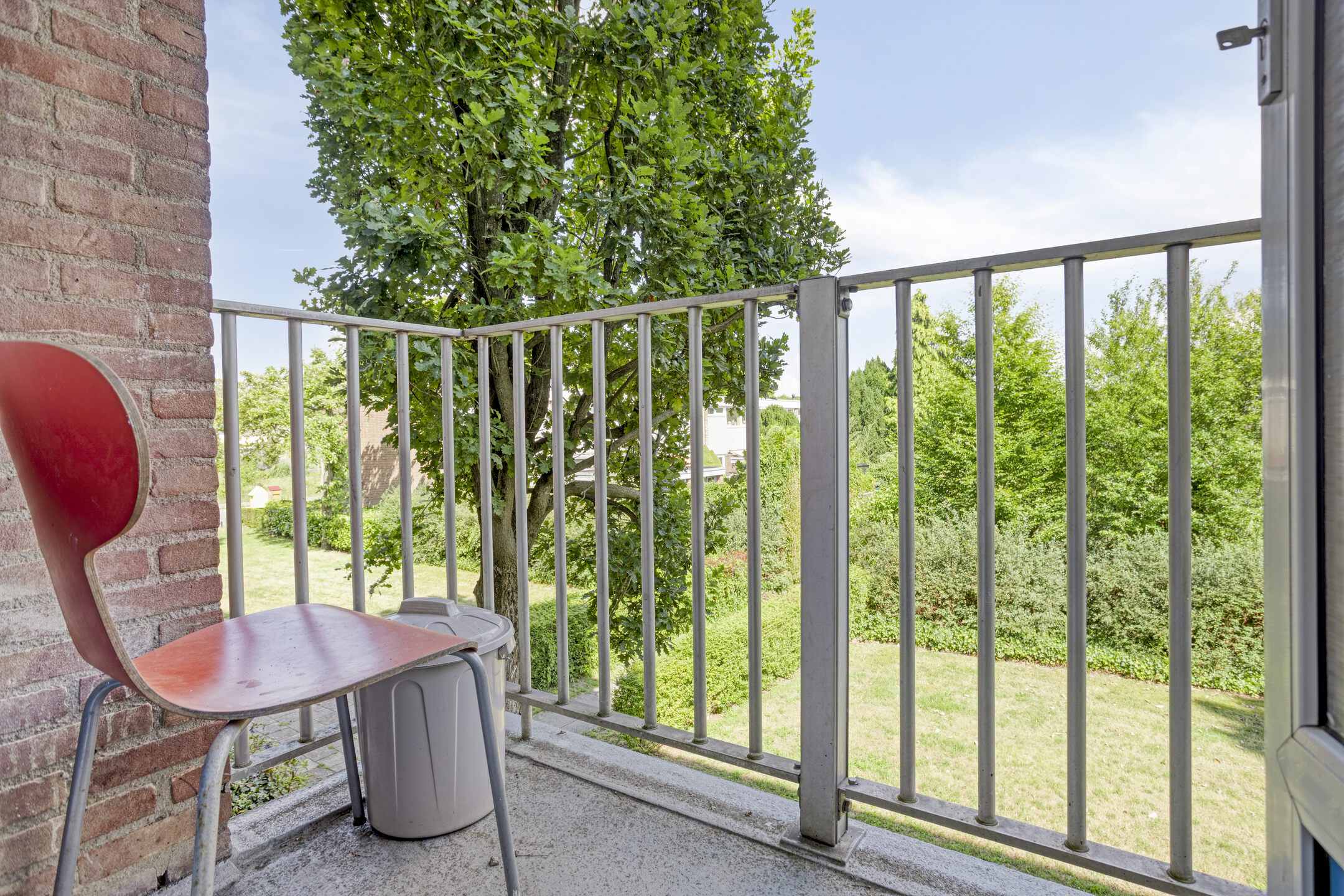 De slaap/studeerkamer aan de voorzijde van het gebouw heeft eveneens een deur naar het op het Oosten gelegen balkon/loggia.