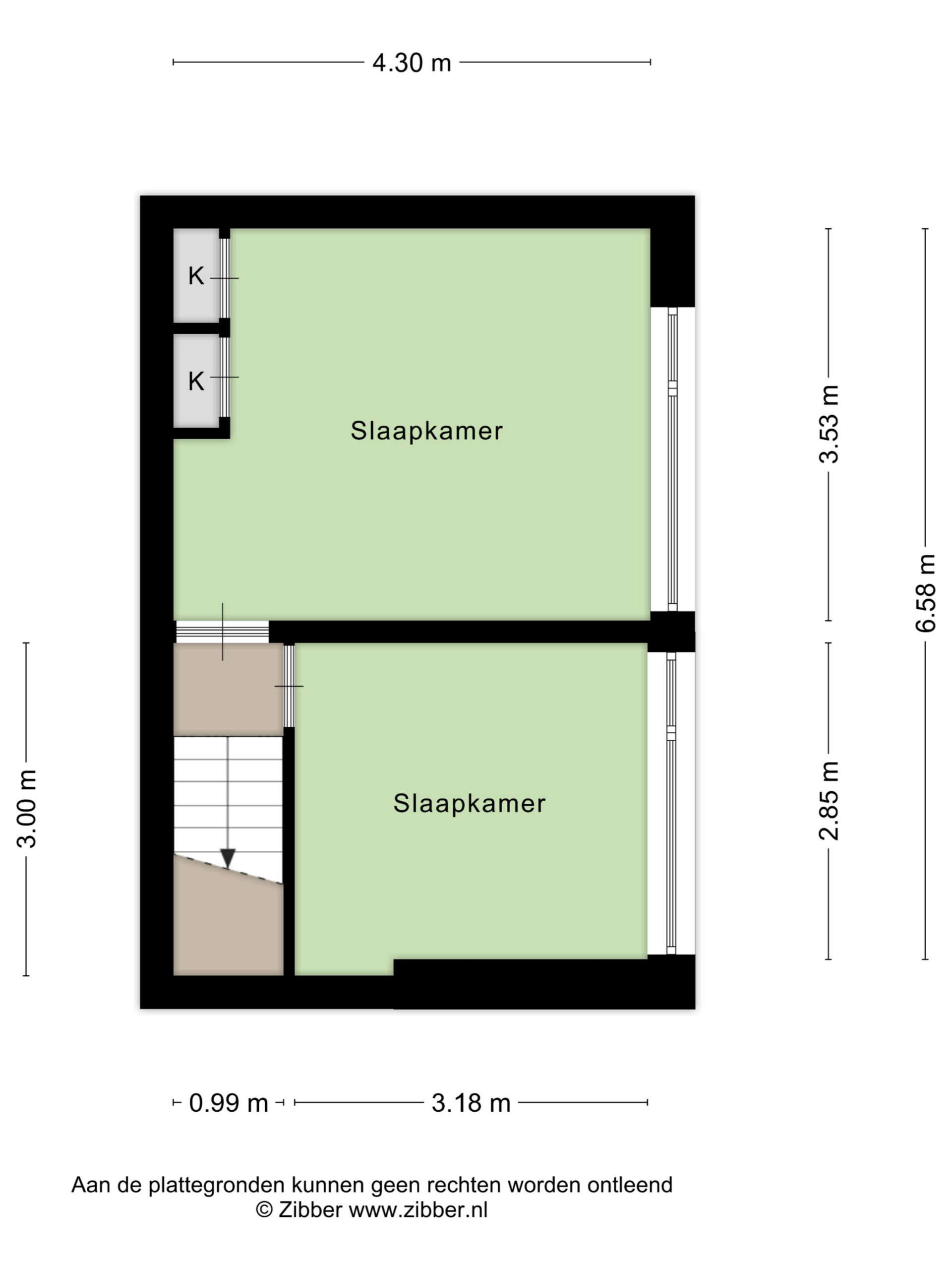 met daar twee ruime slaapkamers die beiden voorzien zijn van vaste kasten.