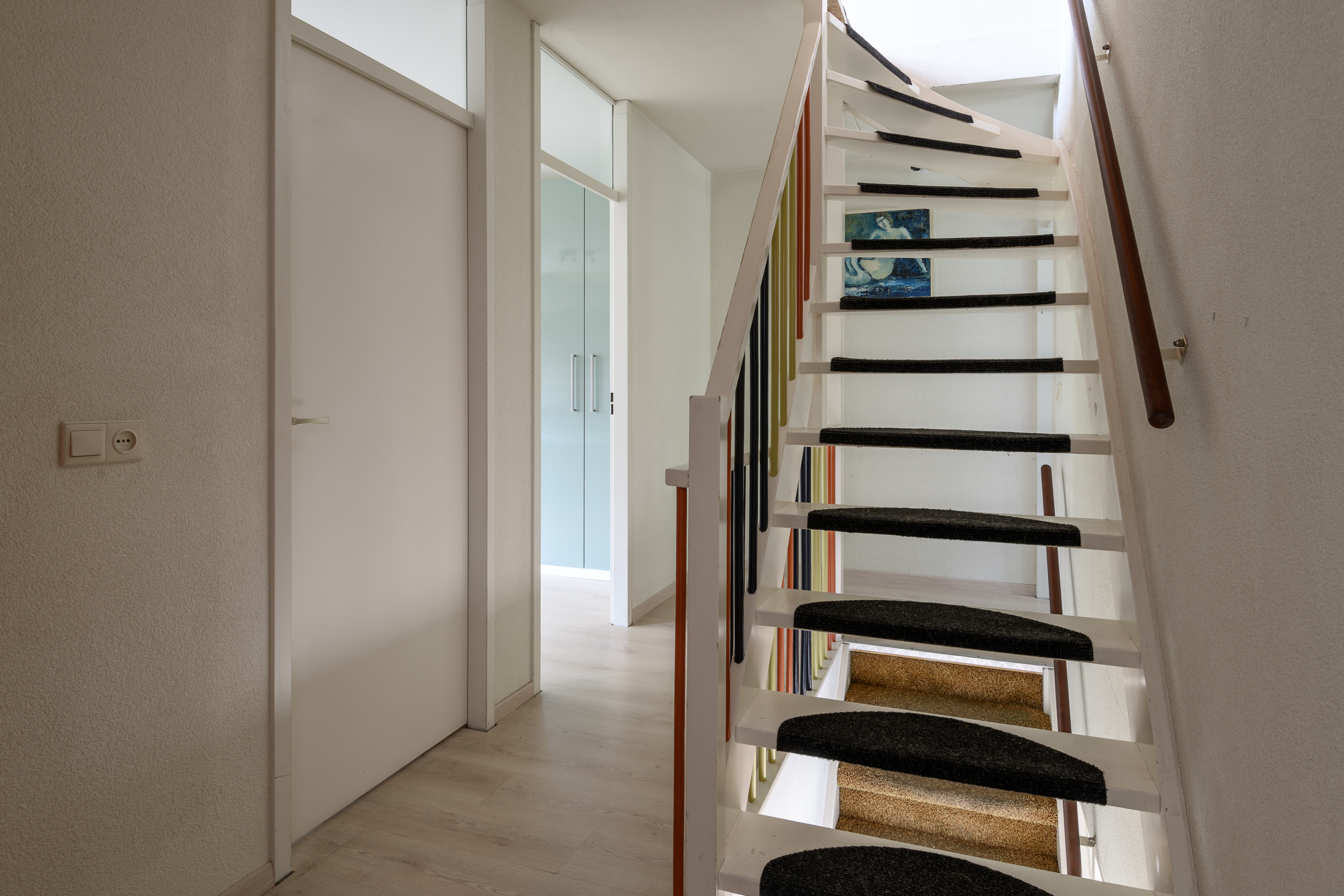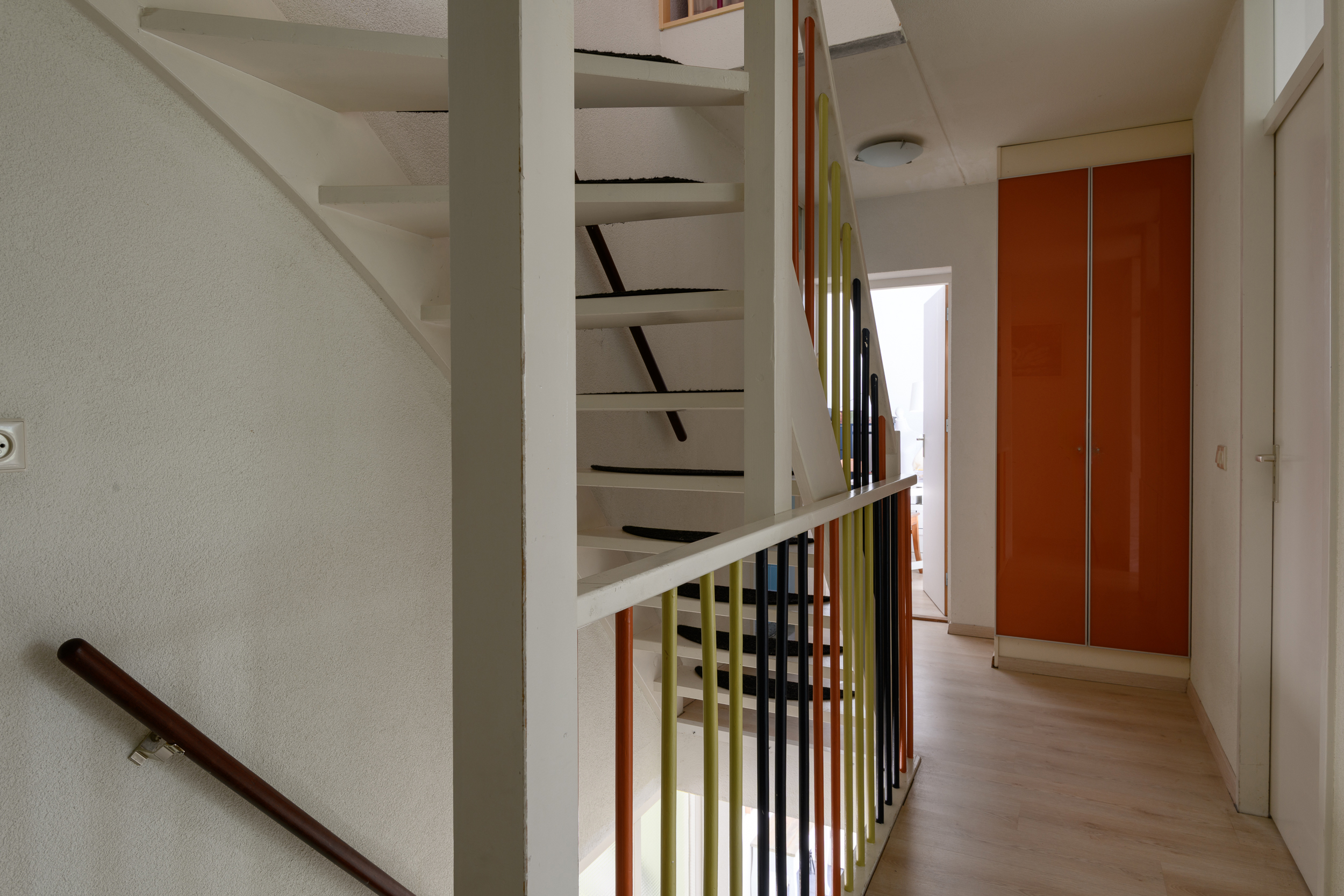 Overloop met toegang tot 3 slaapkamers, waarvan één eenvoudig is terug te brengen naar twee aparte kamers. De badkamer (2017) is fris en eigentijds, met een speelse mintkleurige afwerking, een ruime douche, wastafelmeubel, hangtoilet en aansluiting voor wasmachine en droger. Een van de slaapkamers beschikt over een knus balkon.