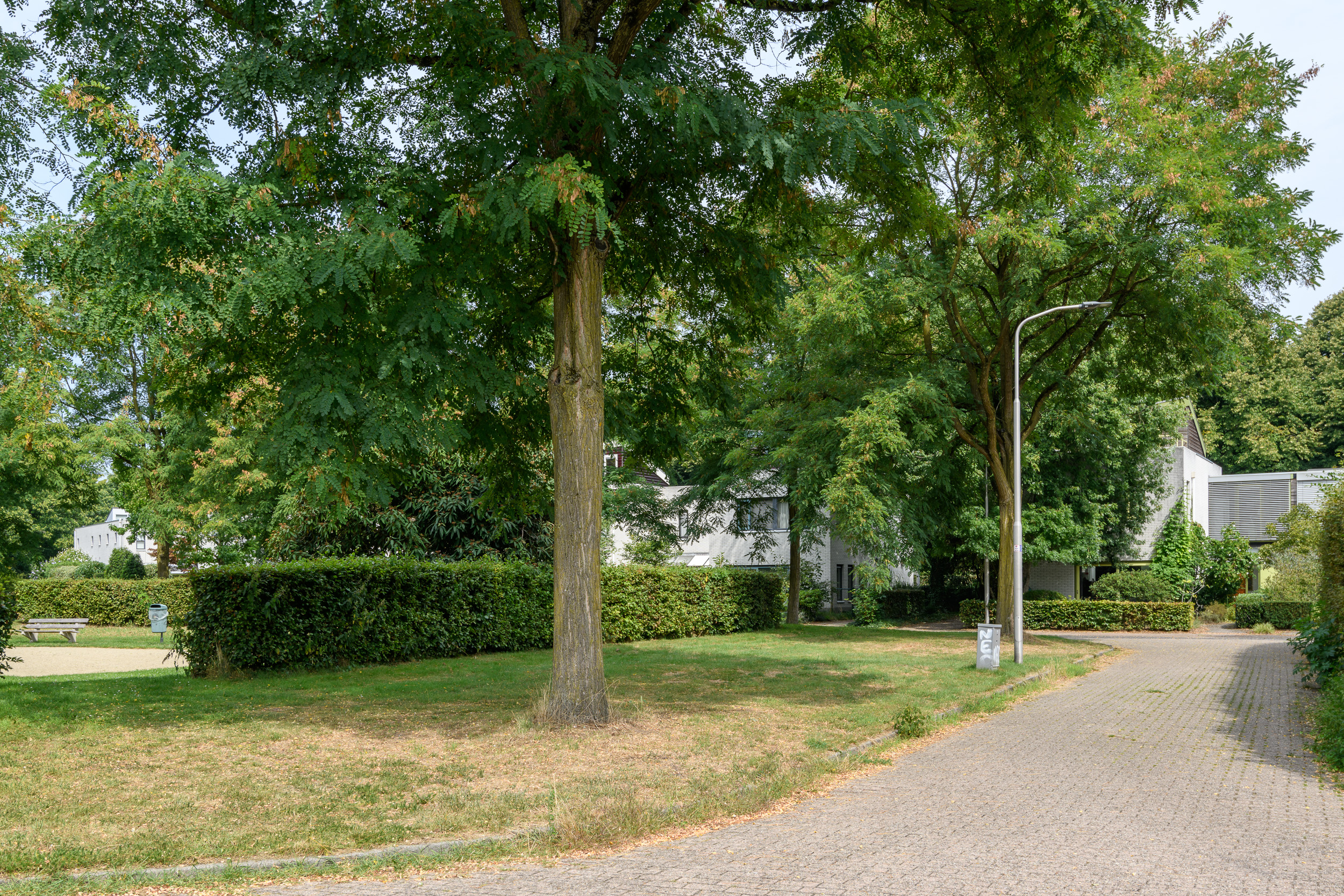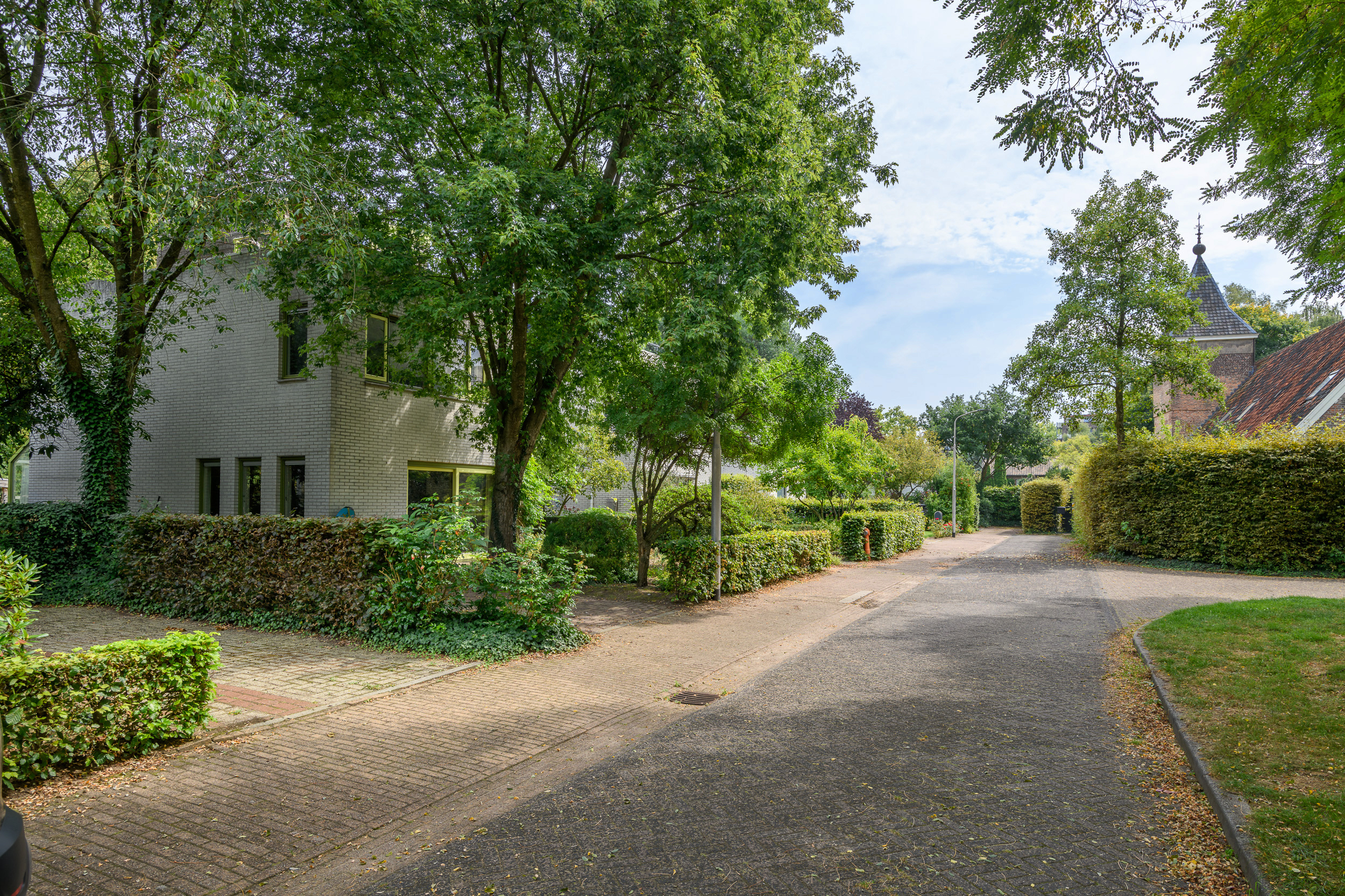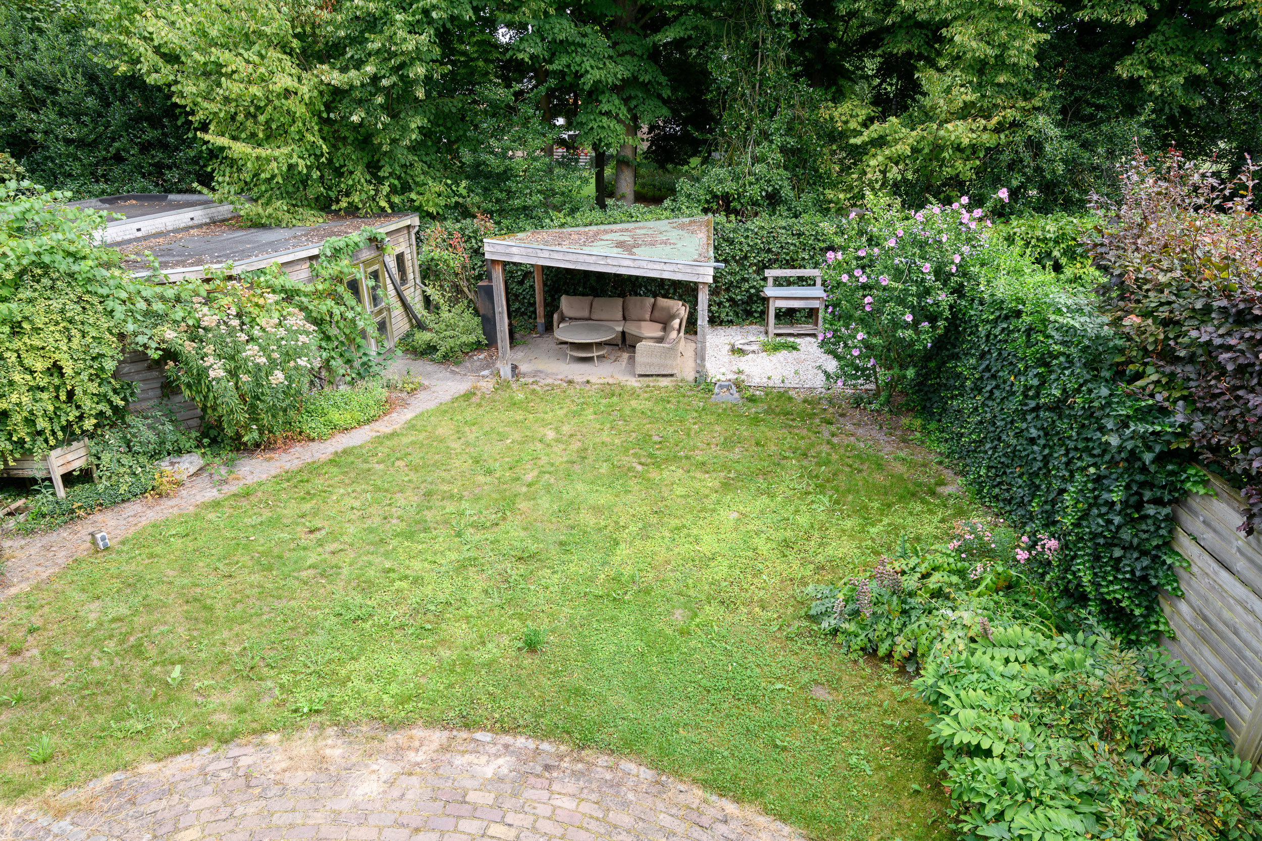 De fraai aangelegde achtertuin op het noordoosten biedt volop privacy dankzij de volgroeide bomen en het ontbreken van directe achterburen. Met een terrasoverkapping en een eigen parkeerplaats aan de voorzijde is ook buiten alles tot in de puntjes verzorgd.