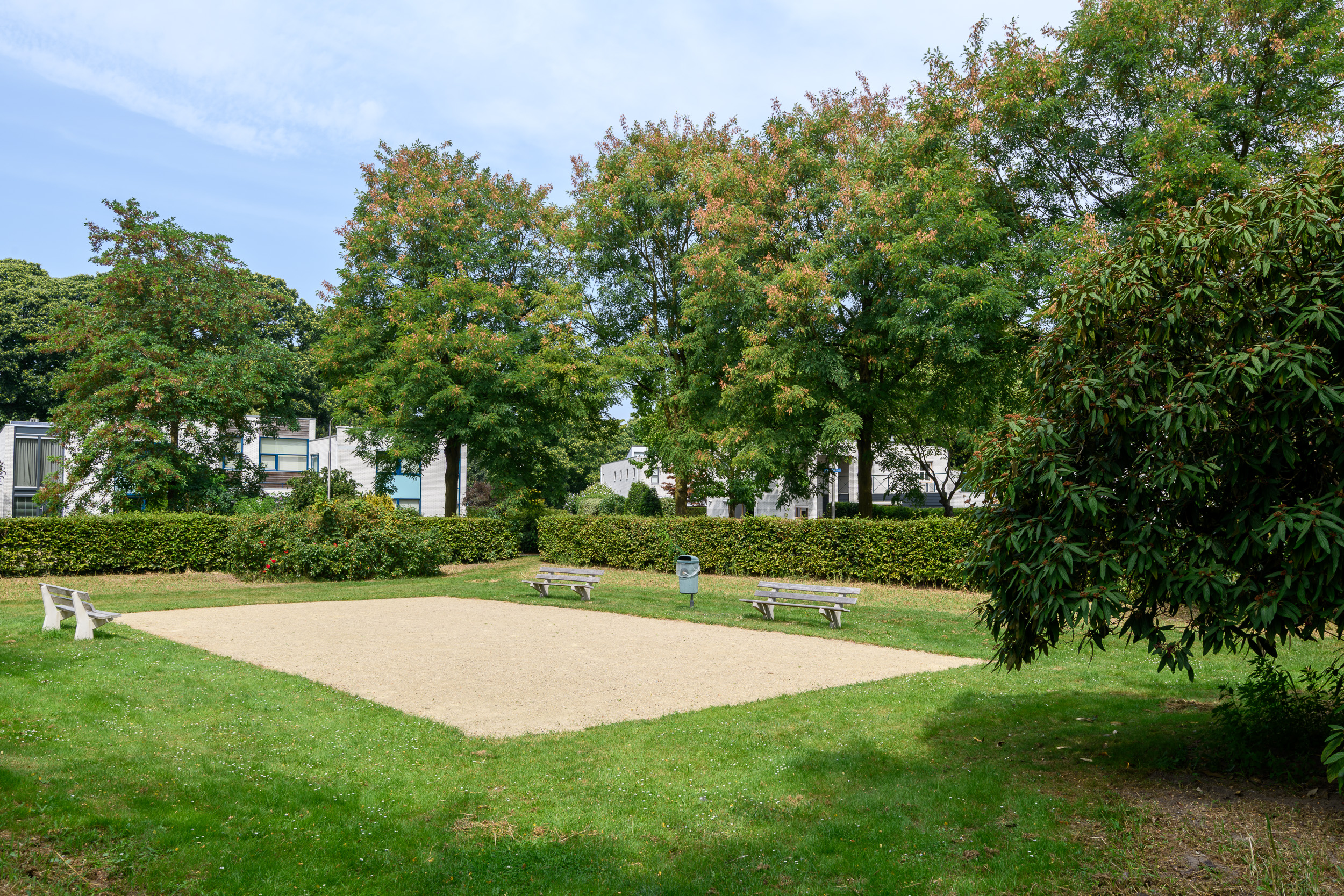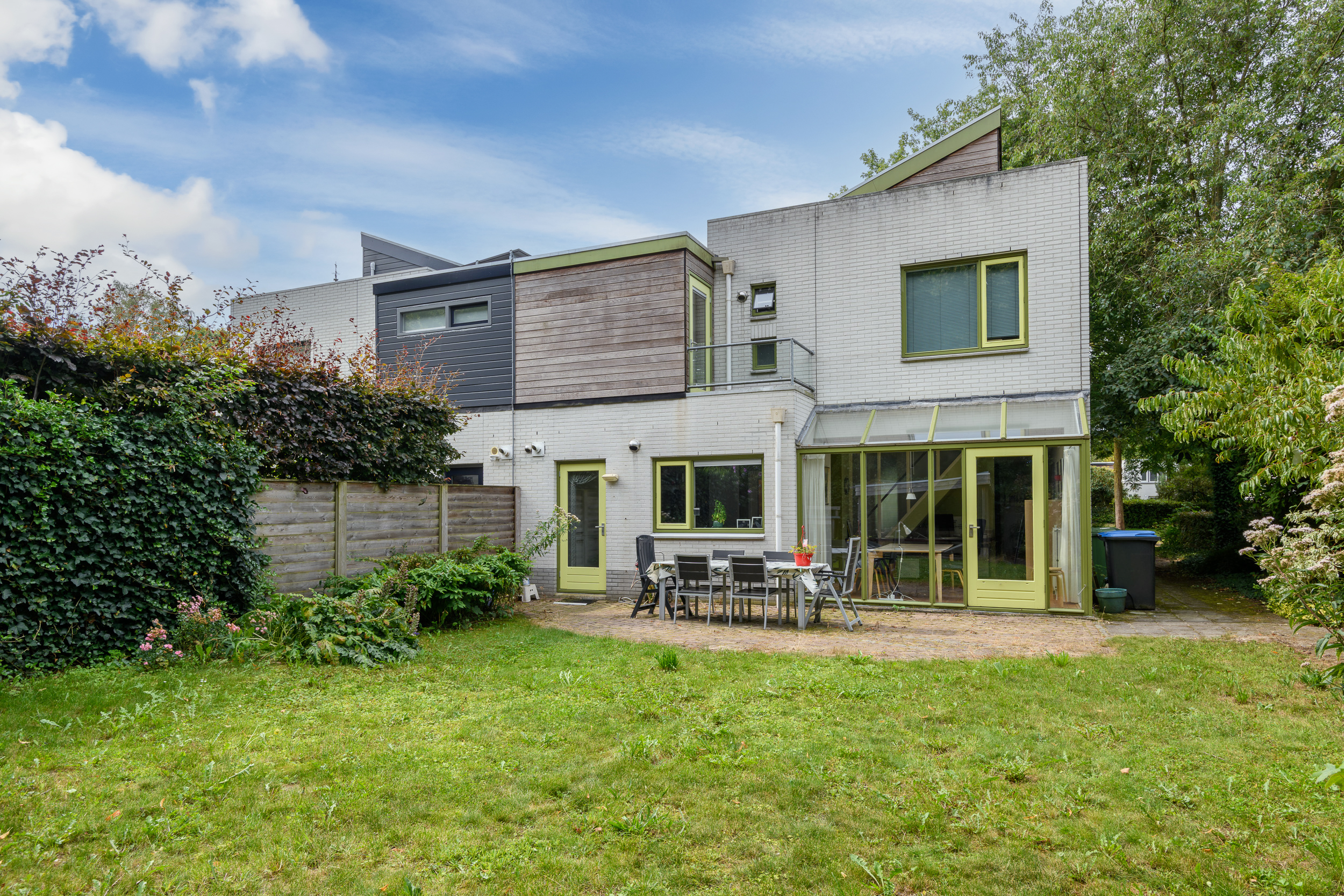 Deze moderne woning maakt deel uit van een bijzondere buurt, ontworpen door een samenwerkingsverband van vijf architecten. De woningen zijn harmonieus gegroepeerd rondom een groen en ruim binnenplein — een fijne en veilige plek voor kinderen om te spelen of om gewoon van de rust te genieten.