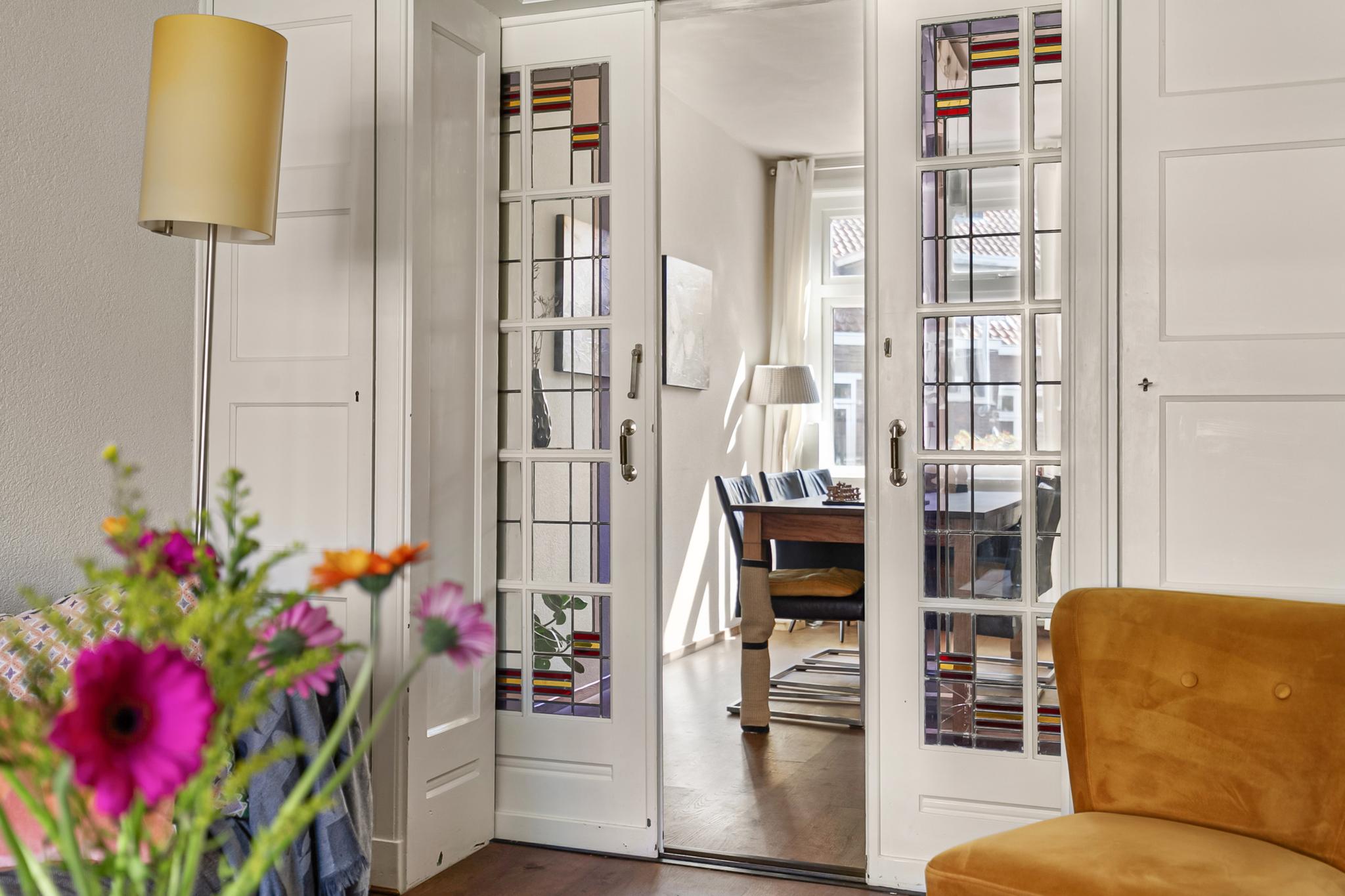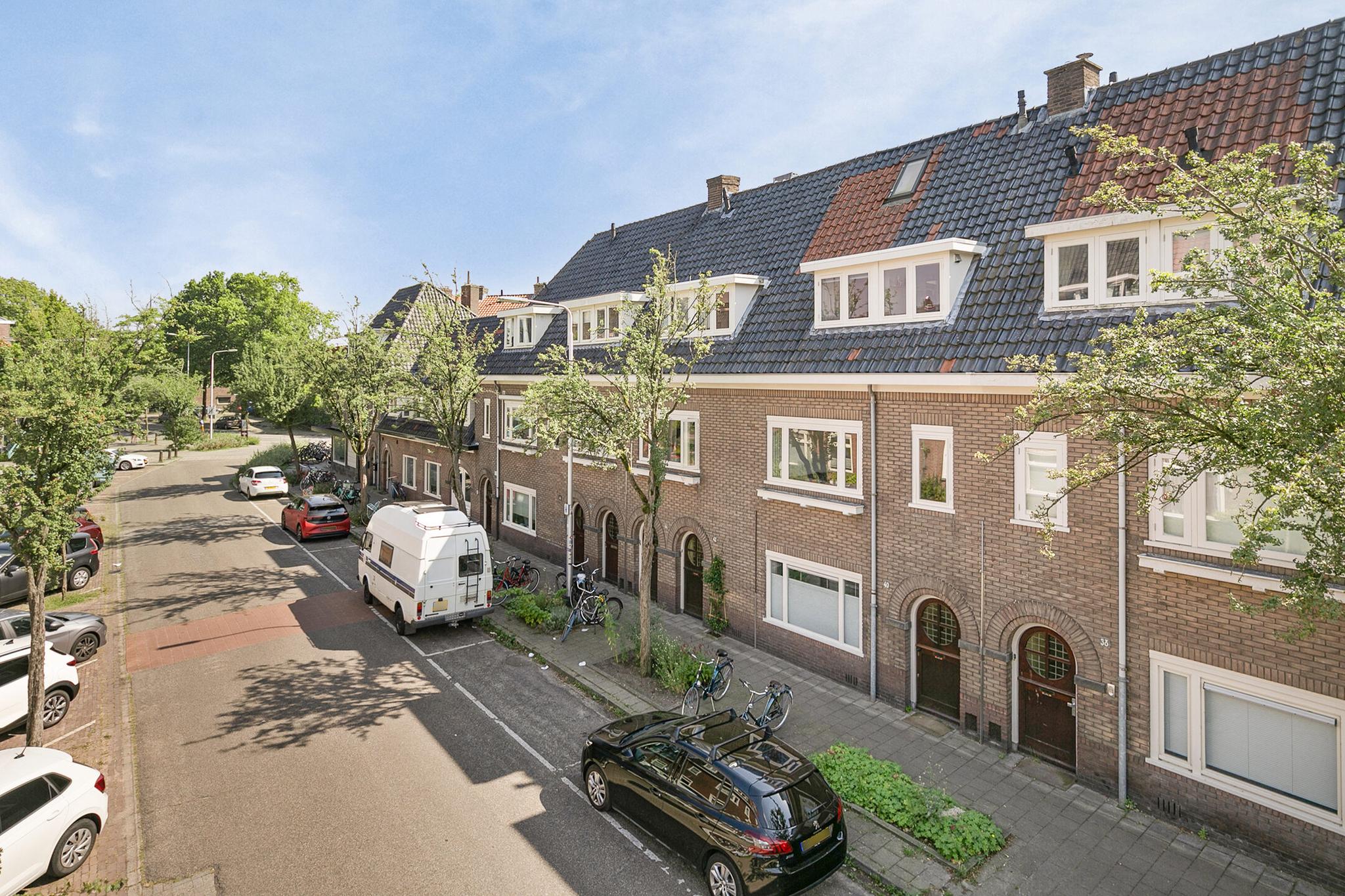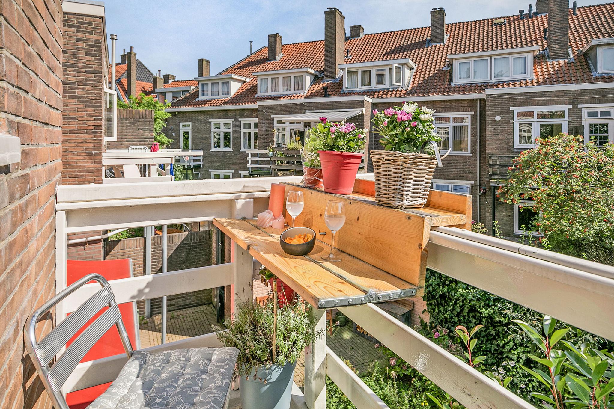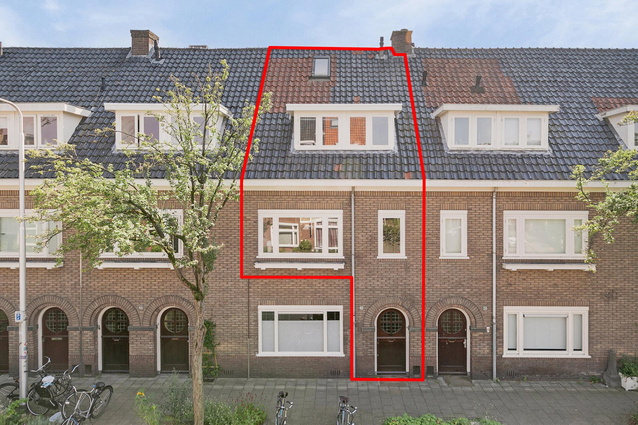 Aan de zeer geliefde Van Heutszstraat gelegen goed onderhouden en sfeervolle jaren '30 bovenwoning met 3 woonverdiepingen met onder andere een kamer en suite, 2 grote slaapkamers, een zolderkamer en een zonnig balkon.
