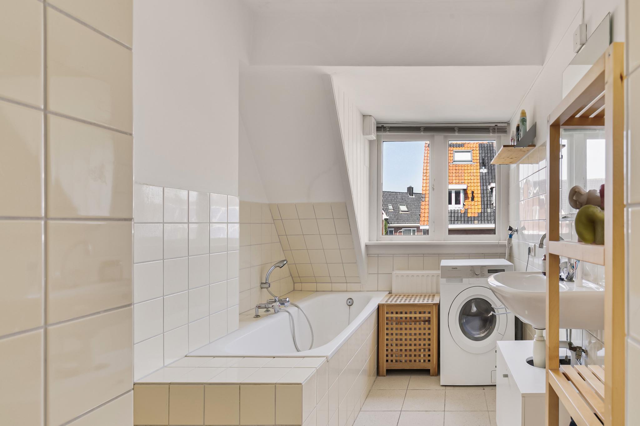 overloop, 2 grote slaapkamers, beiden met ruimte vaste kasten en een dakkapel. De ruime badkamer is uitgerust met een ligbad, douche en vaste wastafel en biedt tevens ruimte aan de wasmachine-opstelling.