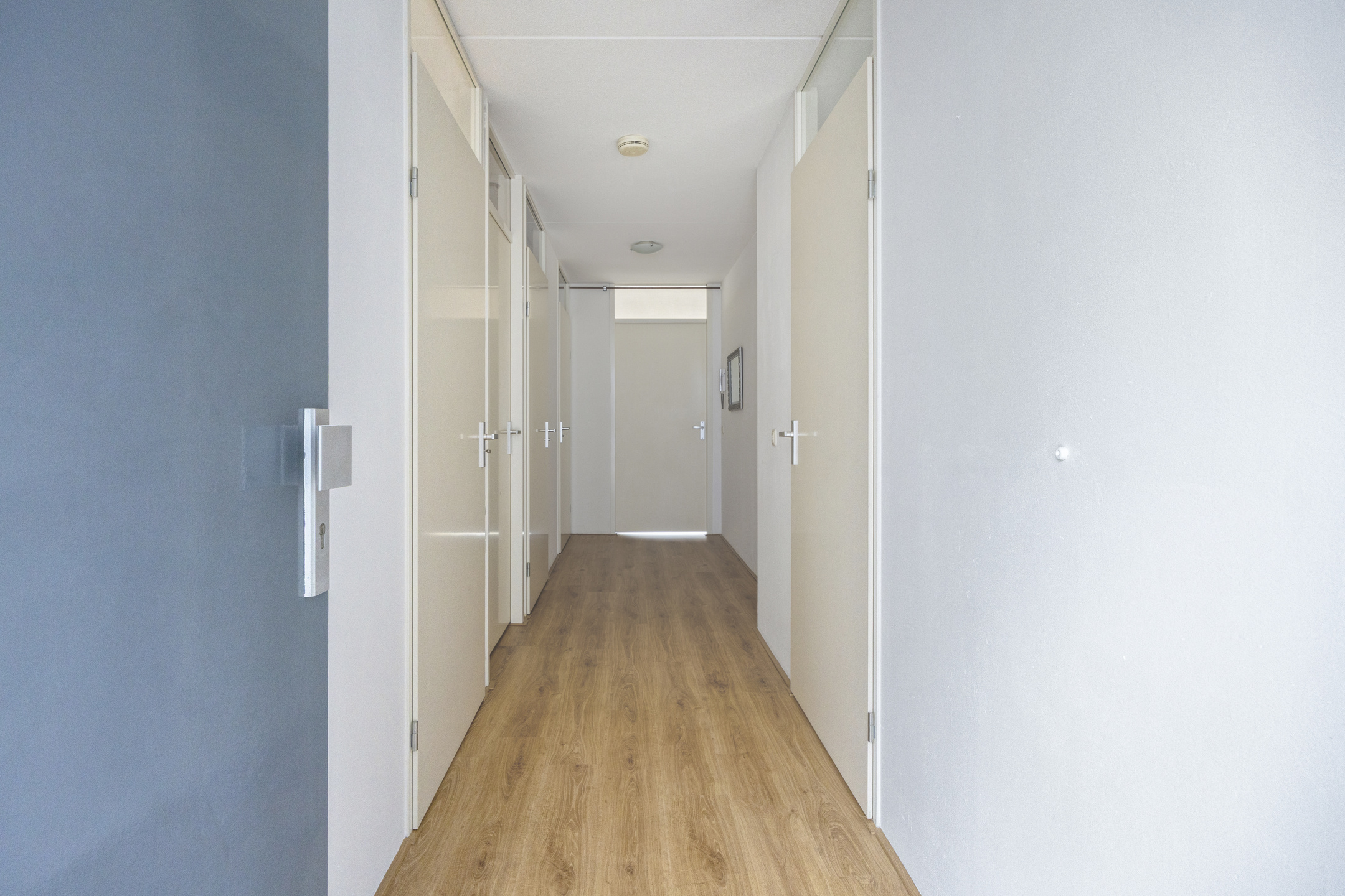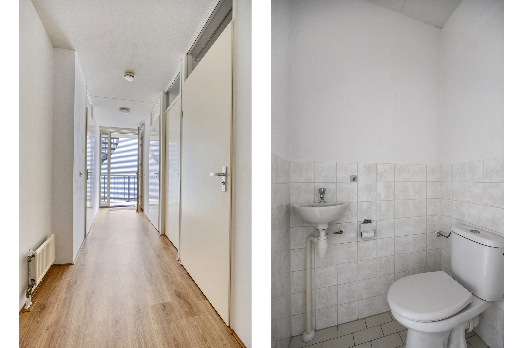 Derde verdieping: entree; hal met meterkast en separaat toilet met fonteintje. Twee nette slaapkamers met laminaatvloer aan de galerij zijde van respectievelijk 8 en 10 m². De praktische berging bevat tevens de wasmachine-drogeropstelling, c.v.-ketel (2016) en warmte-terugwininstallatie.