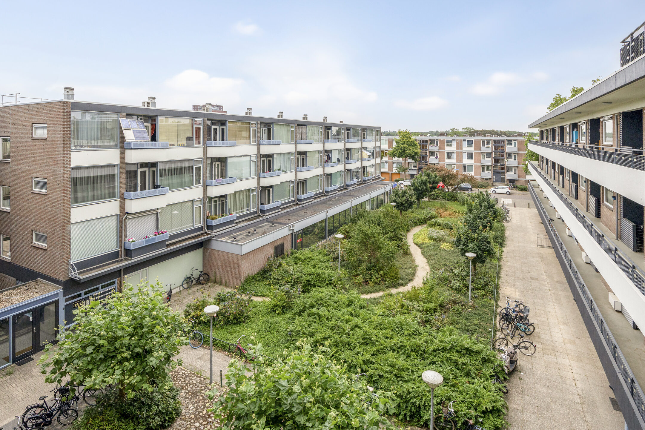 Het appartement is gesitueerd op de 4e woonlaag (derde verdieping) die middels lift of trap te bereiken is en heeft vanuit de woonkamer en het balkon een prachtig groen uitzicht over Nijmegen.